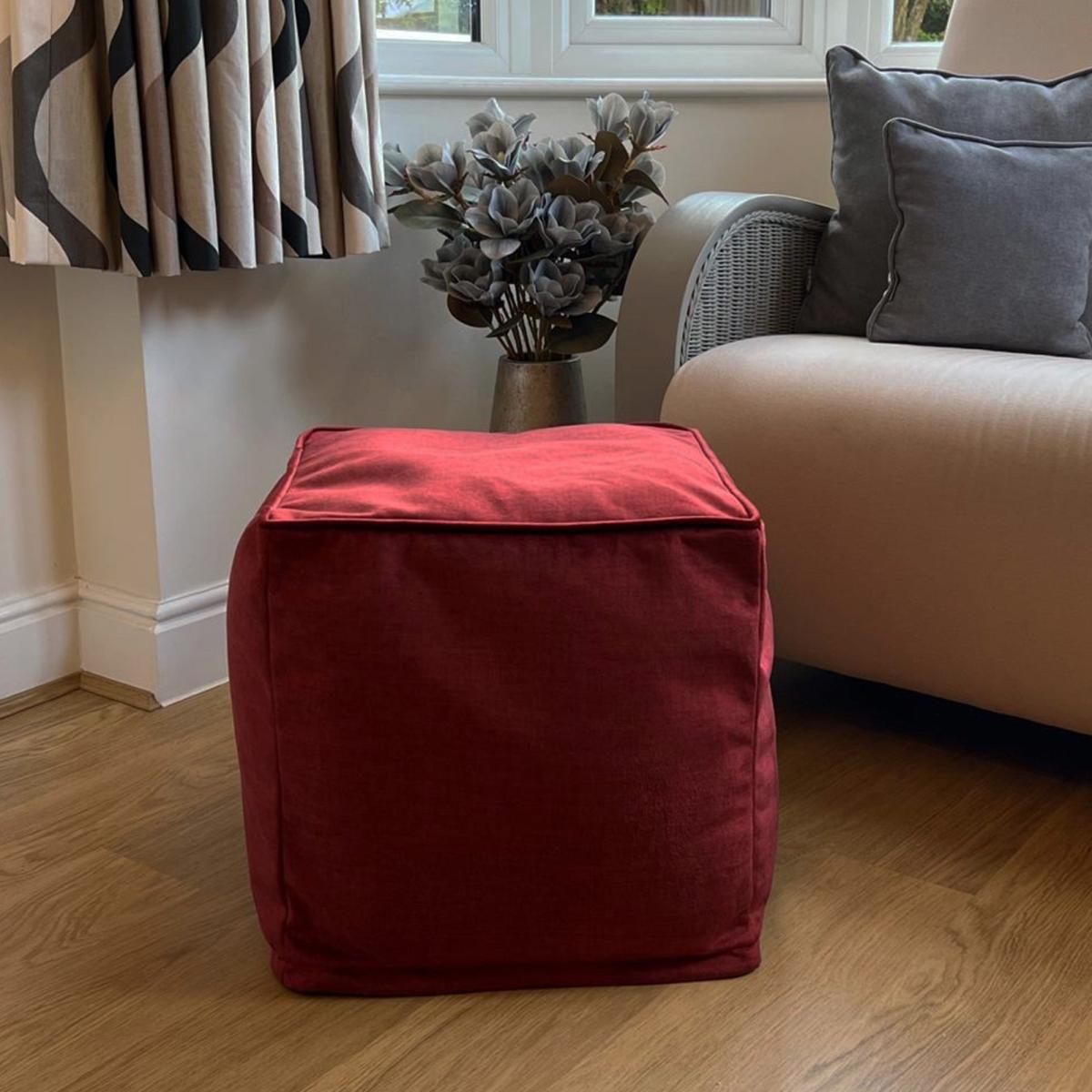 * Soft textured fabric with lustre finish* Piped finish* Removable inner for easy cleaning* Hardwearing fabric base Relax on the sofa and kick your feet up on our modern, stylish cubed pouffe. Perfect for that additionally seating when the party starts to simmer down or to add the finishing touches to your sofa selection. The Daro Cube pouffe is crafted from a soft textured fabric, eliciting a beautiful tactile story whilst being finished in a lustre coverage.