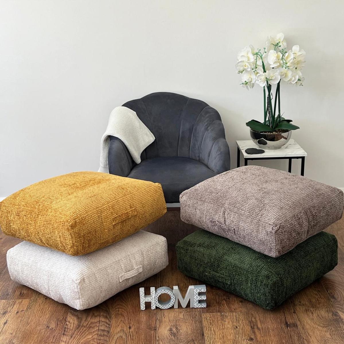 * Square Floor Cushion, great for easy additional seating* 100% Recycled Luxury Fibre Filling* Concealed zip opening* Removable inner for easy cleaning* Handle for easy carrying and moving* Colourways available to match your living space The Waffle Square Floor Cushion offers easy additional seating with its 100% recycled luxury fibre filling. It boasts a concealed zip opening, a removable inner for simple cleaning, and a handle for easy carrying, with multiple colour options to suit your living space.