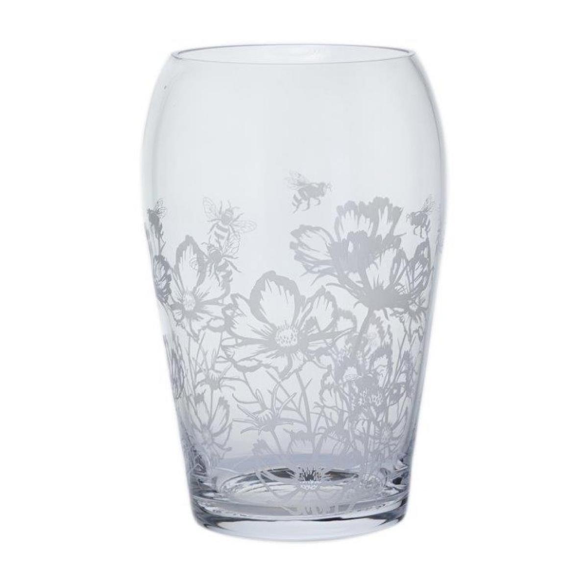 Bloom is a collection of lovely hand-made vases, each elegantly finished with an etch-decorated bloom. The Wide Vase features delicate Cosmos and Bees feasting on the nectar and has curved profile which tapers towards the rim. With or without flowers this vase makes an attractive addition to the home and is a great gift idea. Dimensions 250mm H x 165mm W Handmade Boxed Not dishwasher safe