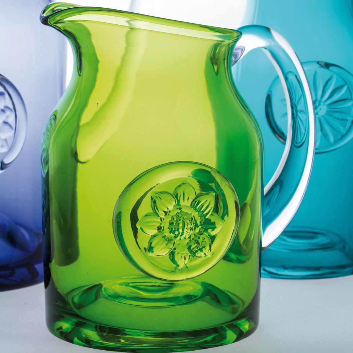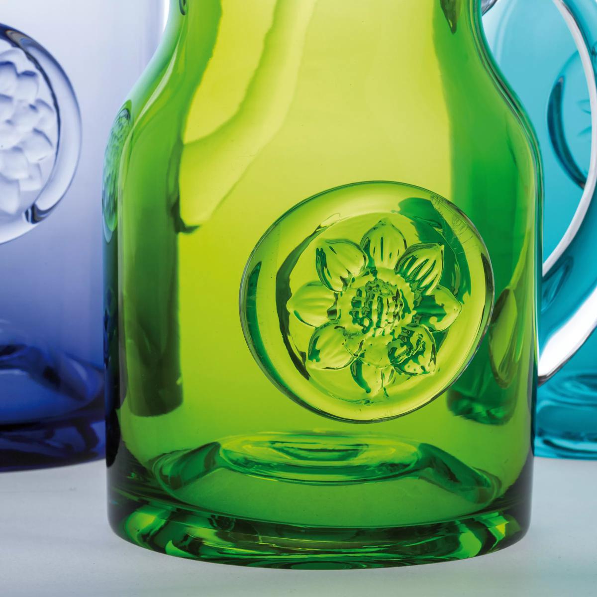 Inspired by Dartington Crystal's award-winning flower bottle range, the flower motif on this jug has been applied by hand. Use as a vase or table jug and match with others in the collection which can be found in a range of colours.