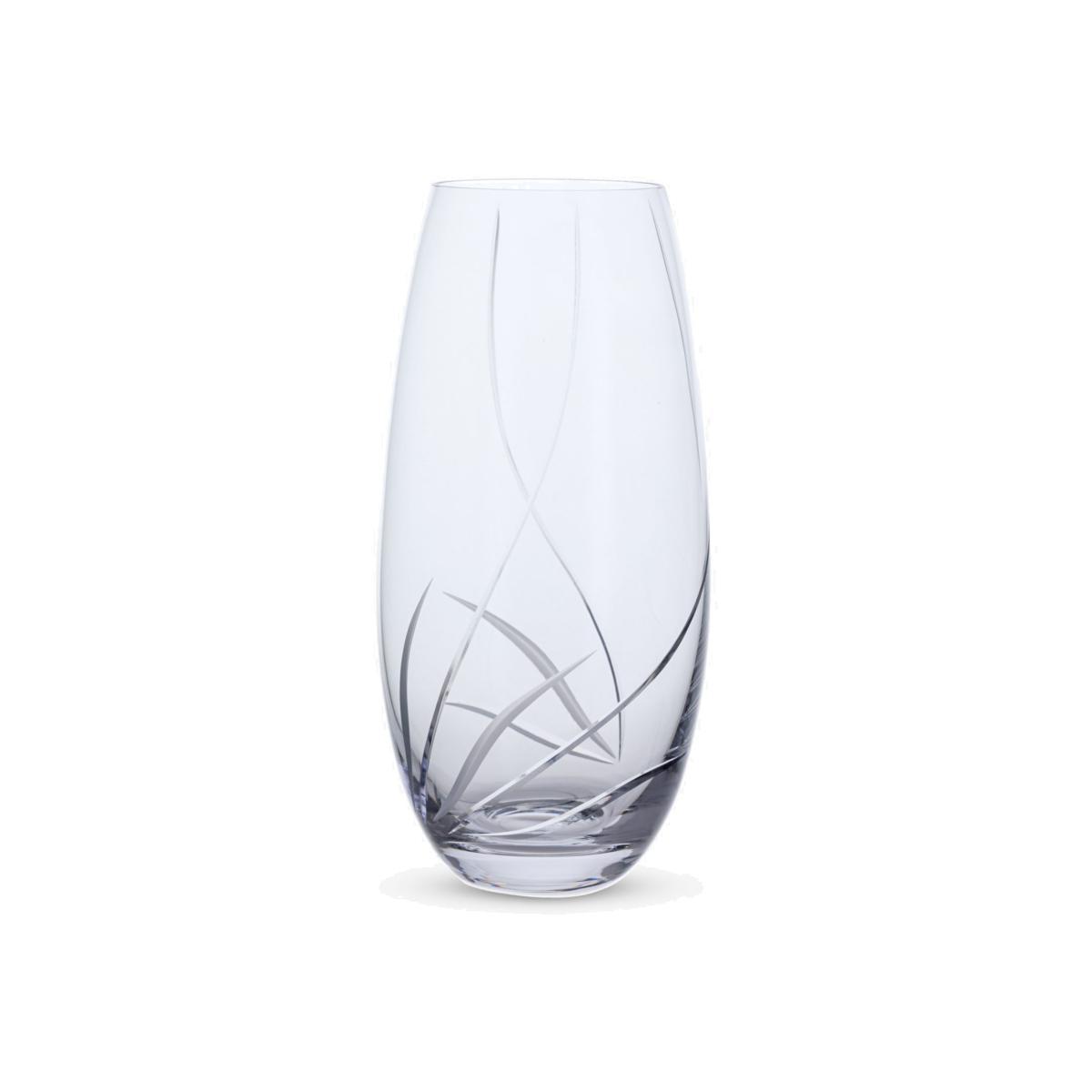 The slender tapered shape and luxurious weight of the Iris vase are complemented by a sweeping, hand-cut design. A narrow neck makes it perfect for long-stemmed varieties and taller displays.