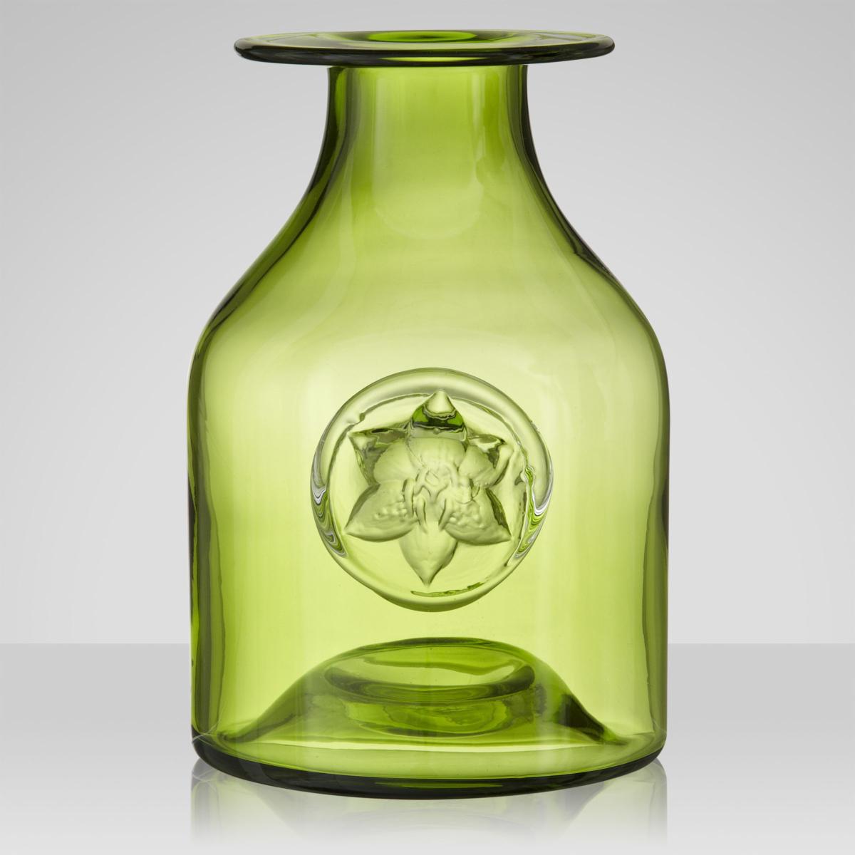 Dartington Crystal Lily Flower Bottle Vase, Green, H18cm