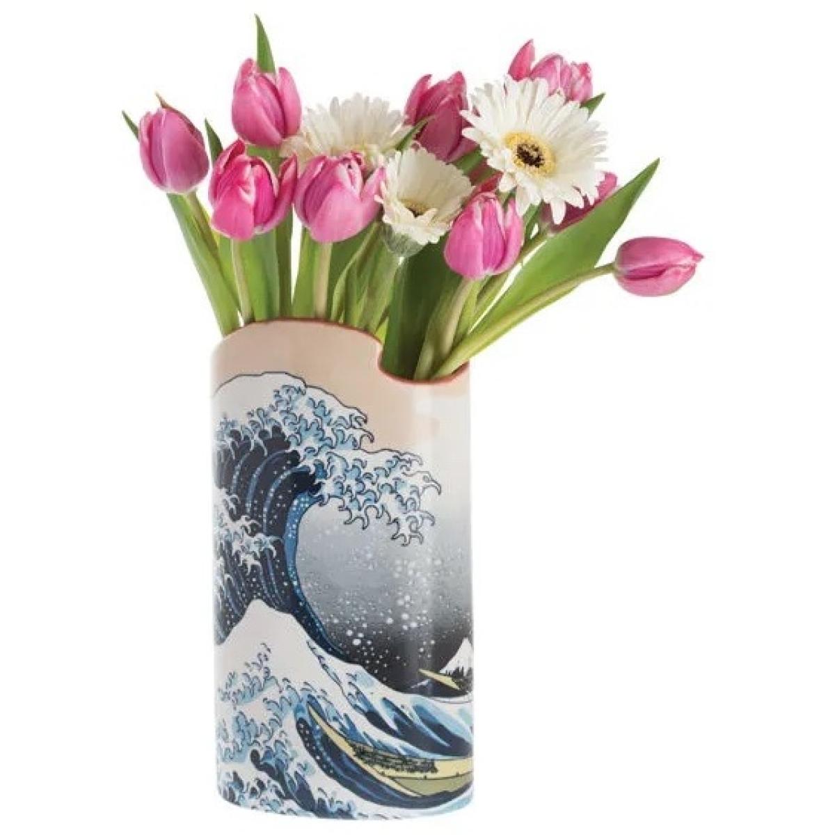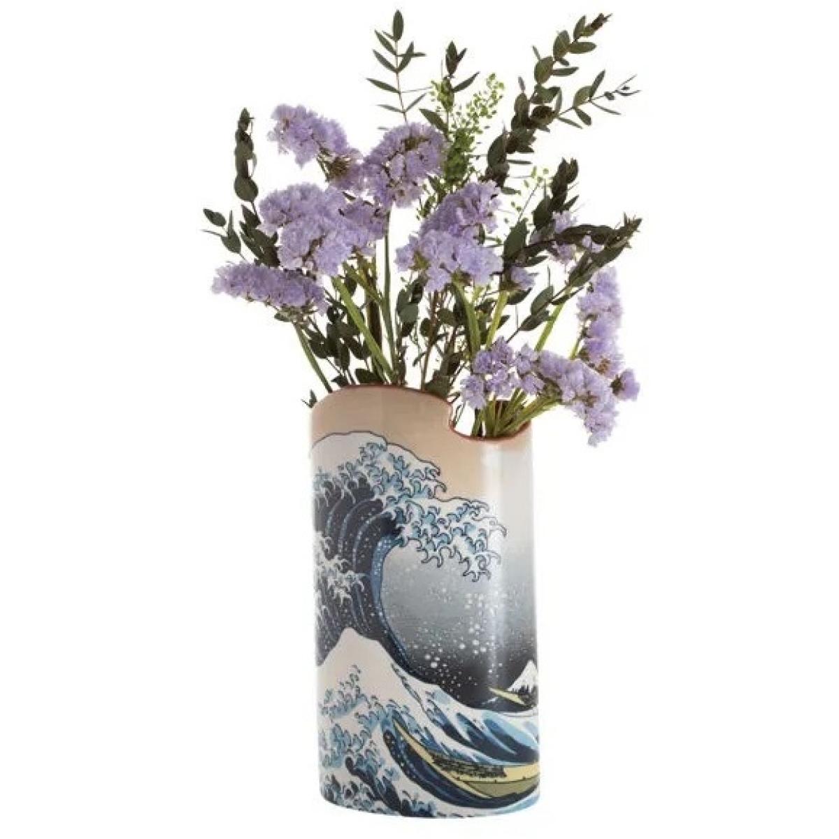 The Great Wave off Kanagawa, otherwise known as The Wave is wrapped around this ceramic vase to create a beautiful statement piece. Hokusai is a Japanese Ukiyo-e artist best known for his woodblock print series Thirty-six Views of Mount Fuji, which includes the iconic print design used on this vase. Made from Porcelain Dimensions:H 22.7cm x W 12cm Colour: Multi-coloured Boxed Please note, all screens vary in colour reproduction and whilst every effort has been made to display the colour as accurately as possible it is for guidance only.