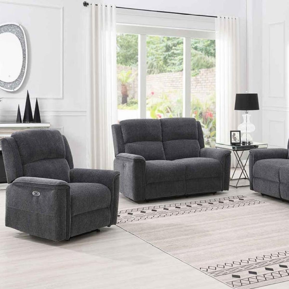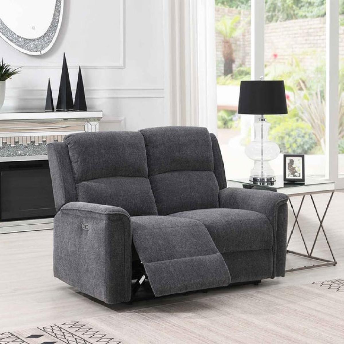 * Classic recliner design * Power recline function * Premium chenille fabric * Available in two colours * Foam and fibre fillings The Dartmoor Power Recliner 2 Seater Sofa combines classic comfort with modern convenience. Upholstered in premium chenille fabric, it offers a soft, textured feel that’s both inviting and durable. The power recline function allows you to relax effortlessly, while foam and fibre-filled cushions provide medium support for everyday comfort. Available in dark grey or light grey, it’s easy to match with a range of interior styles. A timeless choice for those who value comfort without compromising on style.