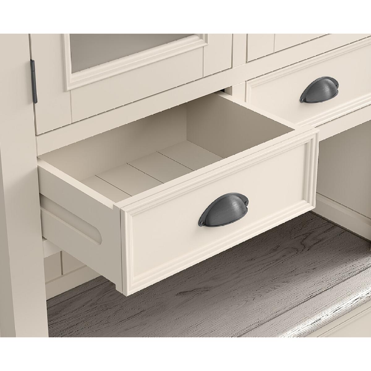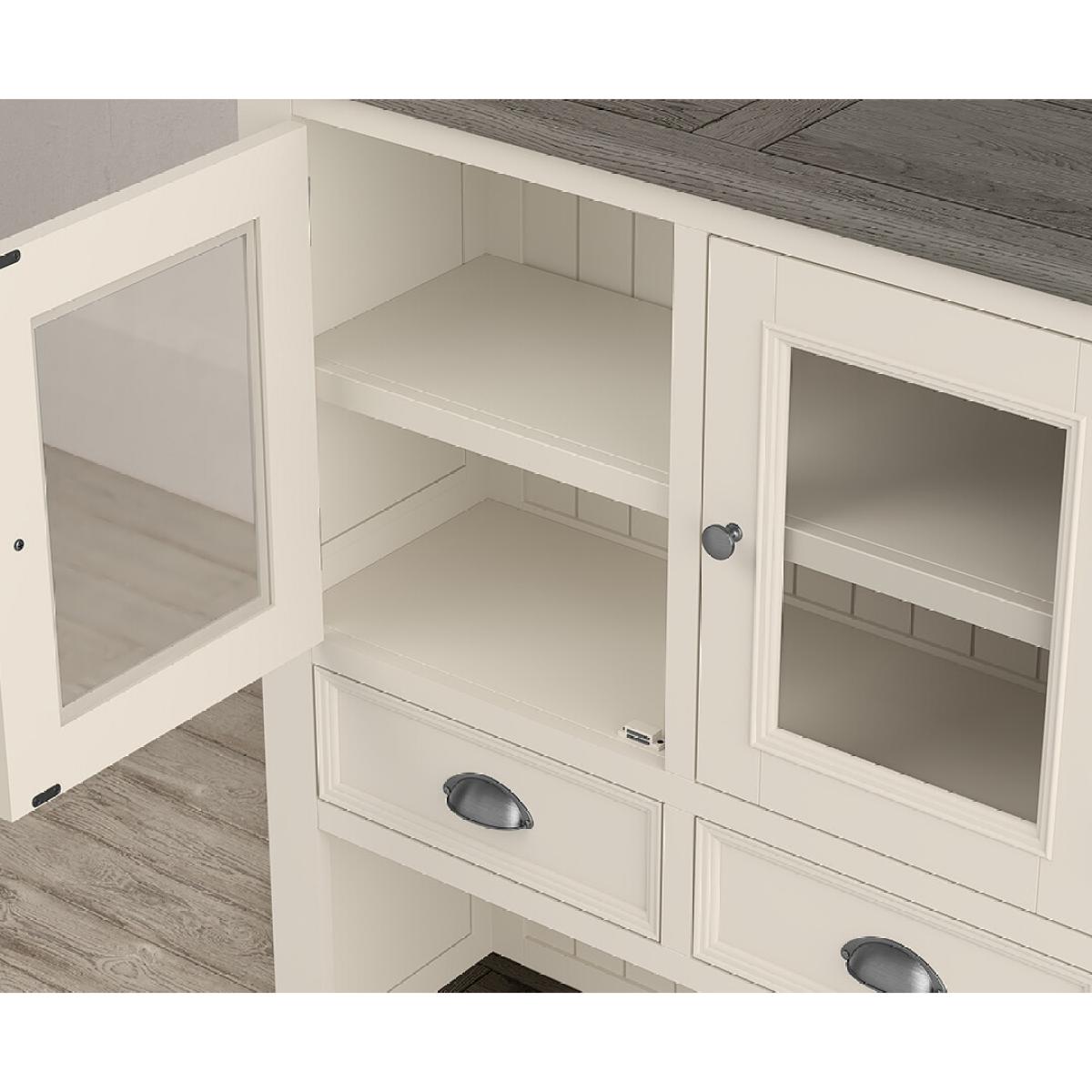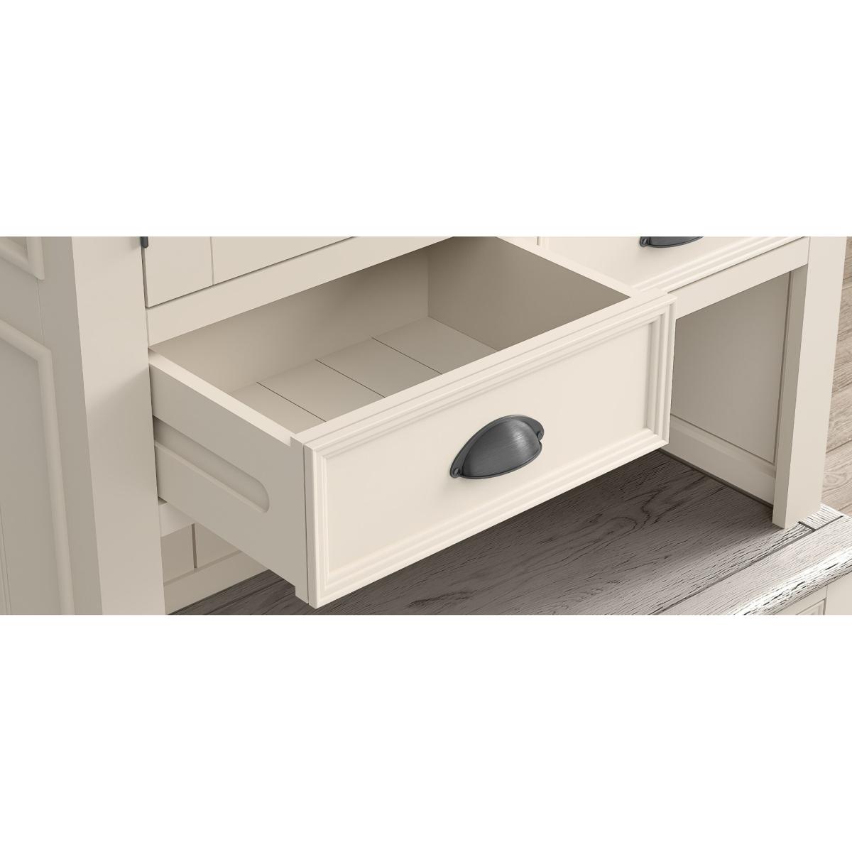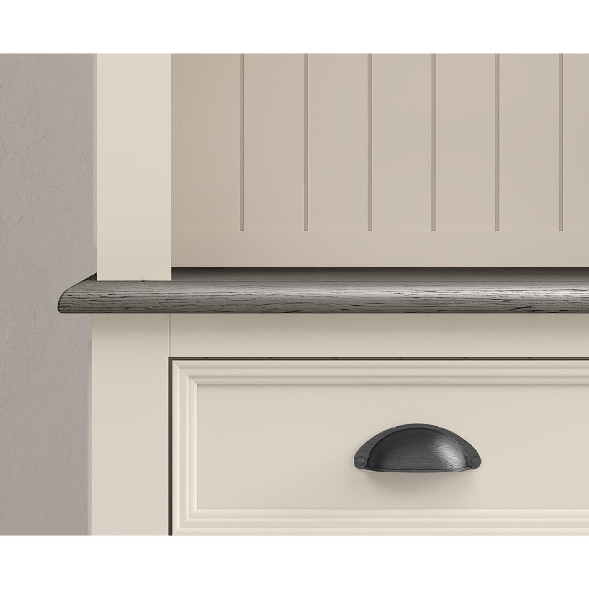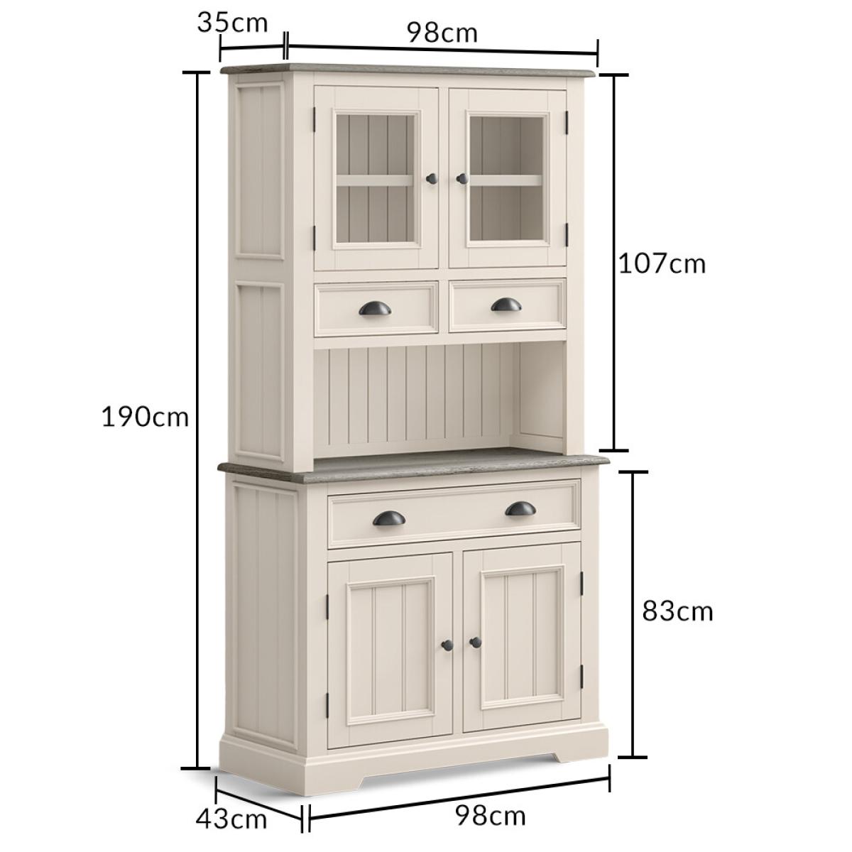 The Dartmouth Oak and Soft White Large Sideboard and Dresser Top feature solid hardwood frames with a white painted finish and 100% solid oak grey painted tops, with shelves, cupboards and Dovetail drawers.