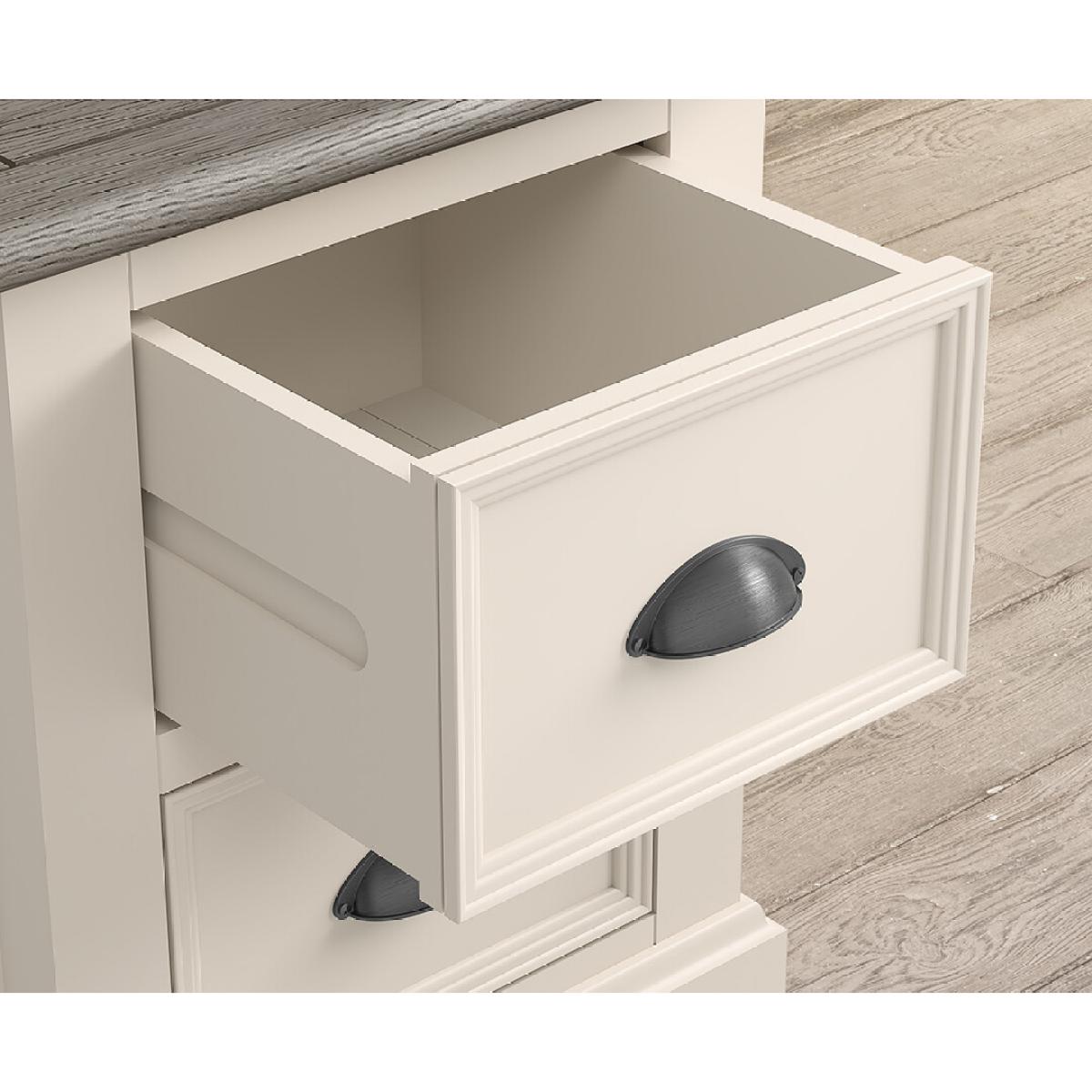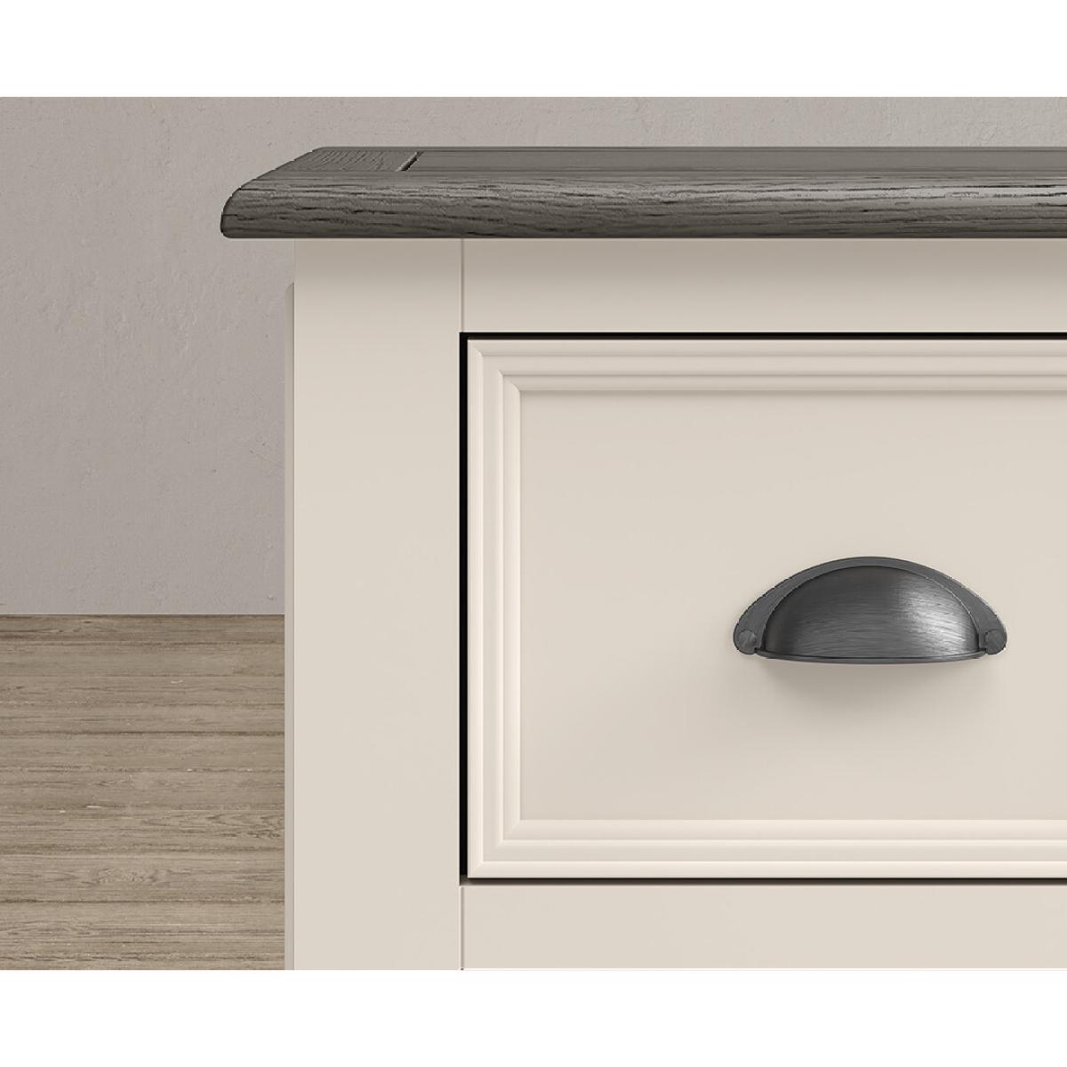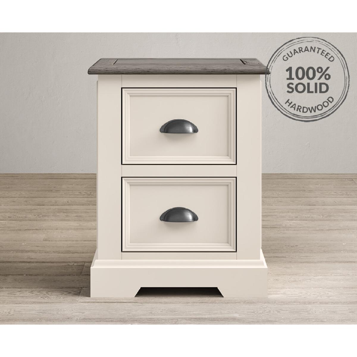 The Dartmouth Oak and Soft White 2 Drawer Bedside Chest is crafted from white painted solid hardwood, with a 100% solid oak top and two dovetail drawers on wooden runners.