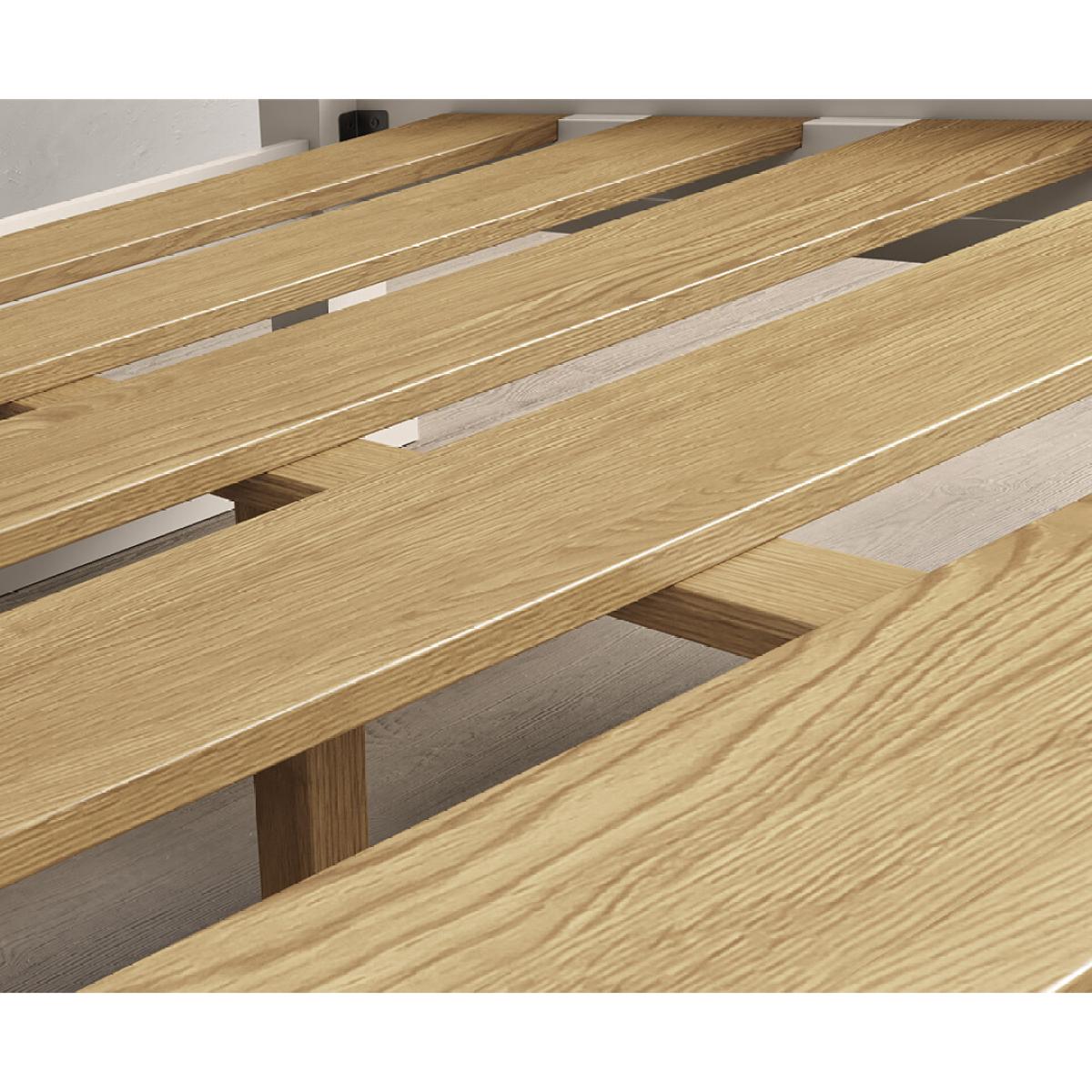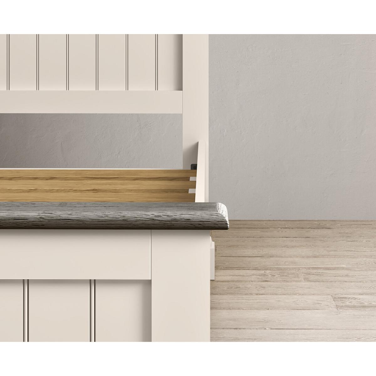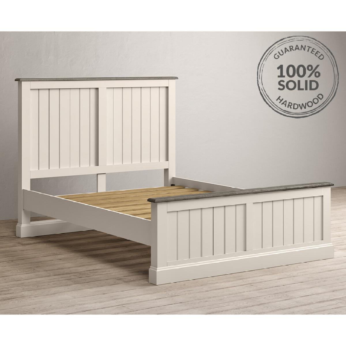 The Dartmouth Oak and Soft White King Size Bed is crafted from white painted solid hardwood, with a panelled high headboard design, solid oak grey painted tops on the headboard and footboard and sturdy slats.