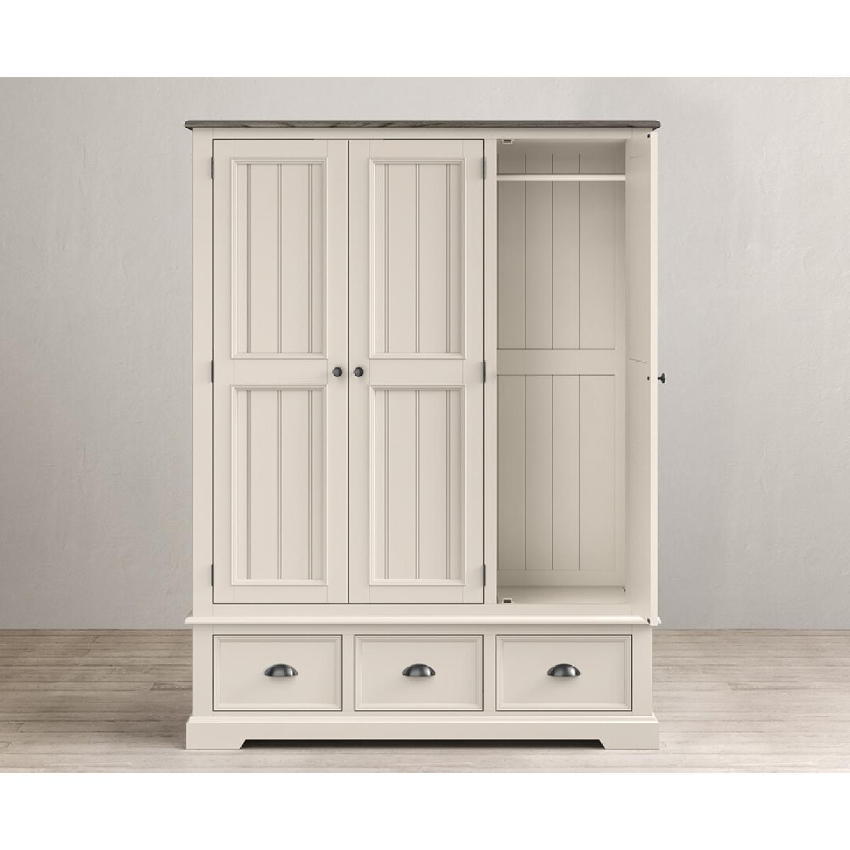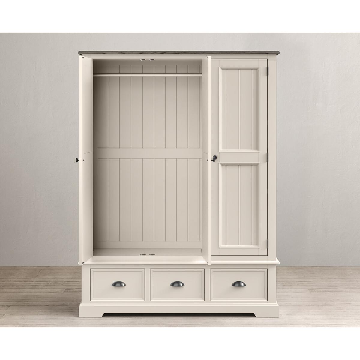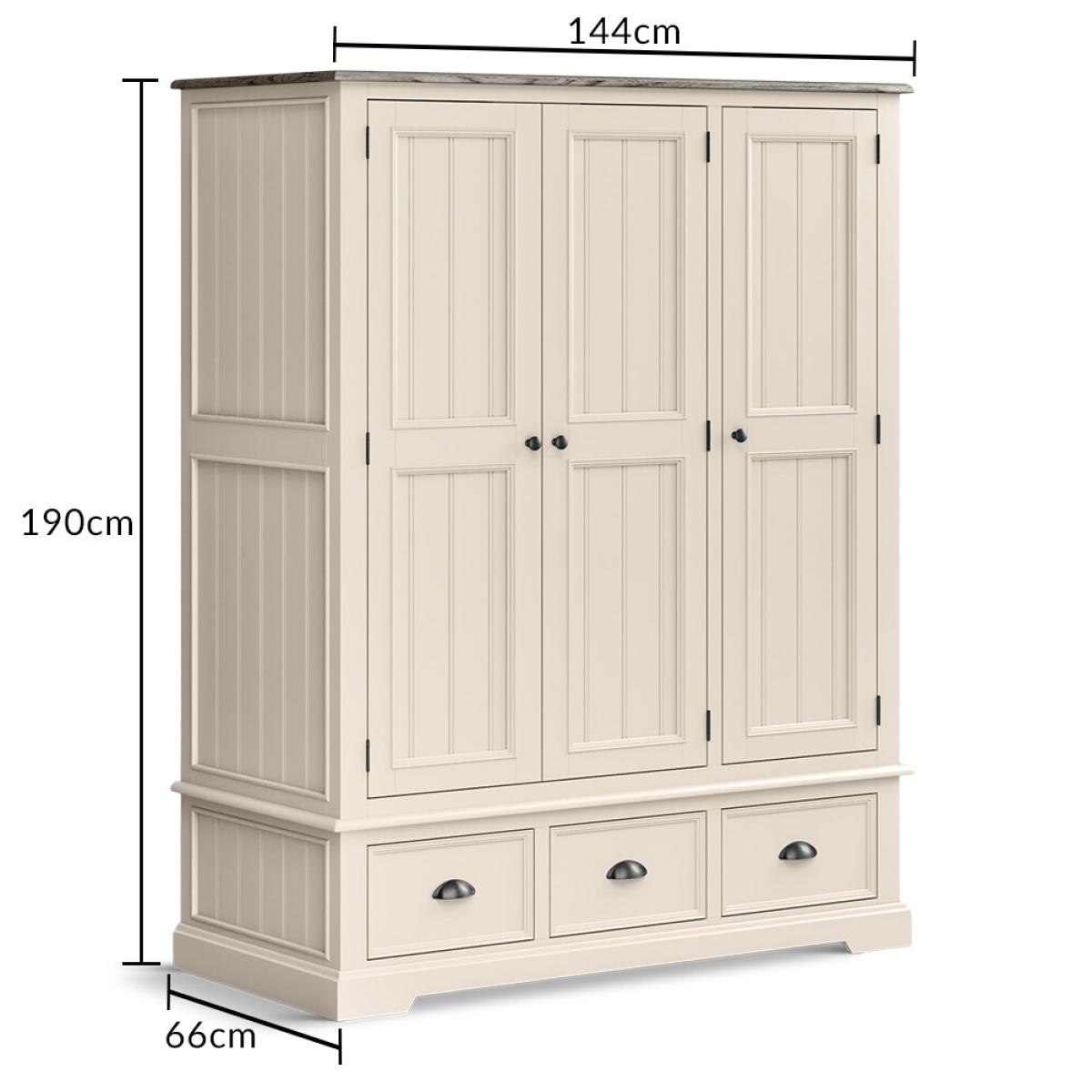 The Dartmouth Oak and Soft White Triple Wardrobe is crafted from durable solid hardwood with a white painted finish, topped with solid oak and complete with dovetail drawers.