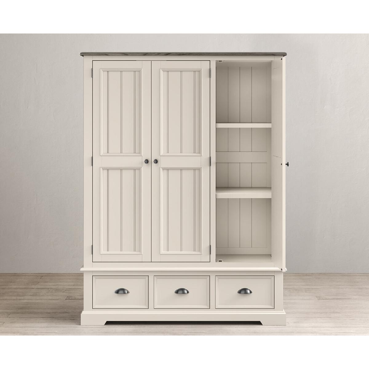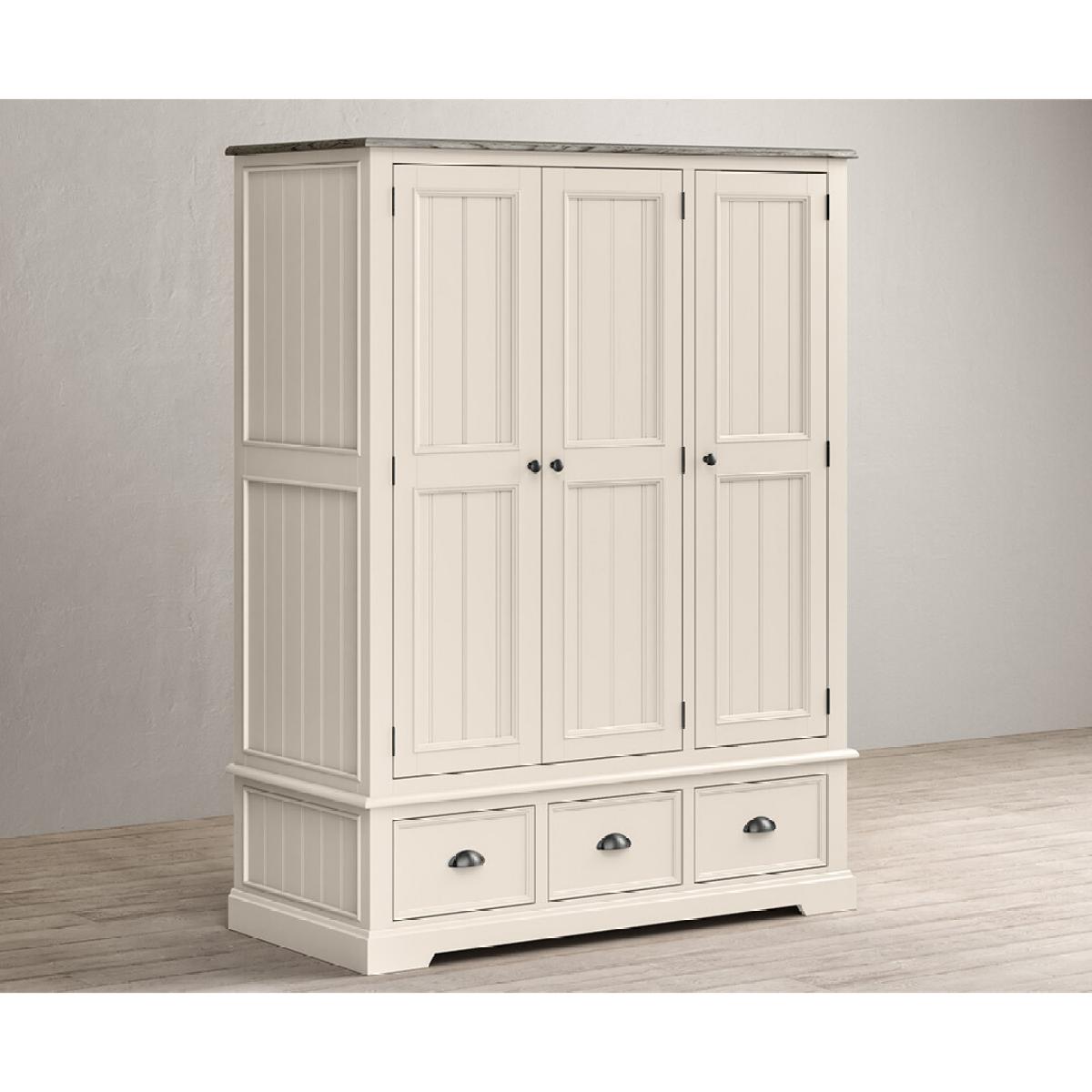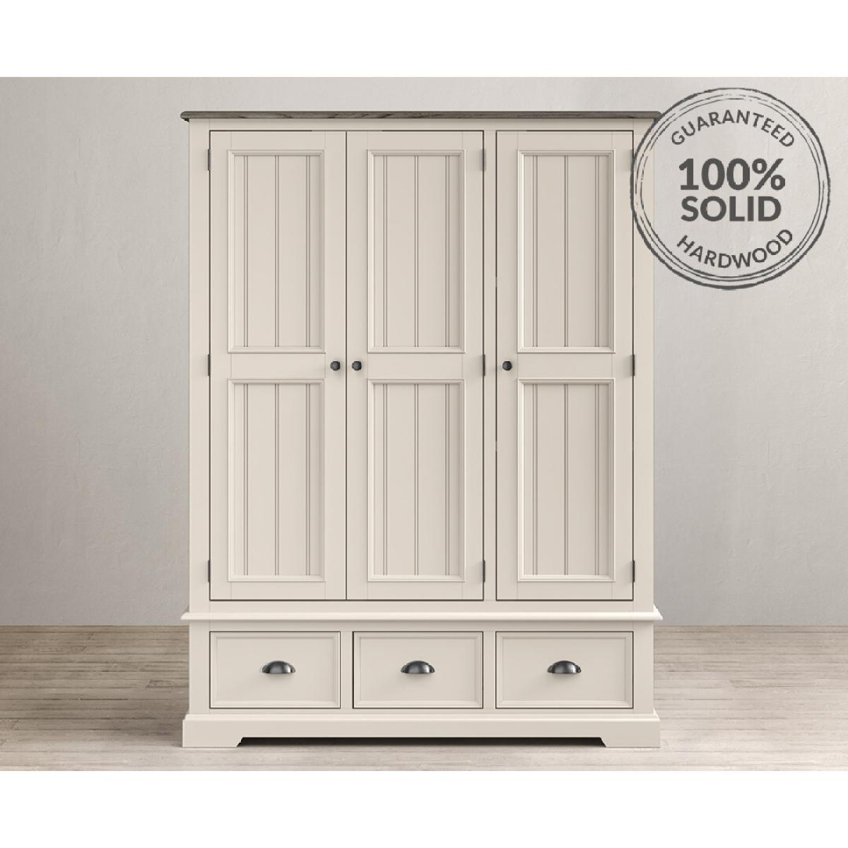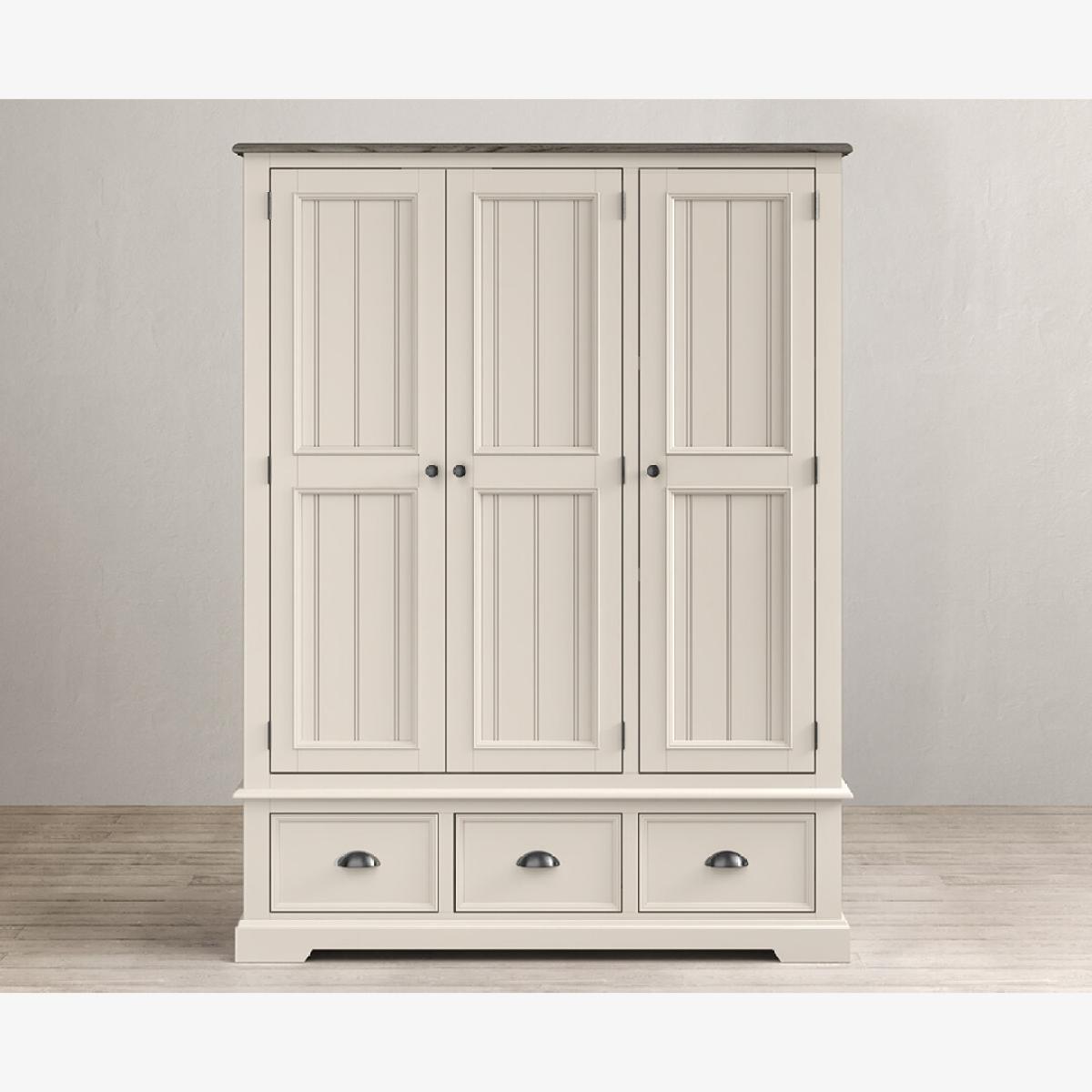 The Dartmouth Oak and Soft White Triple Wardrobe is crafted from durable solid hardwood with a white painted finish, topped with solid oak and complete with dovetail drawers.