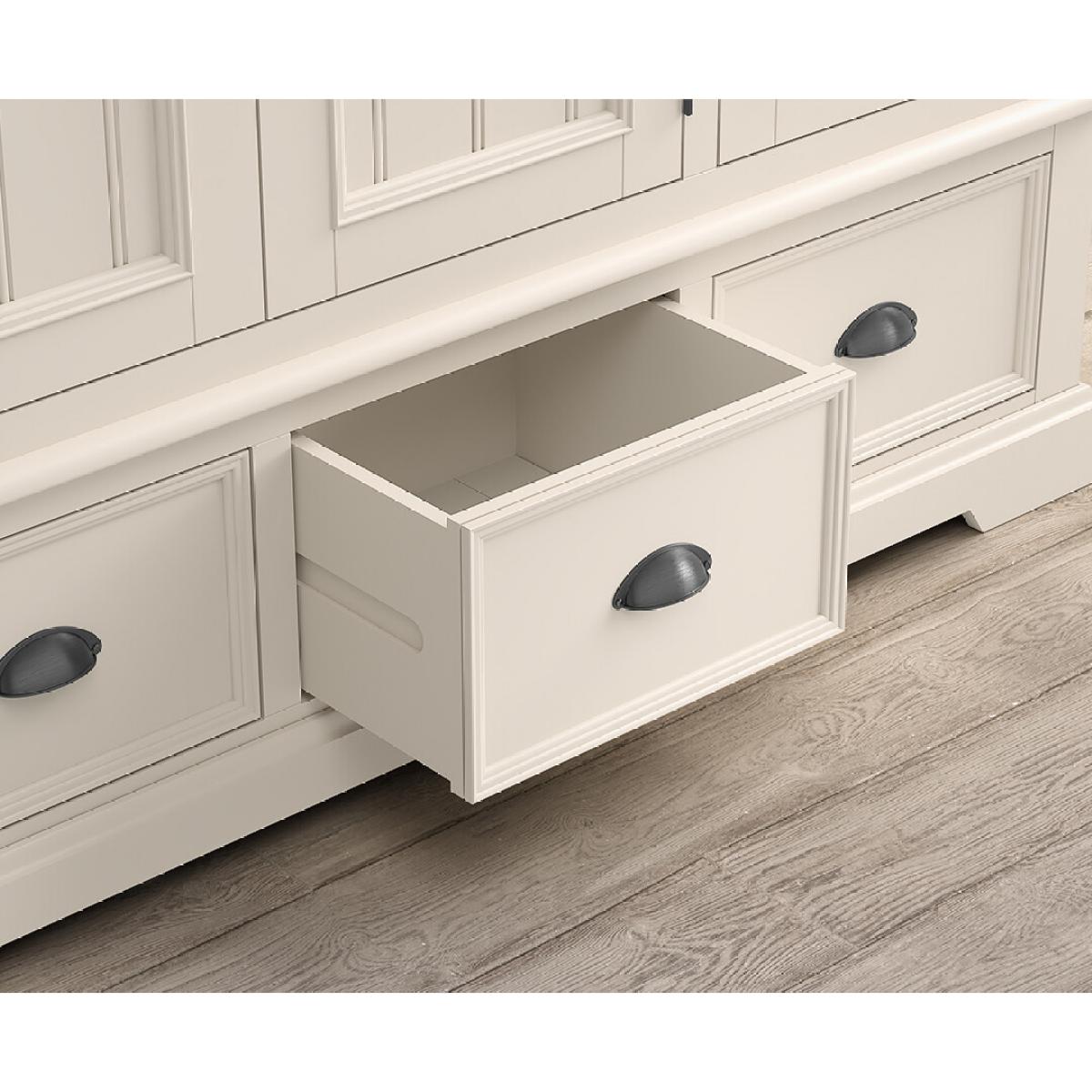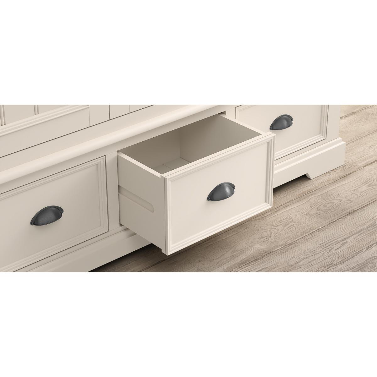 I’m really fond of the Dartmouth wardrobe for its clean lines and versatile soft-white paint finish. It’s spacious without feeling bulky, thanks to the panelled doors and neat cup-handle drawers at the base. The subtle detailing means it won’t compete with other furniture but still adds character. This wardrobe sits equally well in coastal, modern farmhouse or Scandi-inspired bedrooms. To style it, keep the top clear or add a low vase with fresh foliage, then introduce natural-fibre baskets inside for scarves and knitwear. Pair with muted linens and a woven rug to balance its crisp finish.