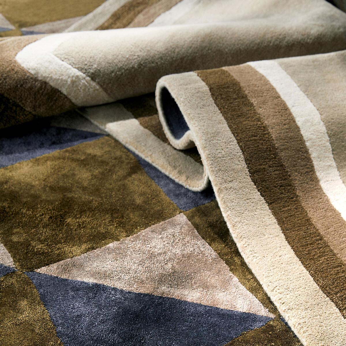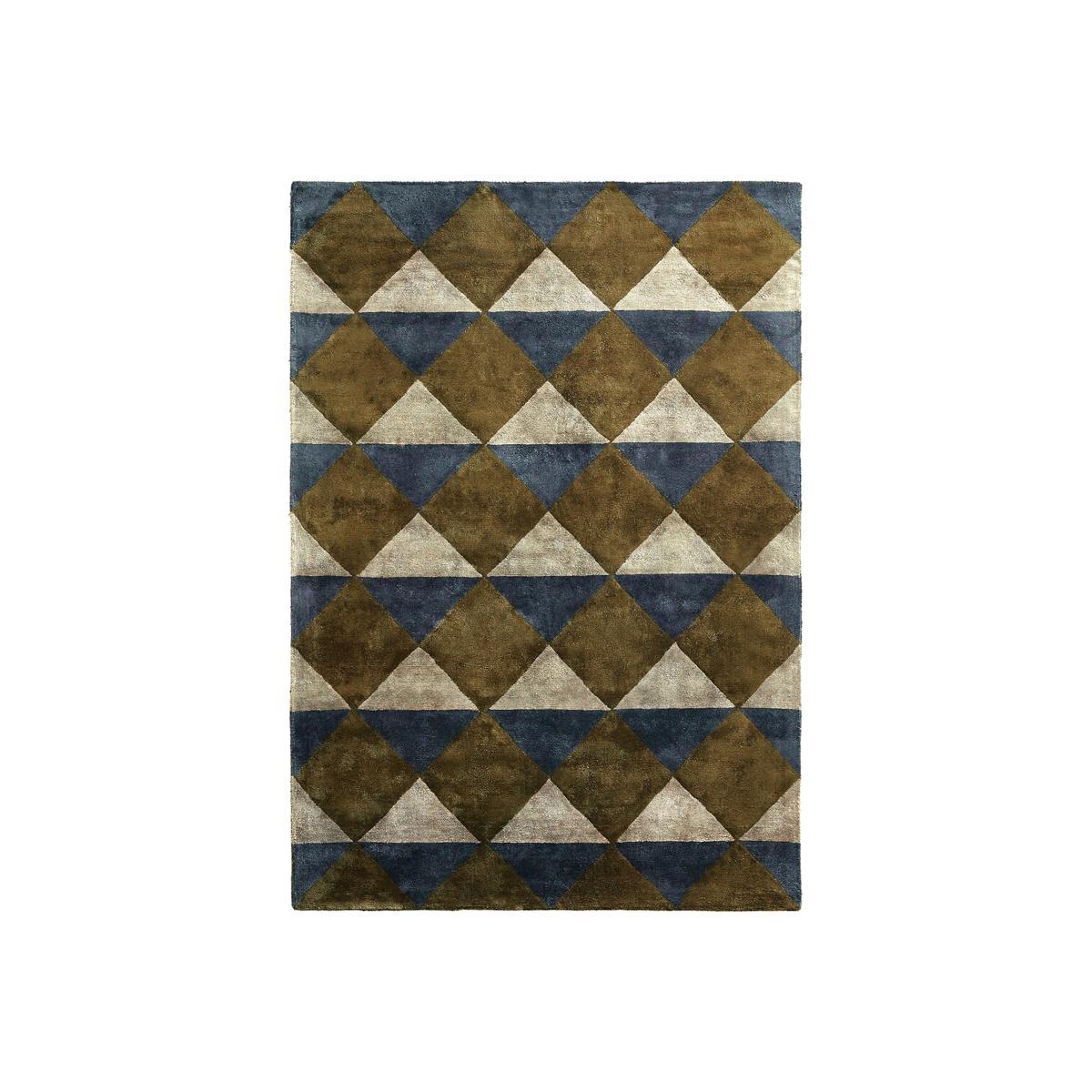 The Darva geometric viscose rug. With tones of green, bronze and anthracite, the Darva rug has a geometric design reminiscent of an abstract painting. Providing thermal insulation and sound proofing, a rug will bring a warm feel to your home, structure the space and give you a touch of comfort underfoot. High quality, AMPM rugs are handcrafted. Product Details. 100% viscose. Craftsmanship: Hand woven. Weight: 3800g/m². Pile height: 10 mm thick. Browse our collection of AMPM rugs. Additional Information. Made in India. Vacuum regularly. Clean up any spillages immediately by dabbing with a clean, damp cloth. Dry clean recommended. Dimensions. Size 1. Width: 120cm. Length: 180cm. Size 2. Width: 160cm. Length: 230cm. Size 3. Width: 200cm. Length: 290cm. Delivery: Your rug will be delivered to your door! Note! Please check that all access points are large enough to accommodate the delivery of your rug (doors, stairs, lifts).Dimensions and weight of parcel. Size 1: L122 x H17 x D17 cm. Size 2: L162 x H19 x D19 cm. Size 3: L203 x H21 x D21 cm.