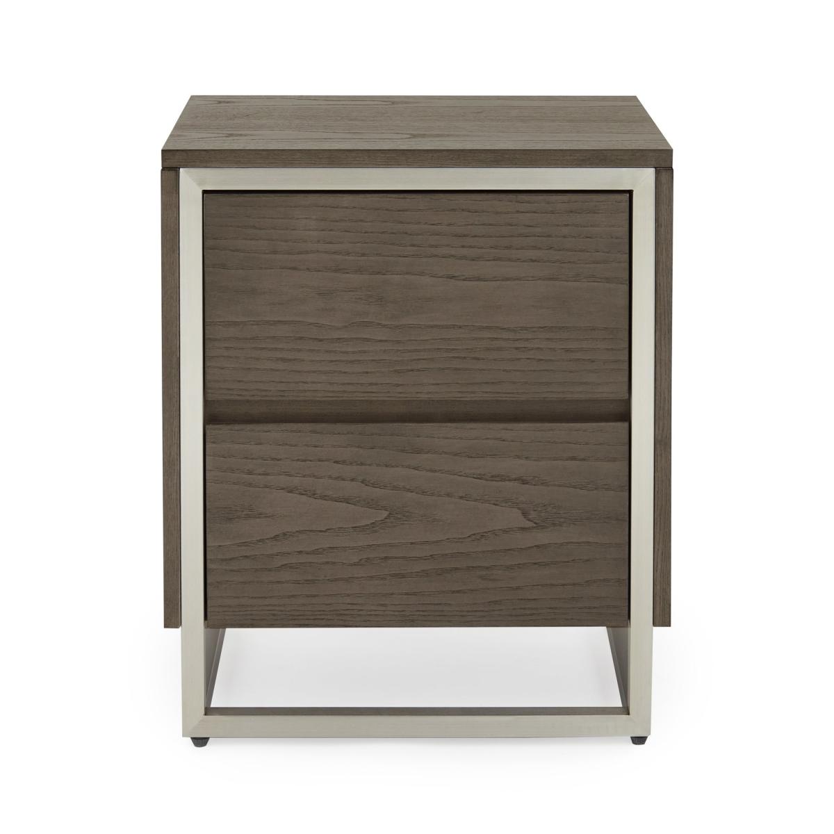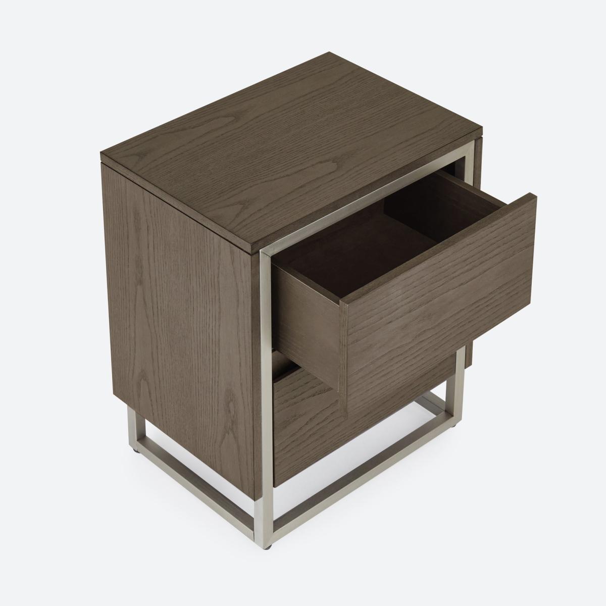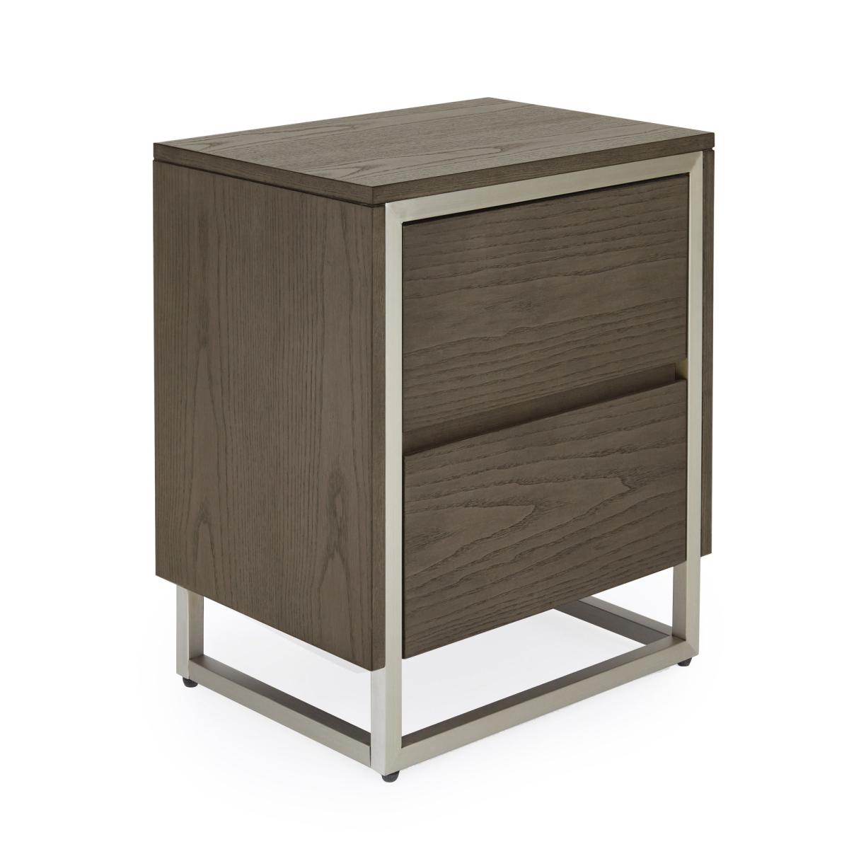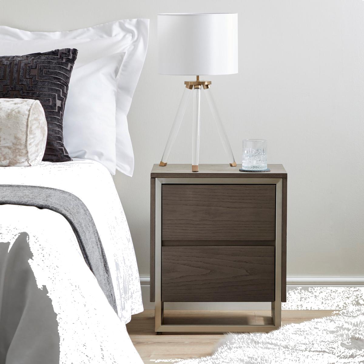 I’m a fan of this slimline Darwin bedside for its mix of warm grey timber and matte frame - it slots straight into minimalist, Scandi or contemporary schemes. The two soft-close drawers keep clutter out of sight, while the compact footprint works well in smaller bedrooms or when you want a pared-back look. For styling, start with a mid-height table lamp and add an odd-number trio of accessories - perhaps a small plant, a simple coaster and a favourite book. A shallow tray can corral smaller items like glasses or a watch, and a neutral rug underneath will tie the whole area together without competing for attention.