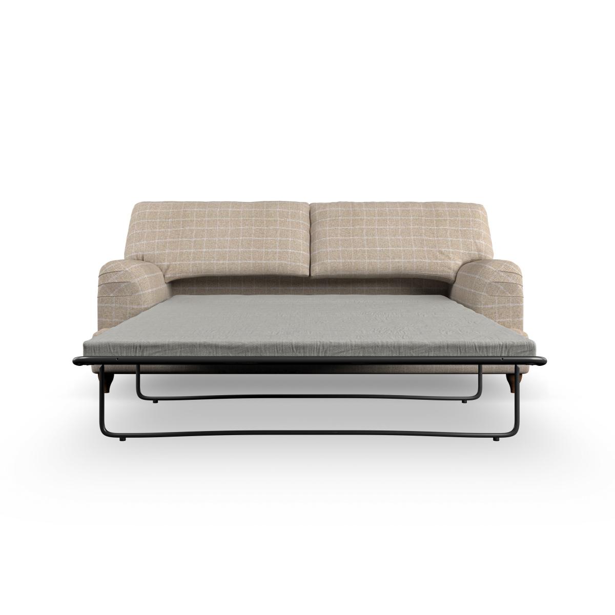 * Classic style* Bandaged Arms* Pleated details* Serpentine seat springs* Choose your support, fabric and leg colour This sofa bed features a fresh take on the classic bandaged arm design, with pleat details and a lugged seat for a unique and elegant look. Built for longevity and comfort, it includes serpentine seat springs and deep fibre-filled back cushions for excellent support. Customise your comfort by choosing between a low-maintenance foam seat or the inviting ‘Qualofill Blue’ fibre seat, made from 100% recycled polyester. The ‘T’ cushion seat and arm design ensure a compact and contemporary feel, complemented by self-sewn seat and back cushions. Additionally, you can select your preferred fabric and leg colour to perfectly match your decor.