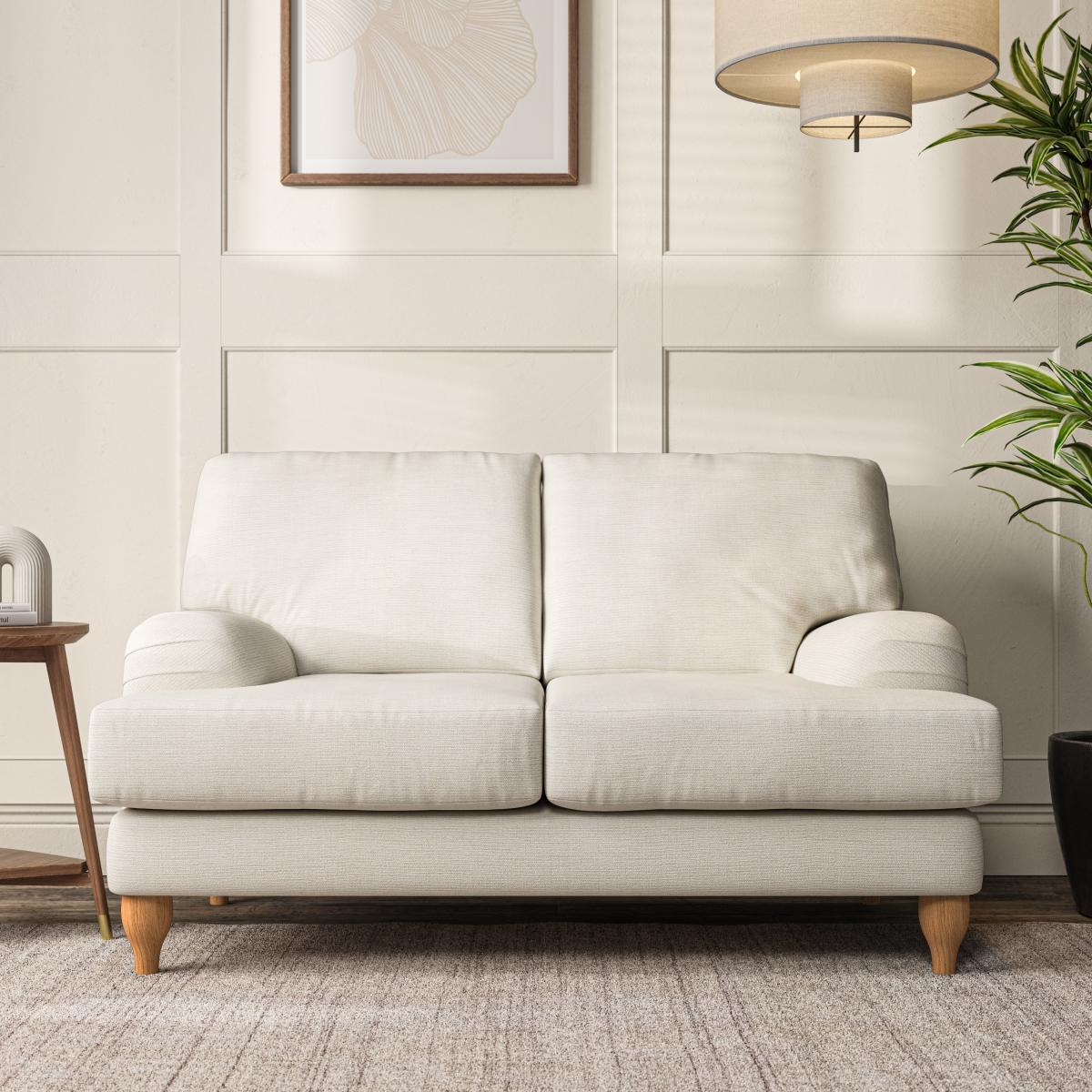 * Classic style* Bandaged Arms* Pleated details* Serpentine seat springs* Choose your support, fabric and leg colour This sofa features bandaged arms with pleat details and a lugged seat, offering a unique and sophisticated look. Built for longevity and comfort, it includes serpentine seat springs and deep fibre-filled back cushions for excellent support. Customise your comfort by choosing between a low-maintenance foam seat or the inviting ‘Qualofill Blue’ fibre seat, made from 100% recycled polyester. The ‘T’ cushion seat and arm design ensure a compact and contemporary feel, complemented by self-sewn seat and back cushions. Available with ‘hour glass’ shaped turned hardwood legs in two finishes, this sofa is both easy to fit and perfect for any stylish living space. Additionally, you can select your preferred fabric and colour to perfectly match your décor.
