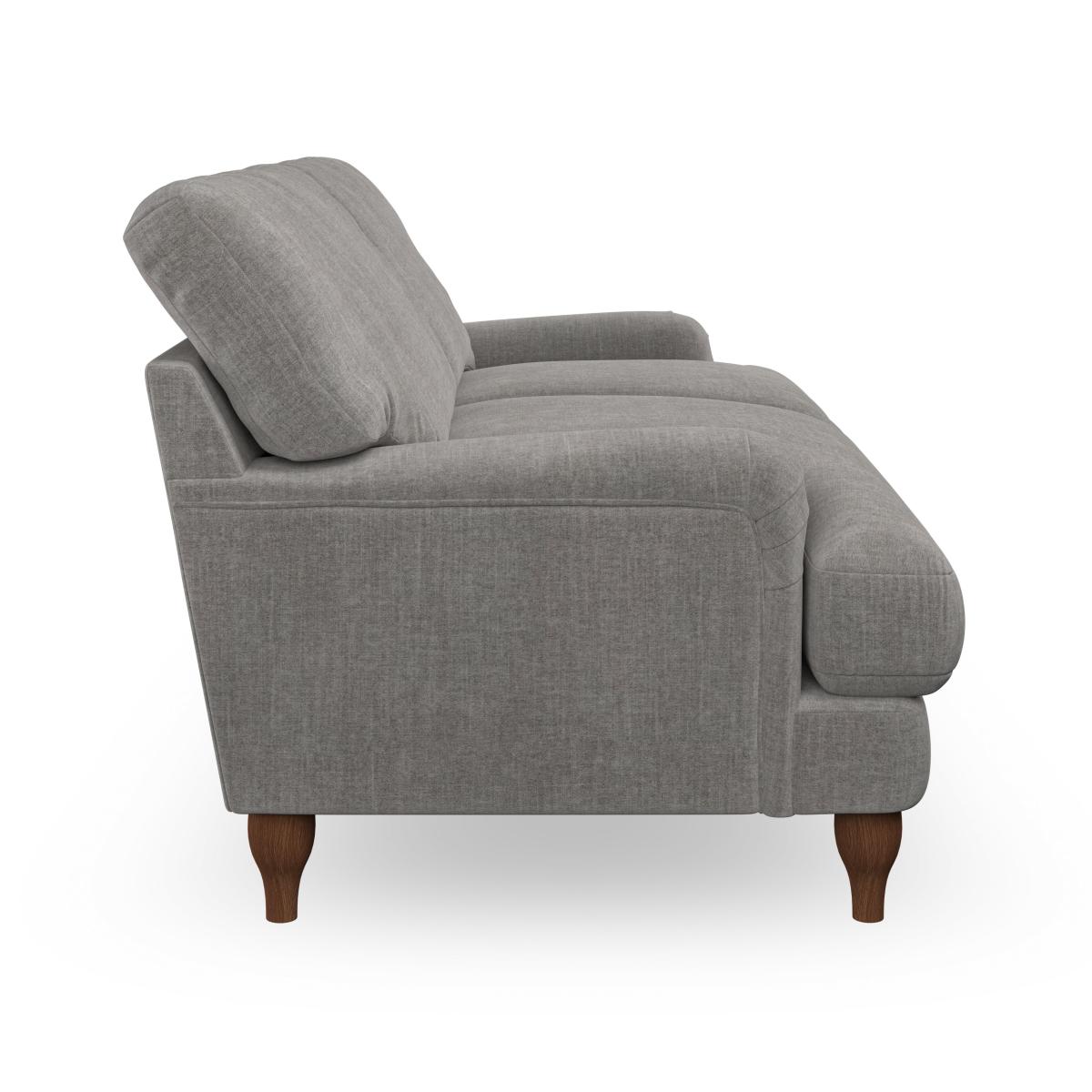 * Classic style* Bandaged Arms* Pleated details* Serpentine seat springs* Choose your support, fabric and leg colour This sofa features bandaged arms with pleat details and a lugged seat, offering a unique and sophisticated look. Built for longevity and comfort, it includes serpentine seat springs and deep fibre-filled back cushions for excellent support. Customise your comfort by choosing between a low-maintenance foam seat or the inviting ‘Qualofill Blue’ fibre seat, made from 100% recycled polyester. The ‘T’ cushion seat and arm design ensure a compact and contemporary feel, complemented by self-sewn seat and back cushions. Available with ‘hour glass’ shaped turned hardwood legs in two finishes, this sofa is both easy to fit and perfect for any stylish living space. Additionally, you can select your preferred fabric and colour to perfectly match your décor.