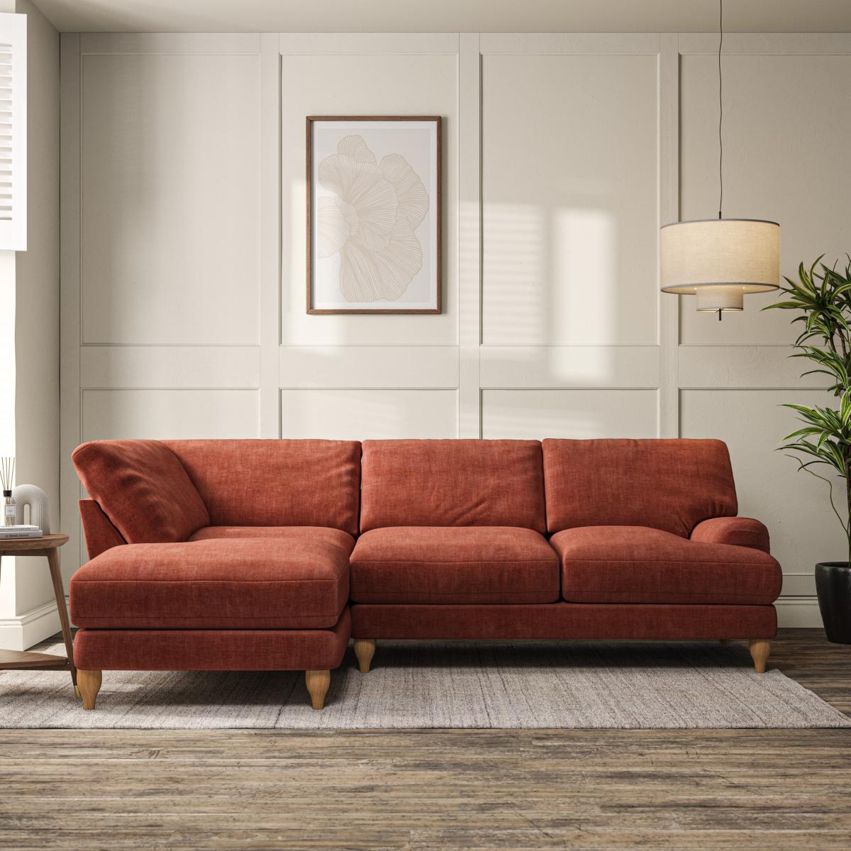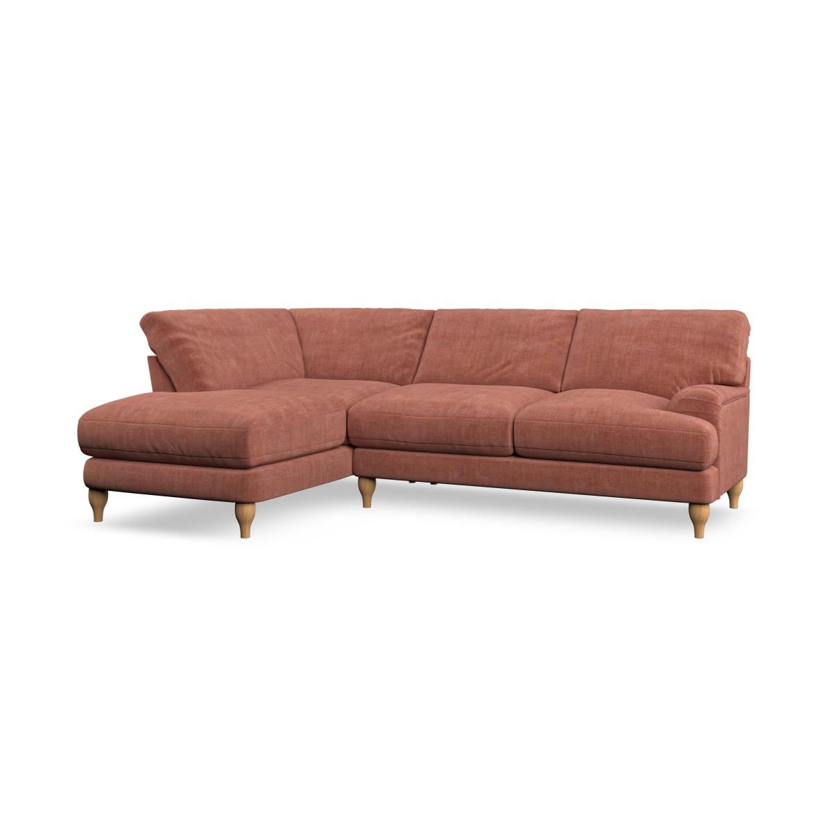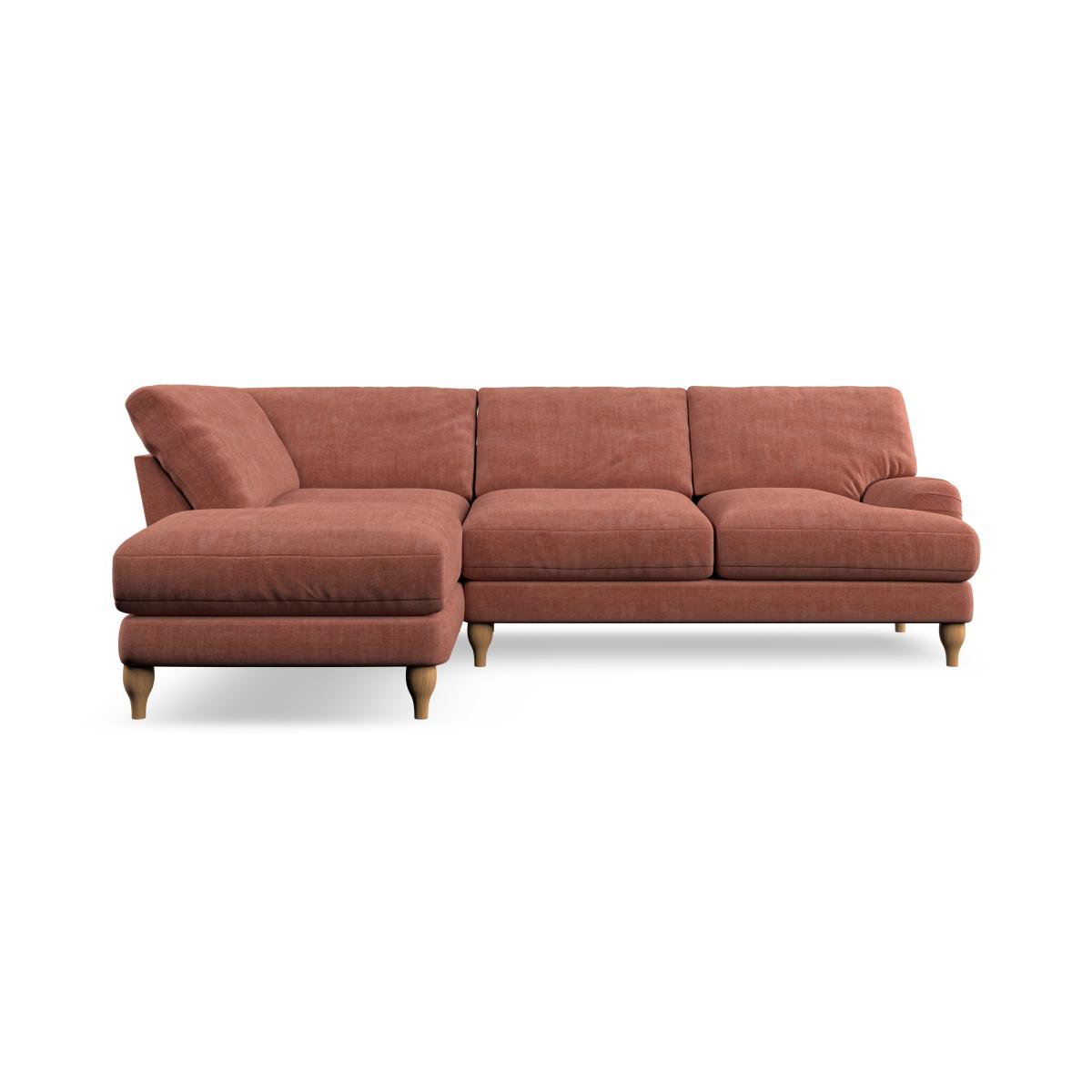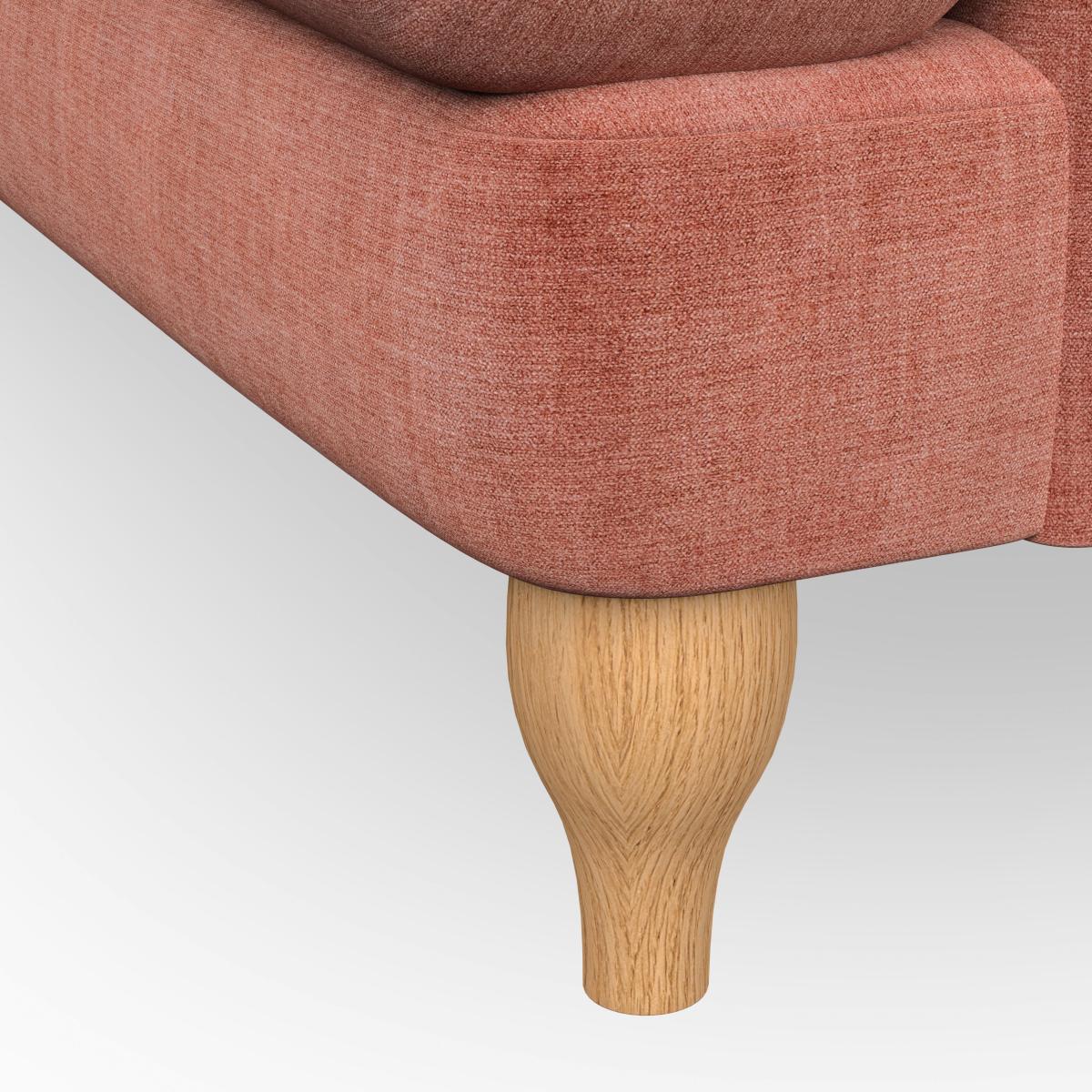 * Classic style* Bandaged Arms* Pleated details* Serpentine seat springs* Choose your orientation, support, fabric and leg colour This sofa features bandaged arms with pleat details and a lugged seat, offering a unique and stylish look. Built for longevity and comfort, it includes serpentine seat springs and deep fibre-filled back cushions for excellent support. You can customise your comfort by choosing between a low-maintenance foam seat or the inviting ‘Qualofill Blue’ fibre seat, made from 100% recycled polyester. The ‘T’ cushion seat and arm design ensure a compact and contemporary feel, complemented by self-sewn seat and back cushions. Choose from a right hand or left hand facing chaise to fit your space perfectly. Additionally, you can select your preferred fabric and leg colour to perfectly match your living space.