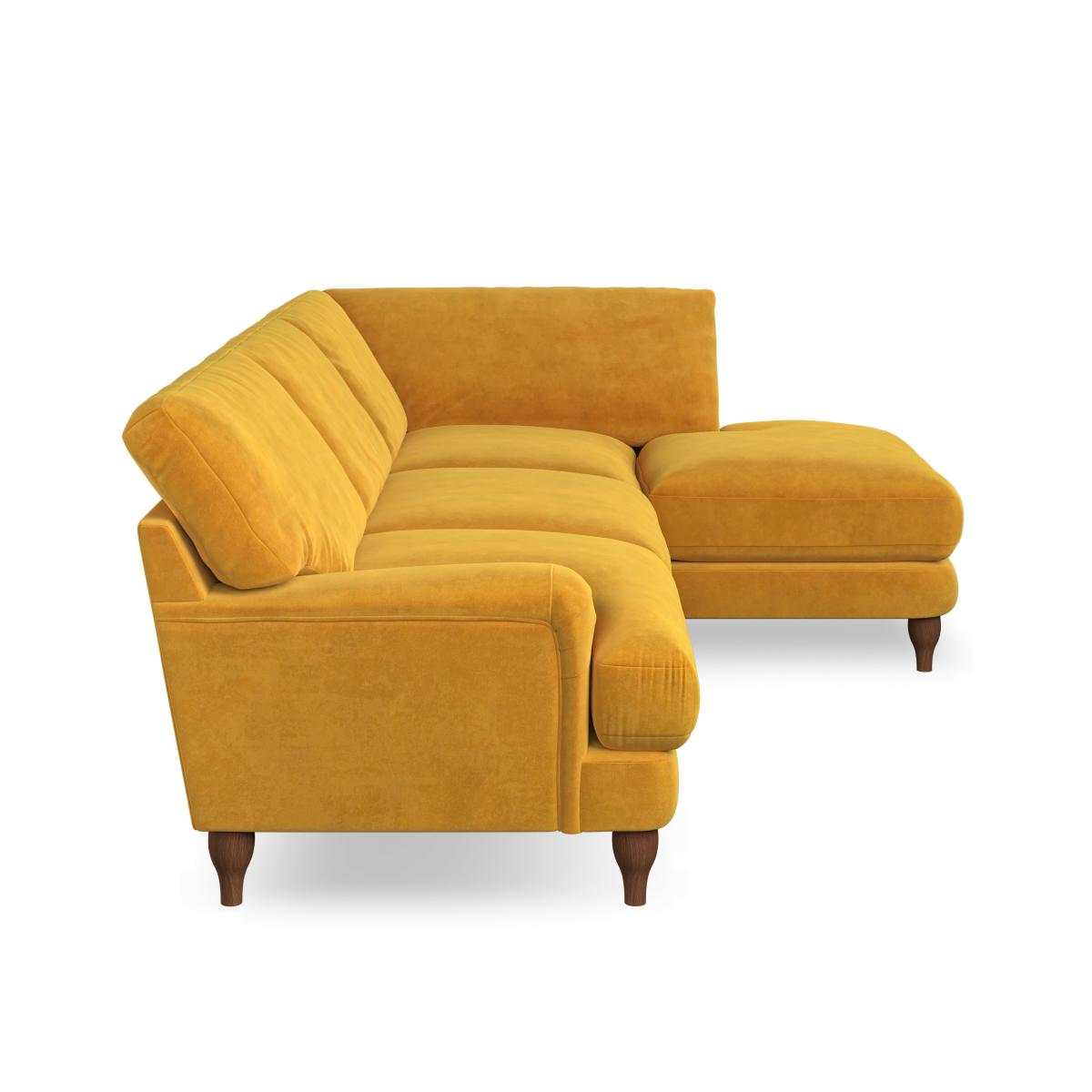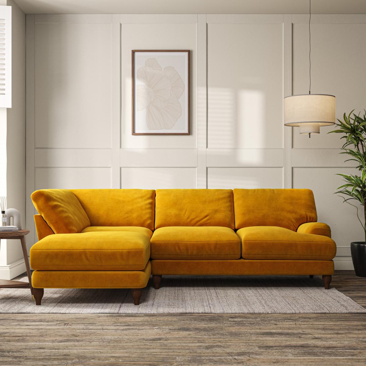 * Classic style* Bandaged Arms* Pleated details* Serpentine seat springs* Choose your orientation, support, fabric and leg colour This sofa features bandaged arms with pleat details and a lugged seat, offering a unique and stylish look. Built for longevity and comfort, it includes serpentine seat springs and deep fibre-filled back cushions for excellent support. You can customise your comfort by choosing between a low-maintenance foam seat or the inviting ‘Qualofill Blue’ fibre seat, made from 100% recycled polyester. The ‘T’ cushion seat and arm design ensure a compact and contemporary feel, complemented by self-sewn seat and back cushions. Choose from a right hand or left hand facing chaise to fit your space perfectly. Additionally, you can select your preferred fabric and leg colour to perfectly match your living space.