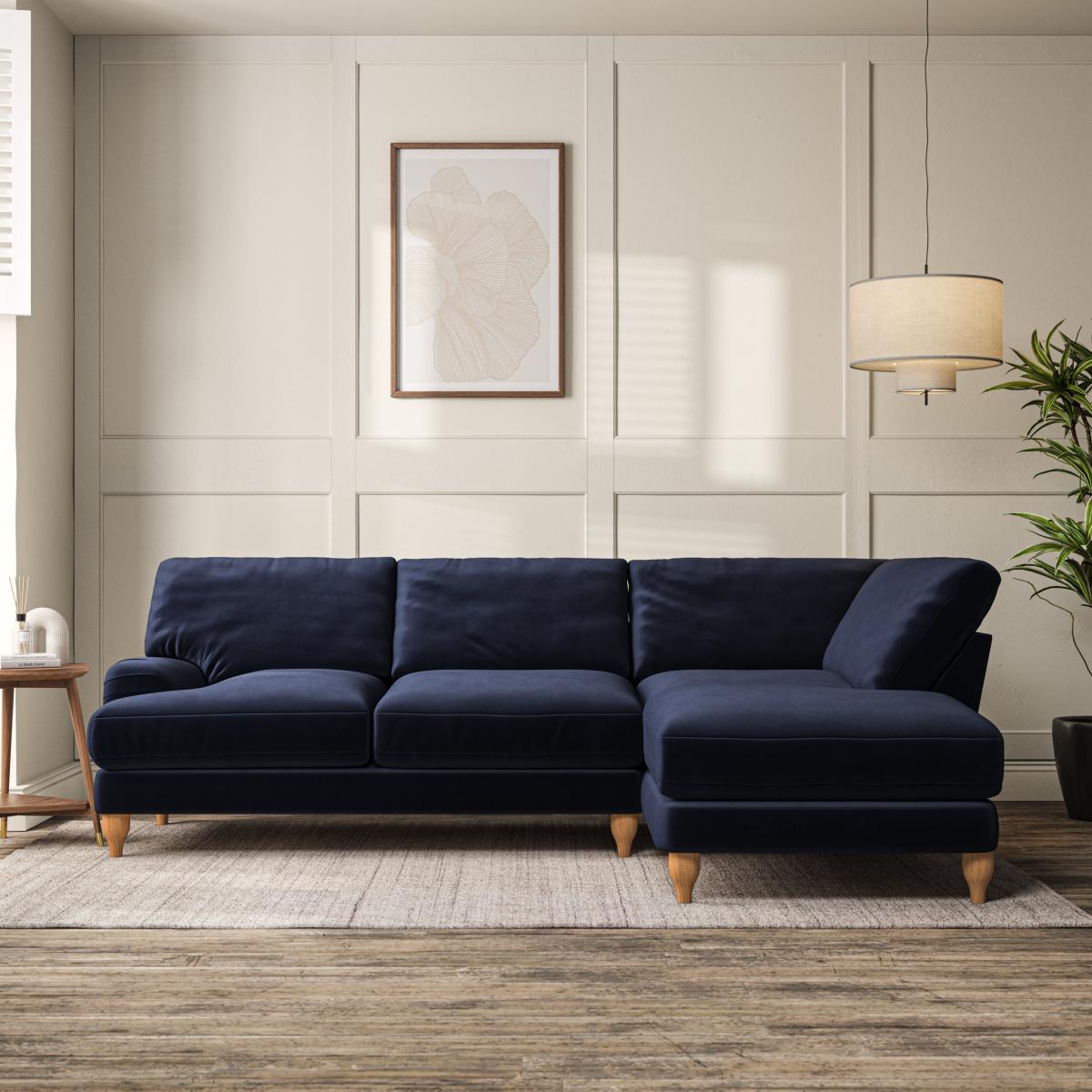 * Classic style* Bandaged Arms* Pleated details* Serpentine seat springs* Choose your orientation, support, fabric and leg colour This sofa features bandaged arms with pleat details and a lugged seat, offering a unique and stylish look. Built for longevity and comfort, it includes serpentine seat springs and deep fibre-filled back cushions for excellent support. You can customise your comfort by choosing between a low-maintenance foam seat or the inviting ‘Qualofill Blue’ fibre seat, made from 100% recycled polyester. The ‘T’ cushion seat and arm design ensure a compact and contemporary feel, complemented by self-sewn seat and back cushions. Choose from a right hand or left hand facing chaise to fit your space perfectly. Additionally, you can select your preferred fabric and leg colour to perfectly match your living space.