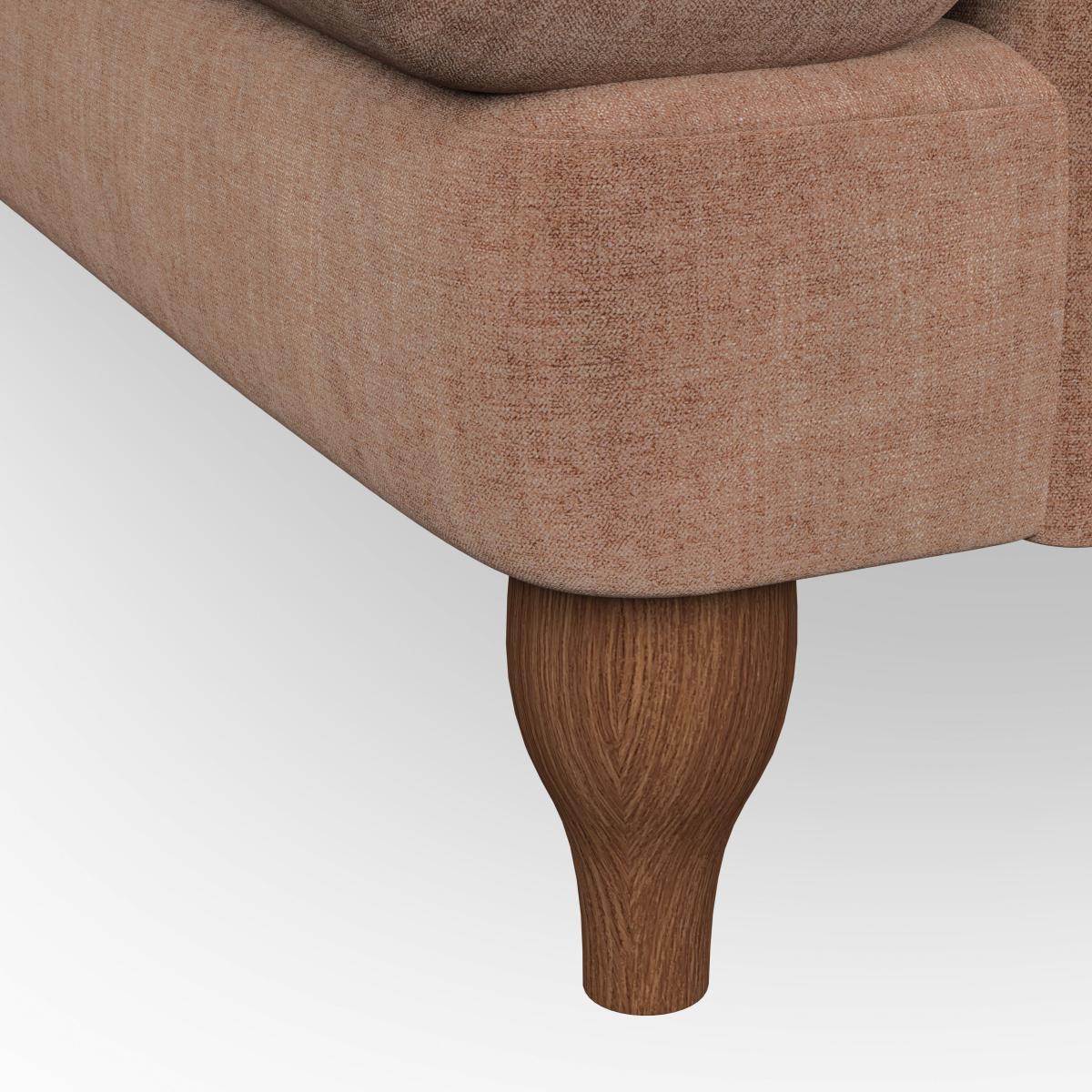 * Classic style* Bandaged Arms* Pleated details* Serpentine seat springs* Choose your orientation, support, fabric and leg colour This sofa features bandaged arms with pleat details and a lugged seat, offering a unique and stylish look. Built for longevity and comfort, it includes serpentine seat springs and deep fibre-filled back cushions for excellent support. You can customise your comfort by choosing between a low-maintenance foam seat or the inviting ‘Qualofill Blue’ fibre seat, made from 100% recycled polyester. The ‘T’ cushion seat and arm design ensure a compact and contemporary feel, complemented by self-sewn seat and back cushions. Choose from a right hand or left hand facing chaise to fit your space perfectly. Additionally, you can select your preferred fabric and leg colour to perfectly match your living space.