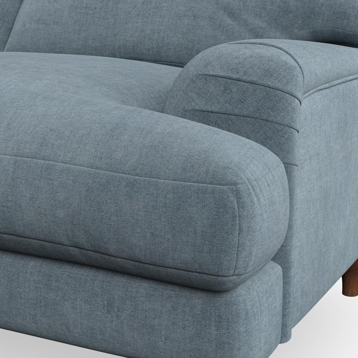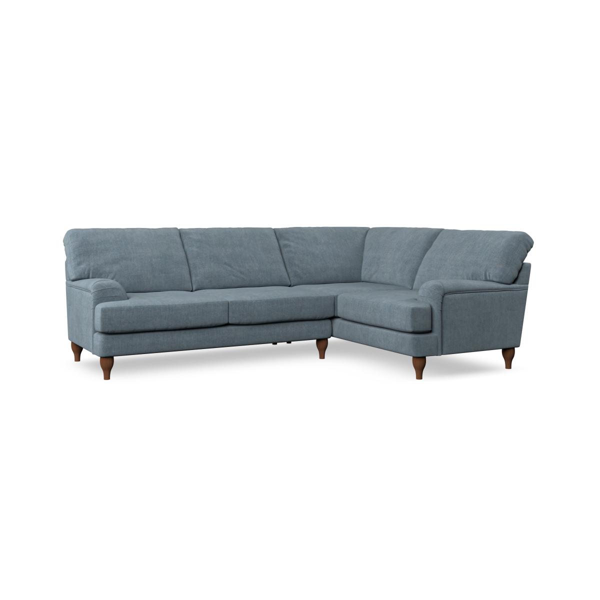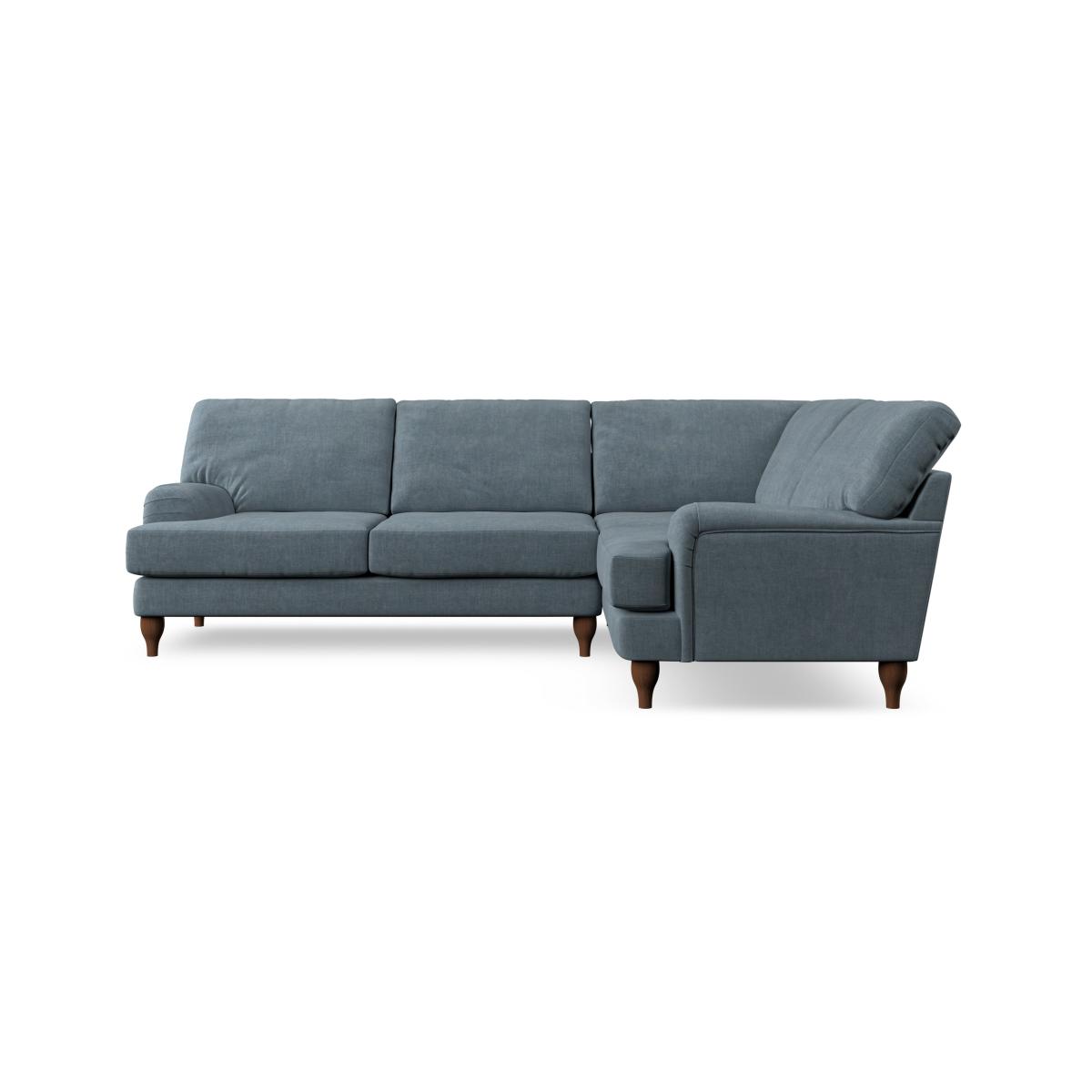* Classic style* Bandaged Arms* Pleated details* Serpentine seat springs* Choose your orientation, support, fabric and leg colour This sofa features bandaged arms with pleat details and a lugged seat, offering a unique and stylish look. Built for longevity and comfort, it includes serpentine seat springs and deep fibre-filled back cushions for excellent support. You can customise your comfort by choosing between a low-maintenance foam seat or the inviting ‘Qualofill Blue’ fibre seat, made from 100% recycled polyester. The ‘T’ cushion seat and arm design ensure a compact and contemporary feel, complemented by self-sewn seat and back cushions. Choose from a right hand or left hand facing corner to fit your space perfectly. Additionally, you can select your preferred fabric and leg colour to perfectly match your living space.