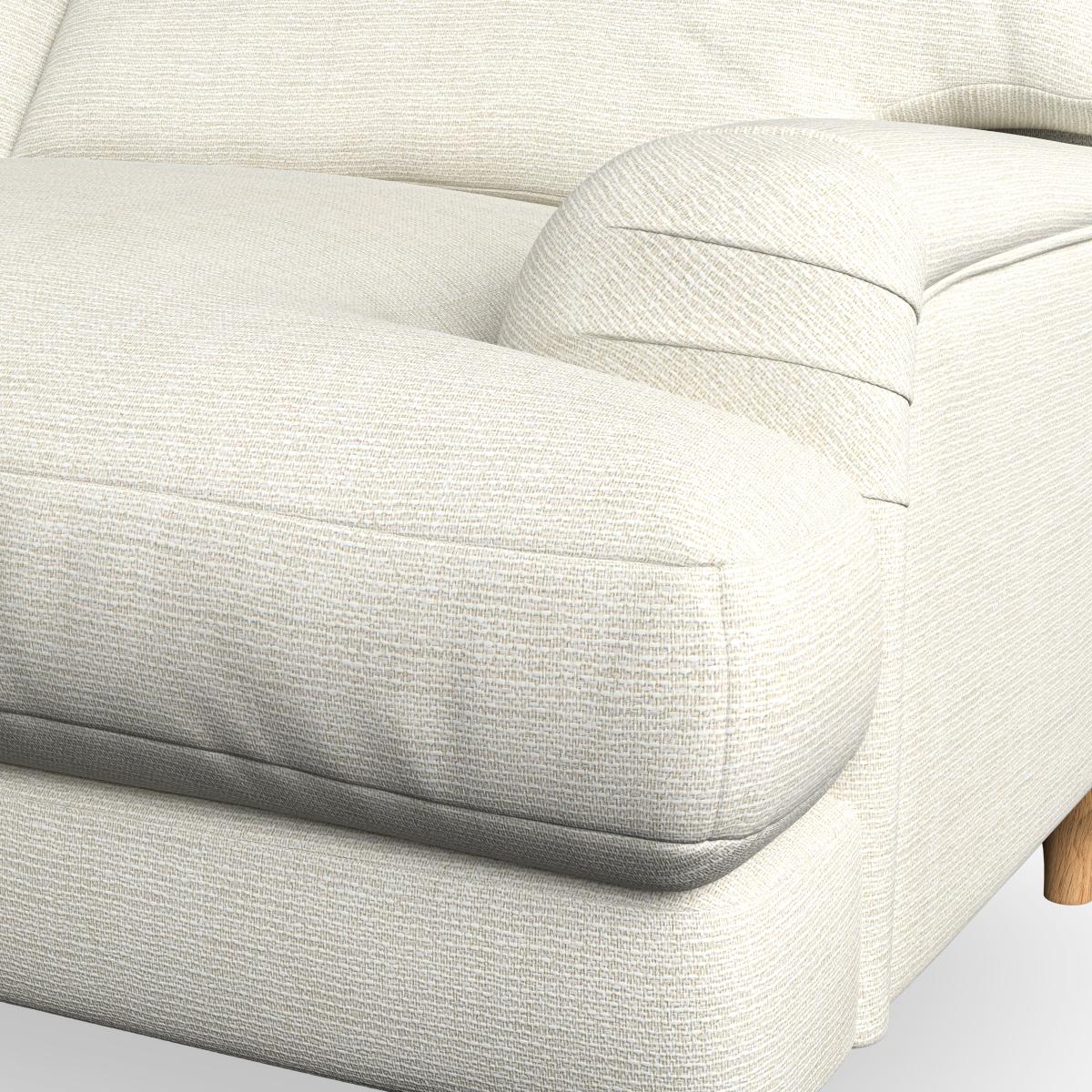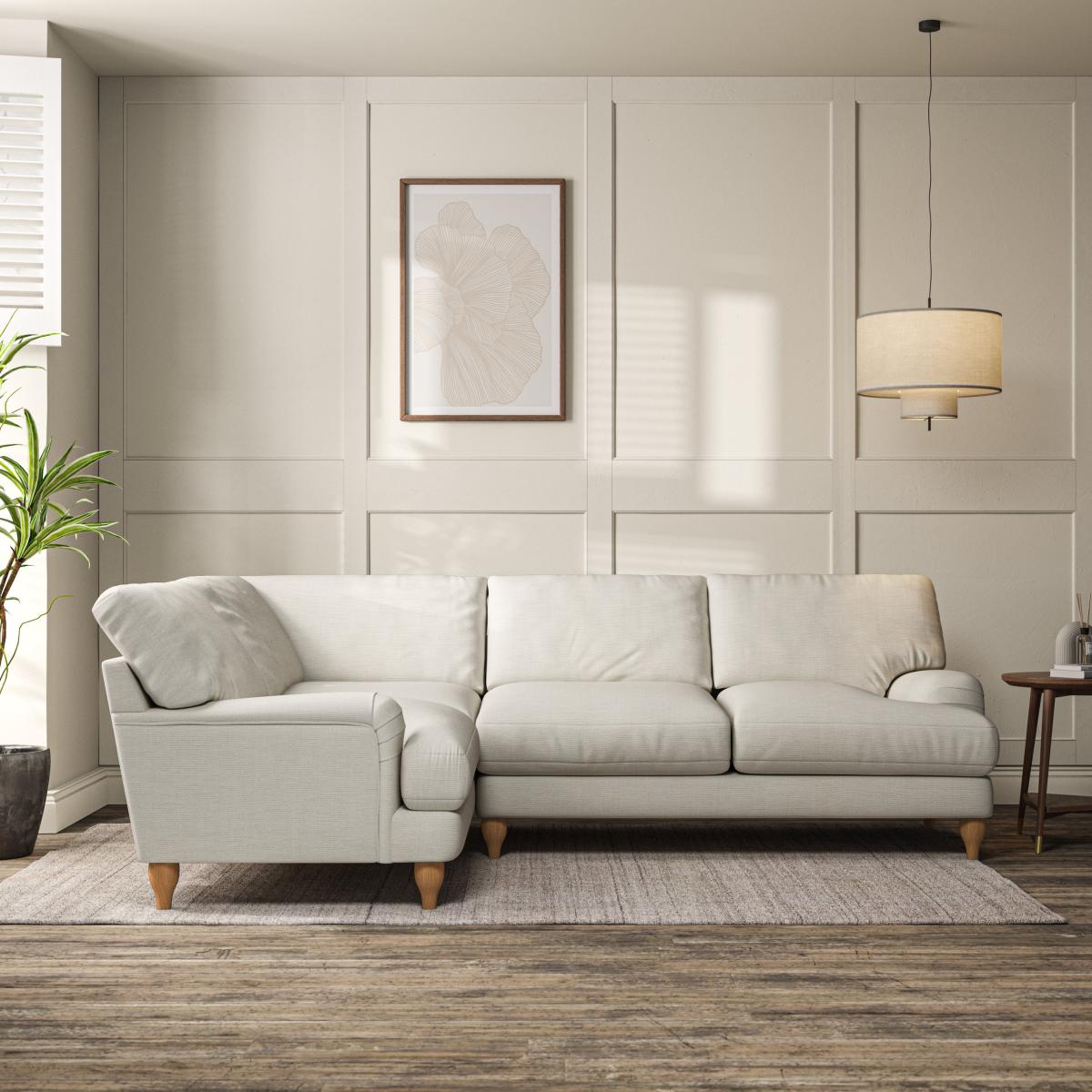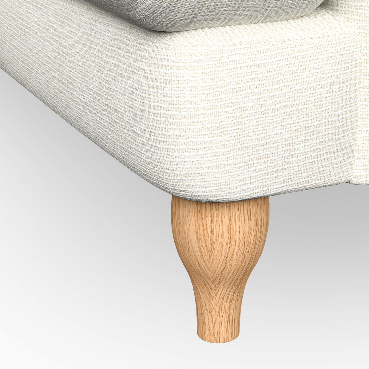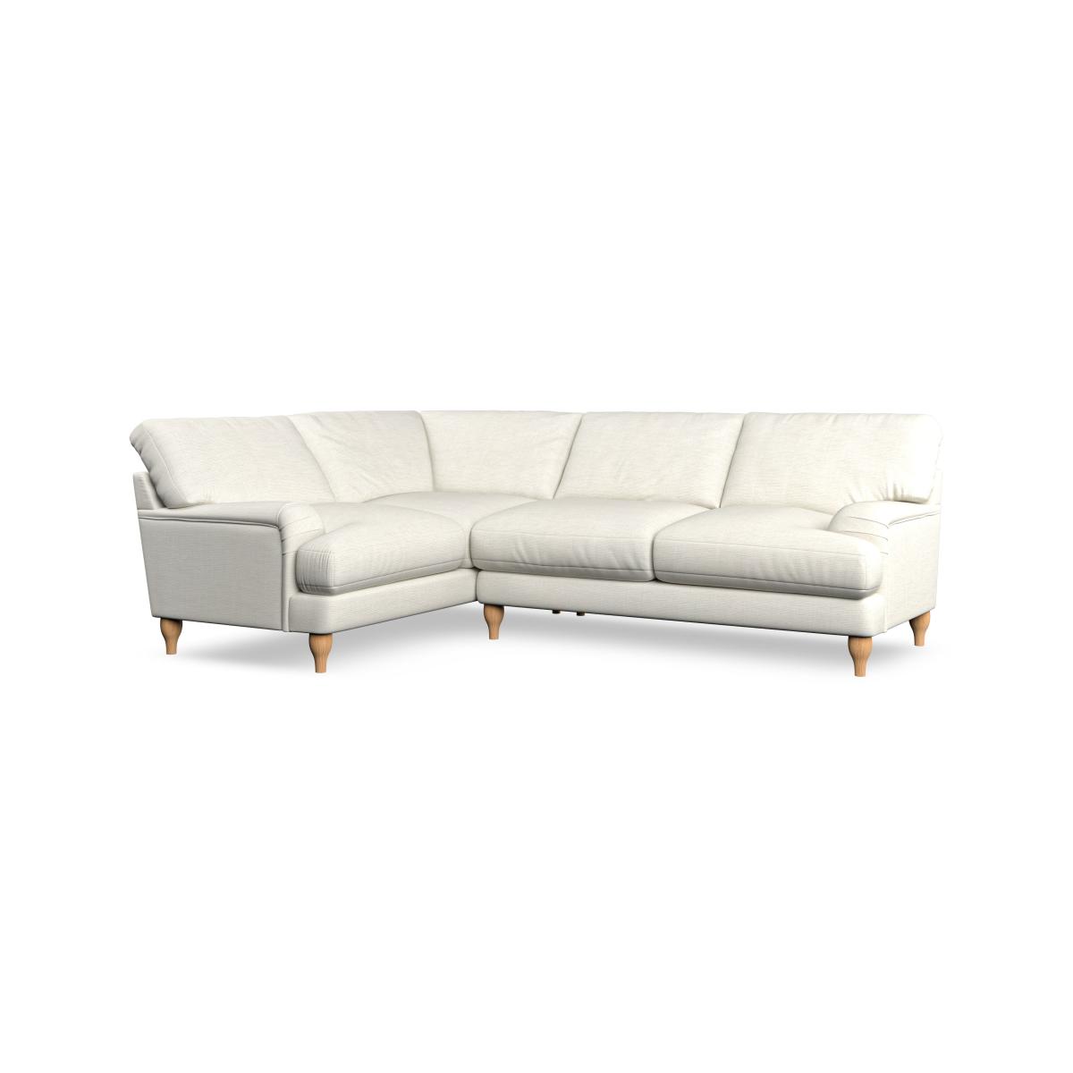 * Classic style* Bandaged Arms* Pleated details* Serpentine seat springs* Choose your orientation, support, fabric and leg colour This sofa features bandaged arms with pleat details and a lugged seat, offering a unique and stylish look. Built for longevity and comfort, it includes serpentine seat springs and deep fibre-filled back cushions for excellent support. You can customise your comfort by choosing between a low-maintenance foam seat or the inviting ‘Qualofill Blue’ fibre seat, made from 100% recycled polyester. The ‘T’ cushion seat and arm design ensure a compact and contemporary feel, complemented by self-sewn seat and back cushions. Choose from a right hand or left hand facing corner to fit your space perfectly. Additionally, you can select your preferred fabric and leg colour to perfectly match your living space.
