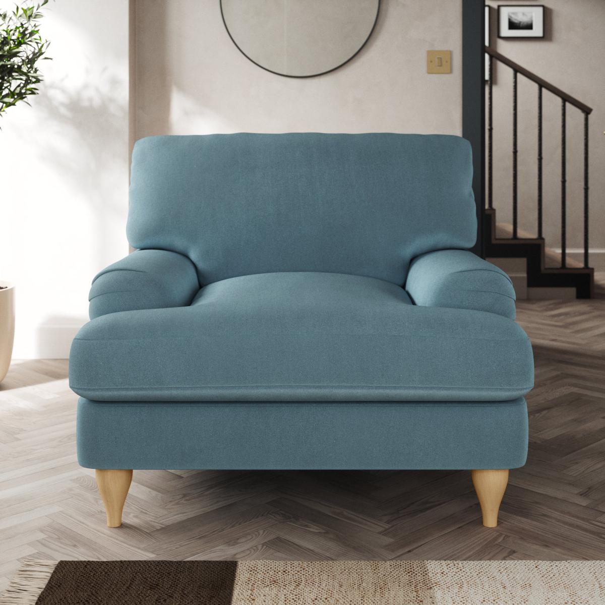 I love the armchair cosiness of this one - the plush velvet in Pacific adds a touch of sophistication while still inviting you to sink in. It’s versatile enough to work well in both contemporary and traditional interiors, especially those with muted or pastel palettes. To style it, consider pairing with a few textured cushions in complementary colours or neutrals for added comfort and visual interest. Practical tips include choosing a complementary rug underneath to ground the space, and maybe a throw blanket for chilly evenings. This piece is a great anchor in a living room, reading nook, or even a bedroom corner where you want to create an inviting, relaxed vibe.