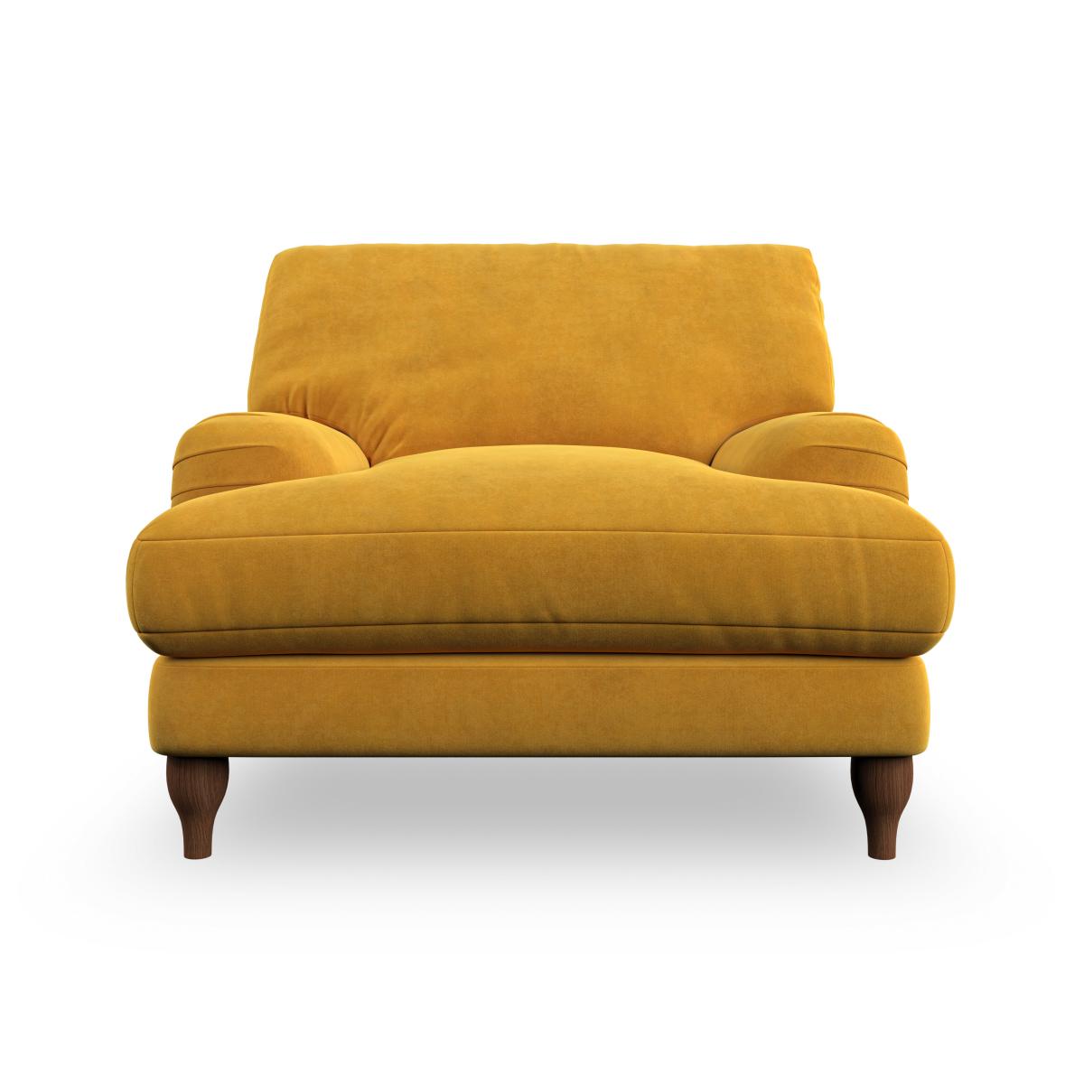 * Classic style* Bandaged Arms* Pleated details* Serpentine seat springs* Choose your support, fabric and leg colour This armchair features a fresh take on the classic bandaged arm design, with pleat details and a lugged seat for a unique and elegant look. Built for longevity and comfort, it includes serpentine seat springs and deep fibre-filled back cushions for excellent support. Customise your comfort by choosing between a low-maintenance foam seat or the inviting ‘Qualofill Blue’ fibre seat, made from 100% recycled polyester. The ‘T’ cushion seat and arm design ensure a compact and contemporary feel, complemented by self-sewn seat and back cushions. Available with ‘hour glass’ shaped turned hardwood legs in two finishes, this armchair is both easy to fit and perfect for any stylish living space. Additionally, you can select your preferred fabric and colour to perfectly match your décor.