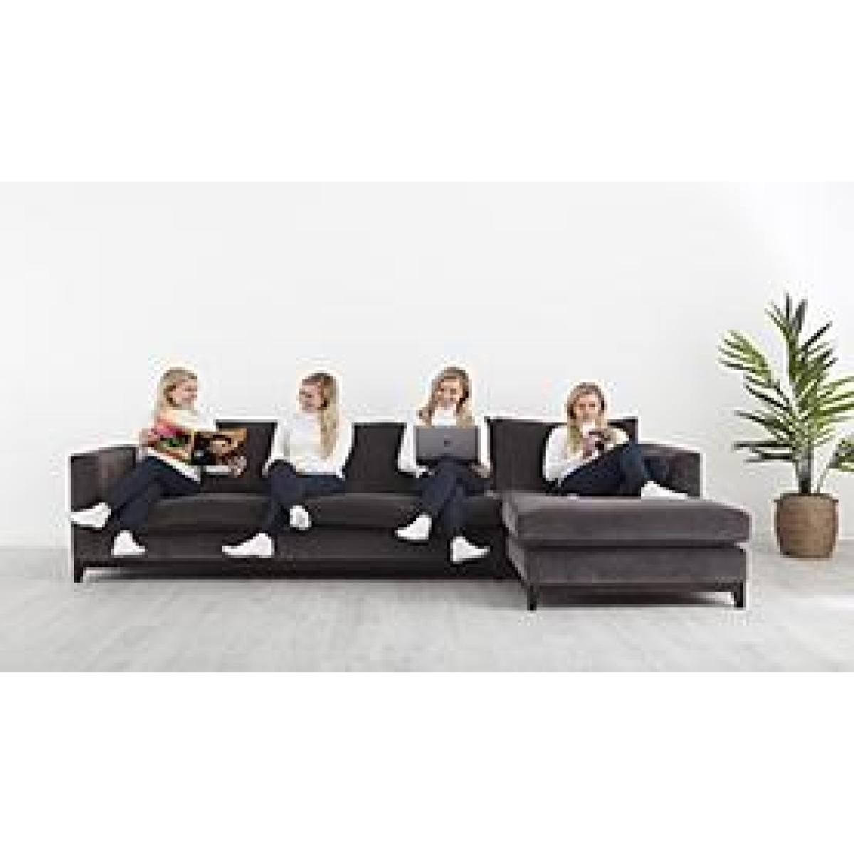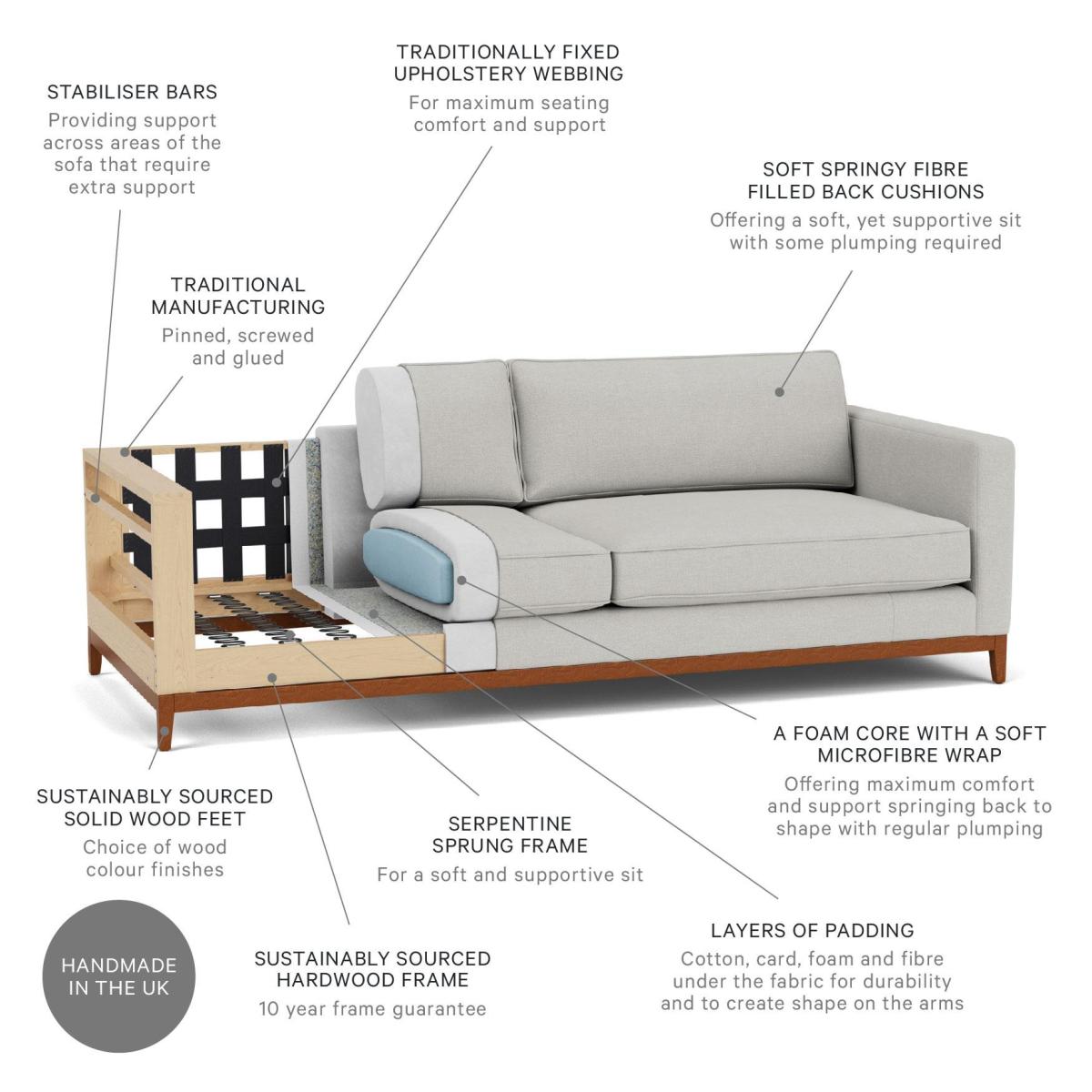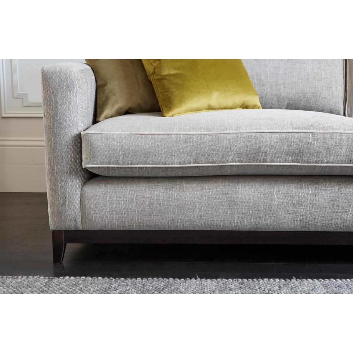 The Darwin is an elegant contemporary sofa with a simple, classic square arm design, and its right-hand chaise provides room to stretch out and relax in style. Whether it's a decadent velvet, a traditional tweed or a soft wool, we have an extensive collection of over 170 fabrics and leathers for you to choose from. Make this sofa bespoke to you by choosing the right leg finish, contrast piping and scatter cushions to complement your interior. Handmade in the UK by expert craftspeople, our chaise sofas are made using a hardwood frame and the finest materials to guarantee a sofa that will last for years to come. External (cm): - Width (A) = 290 - Depth (B) = 176 - Height (C) = 86 Seat (cm): - Width (H) = 260 - Depth (K) = 65 - Height (F) = 48 Arm (cm): - Width (J) = 15 - Height (G) = 70 Legs (cm): - Height (D) = 13 Frame Height (without Feet): - Height (P) = 57