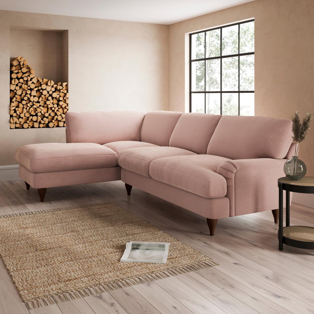 Darwin Corner Chaise Sofa Luxury Velvet Peach Blush