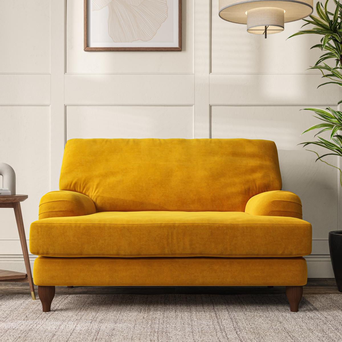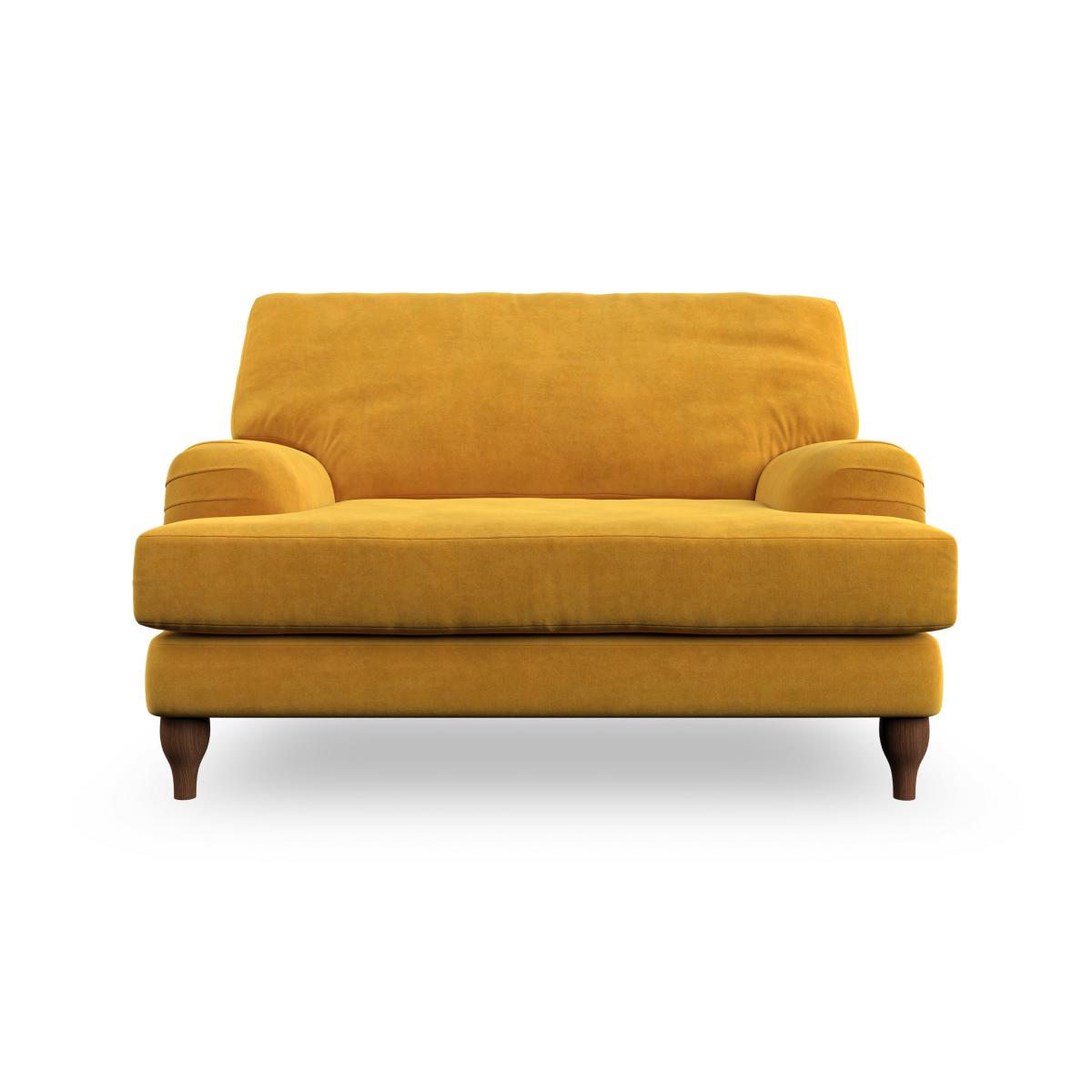 * Classic style* Bandaged Arms* Pleated details* Serpentine seat springs* Choose your support, fabric and leg colour This chair offers a fresh take on the classic bandaged arm design, featuring pleat details and a lugged seat for a unique look. Built for longevity and comfort, it includes serpentine seat springs and deep fibre-filled back cushions for excellent support. Customise your comfort by choosing between a low-maintenance foam seat or the inviting ‘Qualofill Blue’ fibre seat, made from 100% recycled polyester. The ‘T’ cushion seat and arm design ensure a compact and contemporary feel, complemented by self-sewn seat and back cushions. Available with ‘hour glass’ shaped turned hardwood legs in two finishes, this chair is both easy to fit and perfect for creating a snug, stylish corner in your living space. Plus, you can select your preferred fabric and colour to perfectly match your decor.