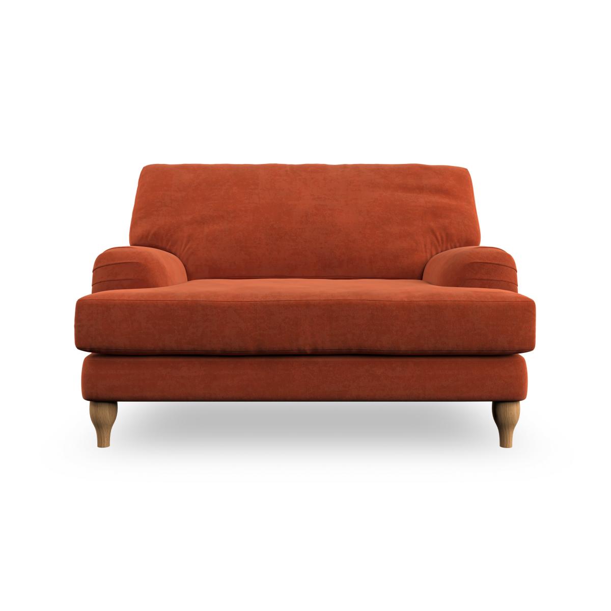 * Classic style* Bandaged Arms* Pleated details* Serpentine seat springs* Choose your support, fabric and leg colour This chair offers a fresh take on the classic bandaged arm design, featuring pleat details and a lugged seat for a unique look. Built for longevity and comfort, it includes serpentine seat springs and deep fibre-filled back cushions for excellent support. Customise your comfort by choosing between a low-maintenance foam seat or the inviting ‘Qualofill Blue’ fibre seat, made from 100% recycled polyester. The ‘T’ cushion seat and arm design ensure a compact and contemporary feel, complemented by self-sewn seat and back cushions. Available with ‘hour glass’ shaped turned hardwood legs in two finishes, this chair is both easy to fit and perfect for creating a snug, stylish corner in your living space. Plus, you can select your preferred fabric and colour to perfectly match your decor.
