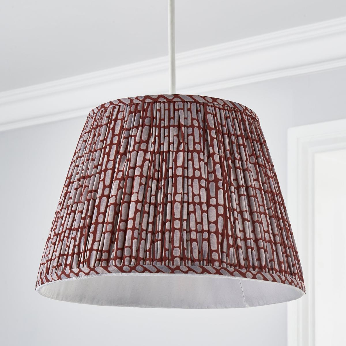 This red ruched lamp shade is fantastic for adding a pop of colour and texture to a room. I love how its tapered shape and ruched detailing give it a contemporary yet tactile feel, making it versatile for both modern and eclectic interiors. It works particularly well in spaces with warm colour palettes or as a statement piece in neutral settings. For styling, consider placing it in a living room or bedroom with complementary textiles or warm metallic accents; it can be paired with a statement lightbulb or layered with other lamps for a cosy, inviting atmosphere. When hung, ensure it’s at a height that allows the pattern and colour to be showcased, and keep surrounding decor simple to let the shade stand out.