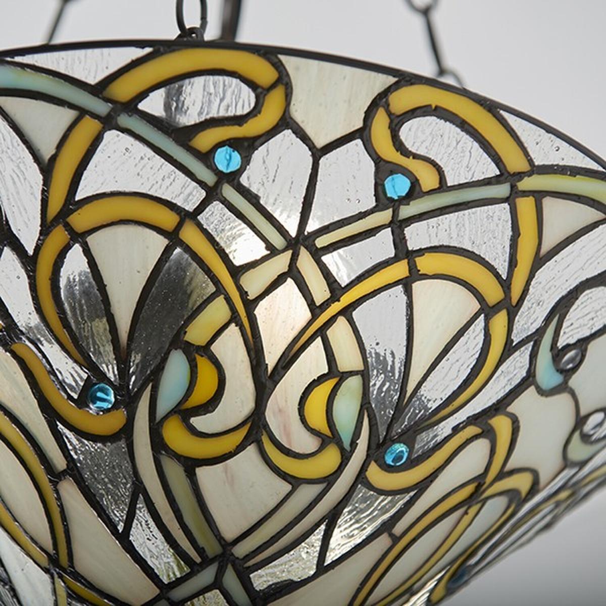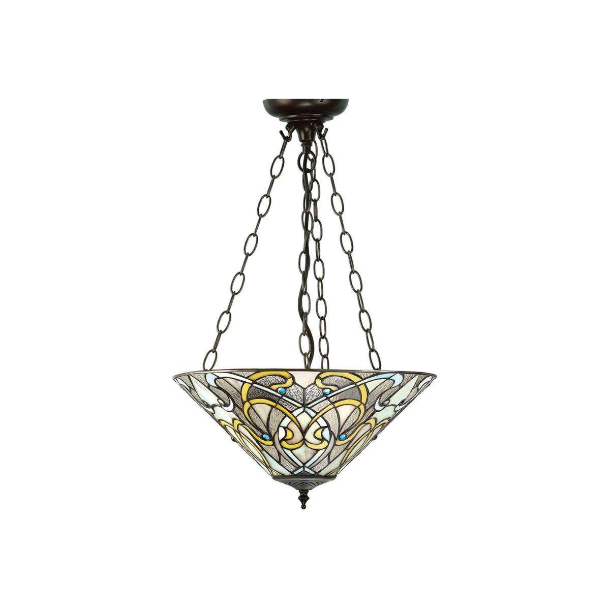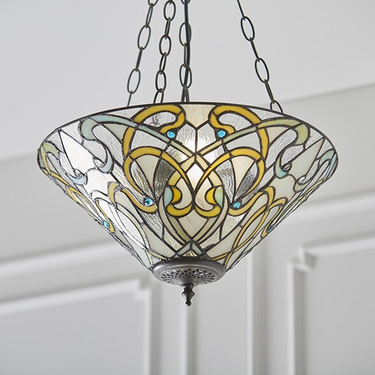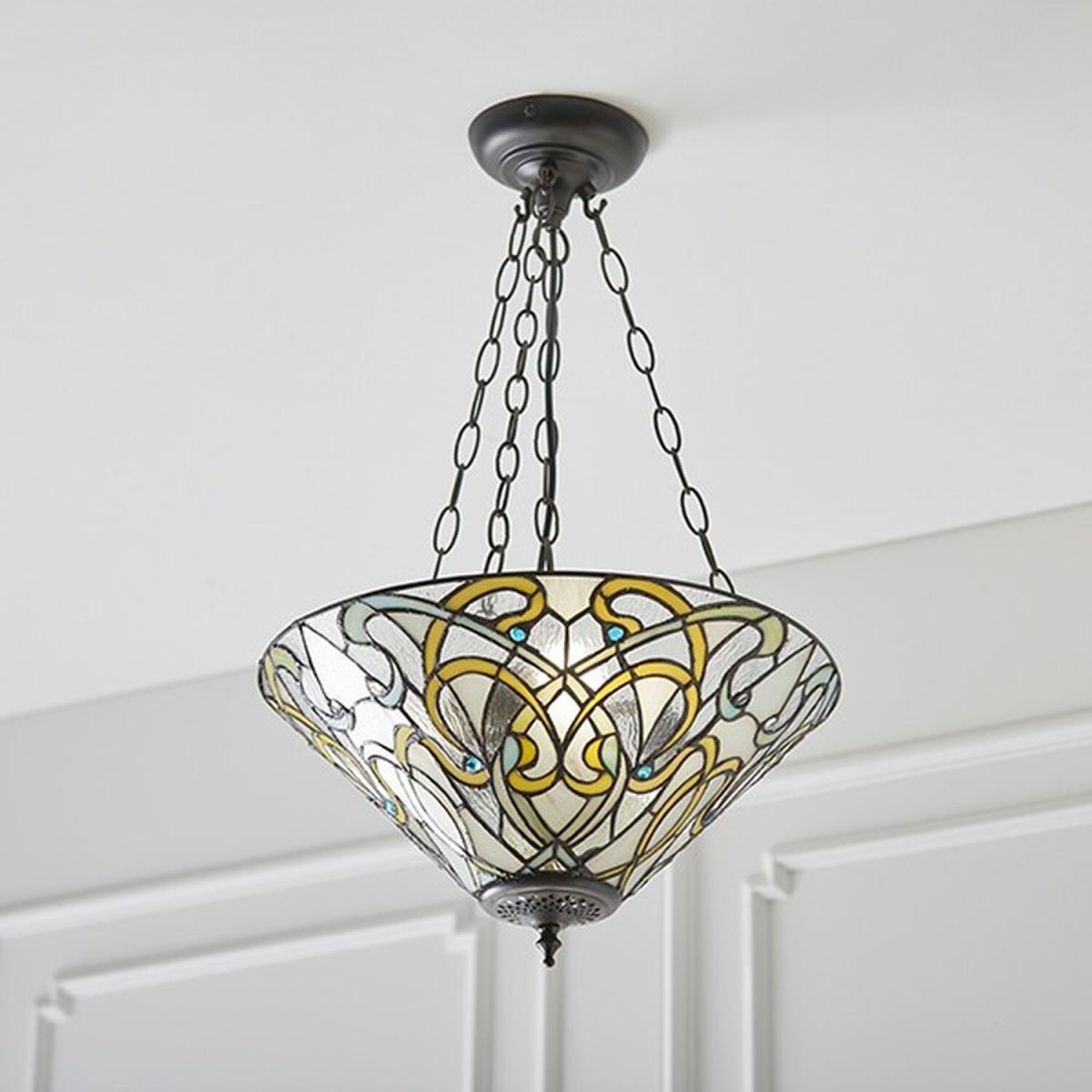 Dauphine 3 Light Inverted Ceiling Pendant Dark Bronze, Tiffany glass, E27 - Dark Bronze