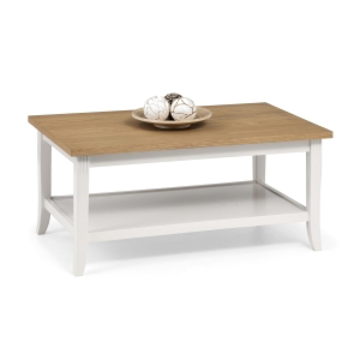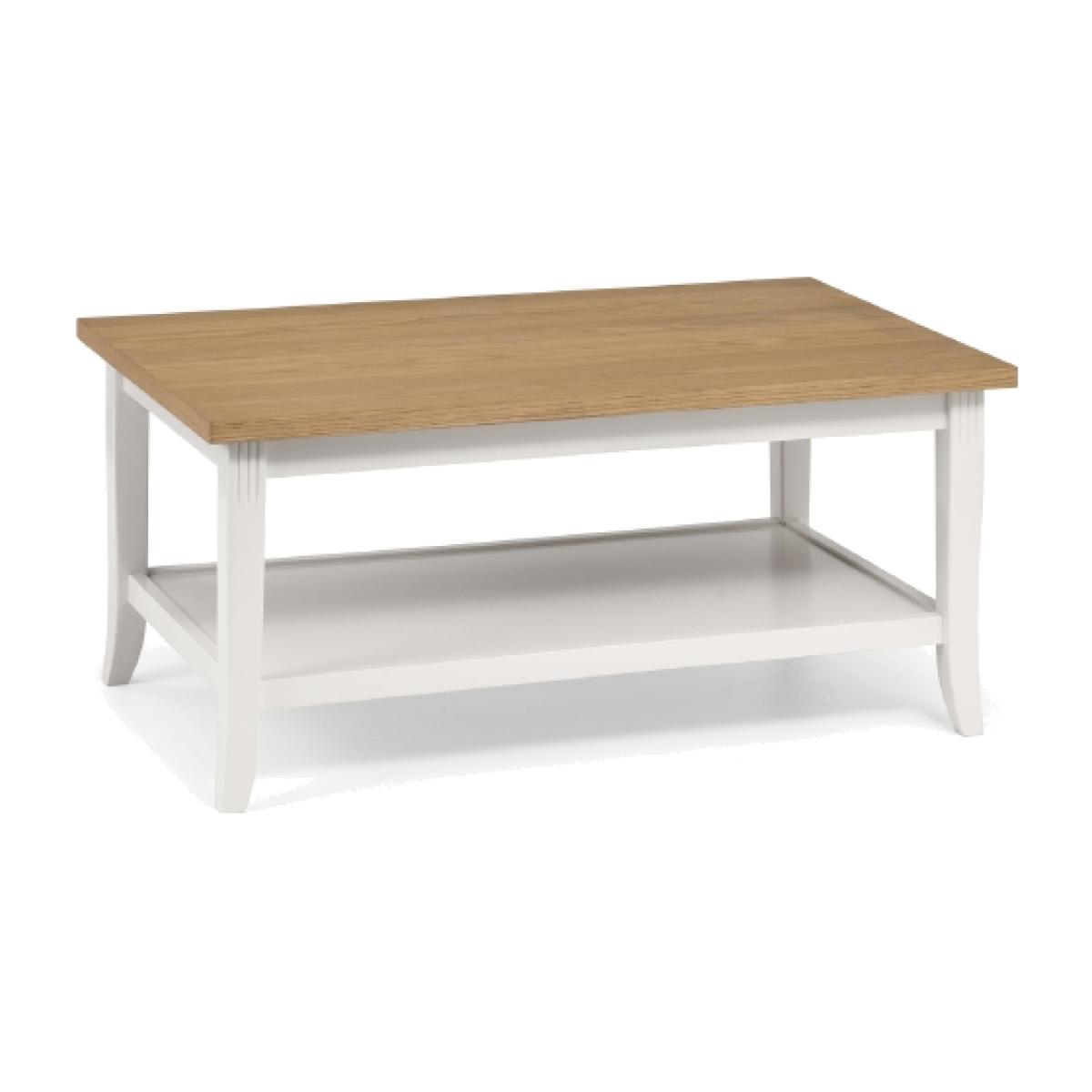 The Davenport Coffee Table offers a simple yet striking surface that will match a variety of designs and patterns in your home. Use it to rest your tea or coffee, or alternately display small ornaments and plants. It features a full length shelf for added storage space - perfect for a more compact room. Made from solid rubberwood with oak veneers, the delicately shaped legs are finished in ivory lacquer for a contemporary contrast look that is both understated and timeless.