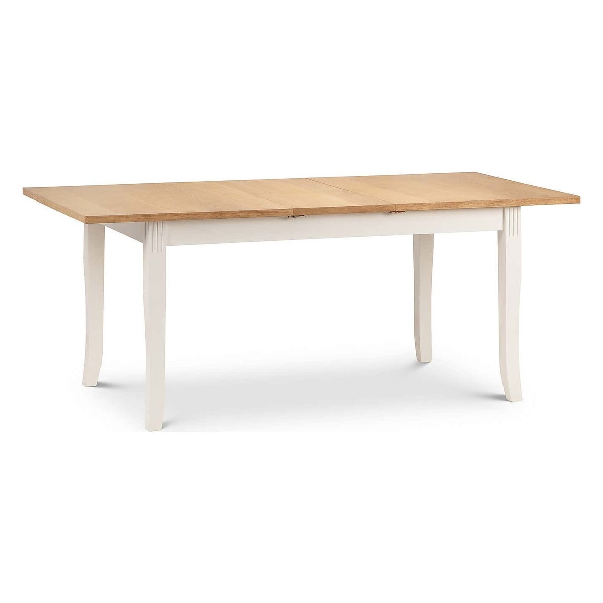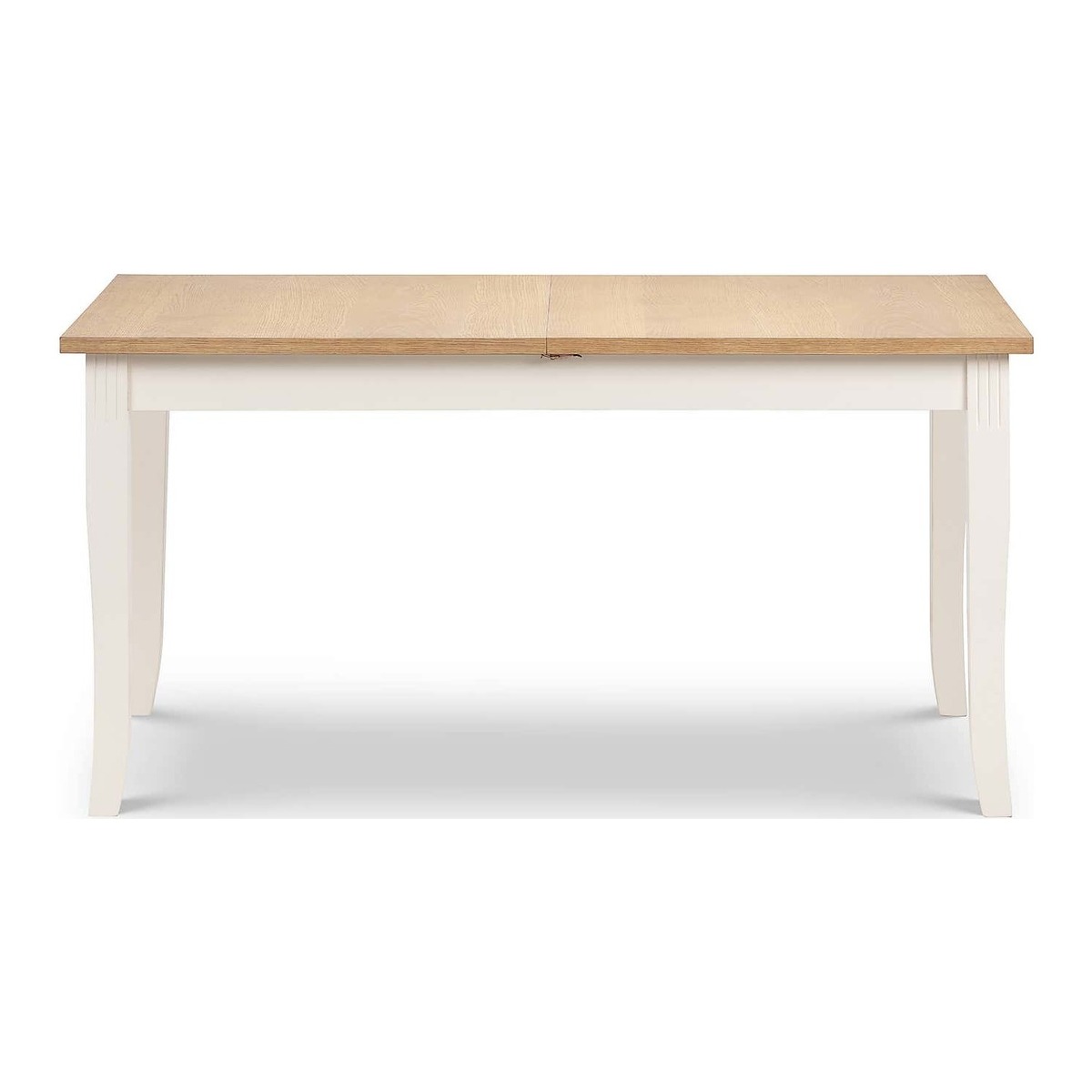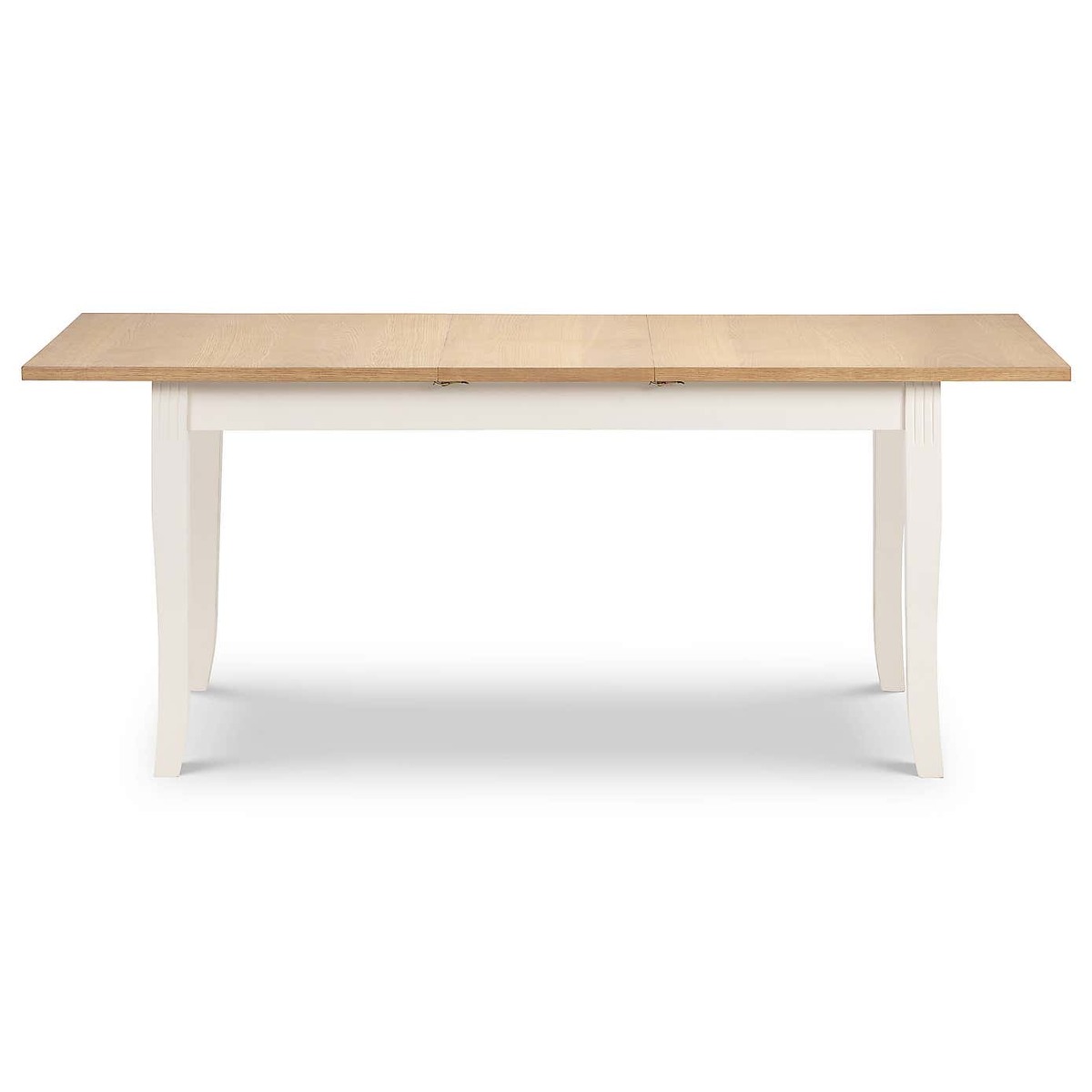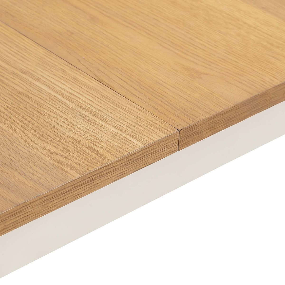 Crafted from solid rubberwood and a real oiled oak veneer 25mm top, this extending table is not only classic and modern but it is extremely durable. Perfect for any home, this table has an ivory lacquered finish. Other matching furniture is also available.