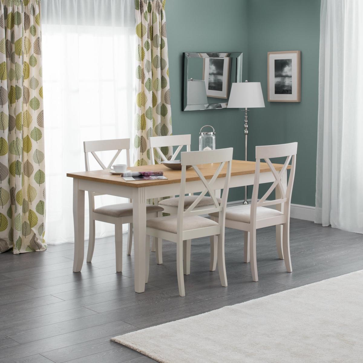 Davenport Rectangular Dining Table with 4 Dining Chairs Ivory with Oak Cream