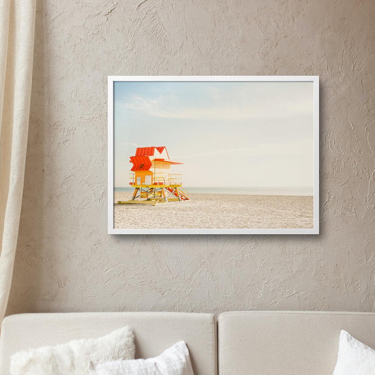 Banish bare walls and travel the world through your interior thanks to this Miami Beach Cabine Rouge print from David & David Studio. Handprinted onto FSC certified paper, this beautiful print is finished with a sleek white lacquered wood frame.