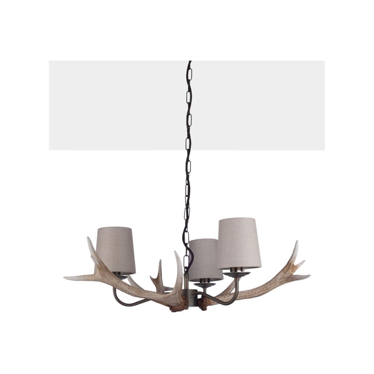 Create a chalet-chic inspired interior at home with this striking ceiling light from David Hunt. Made from resin, the three antler-style arms are accented with brass hardware in the centre for a rustic and earthy look. It provides a warm and ambient glow light, enhanced thanks to the natural linen lampshades. The cable is height-adjustable for easy installation in your space.