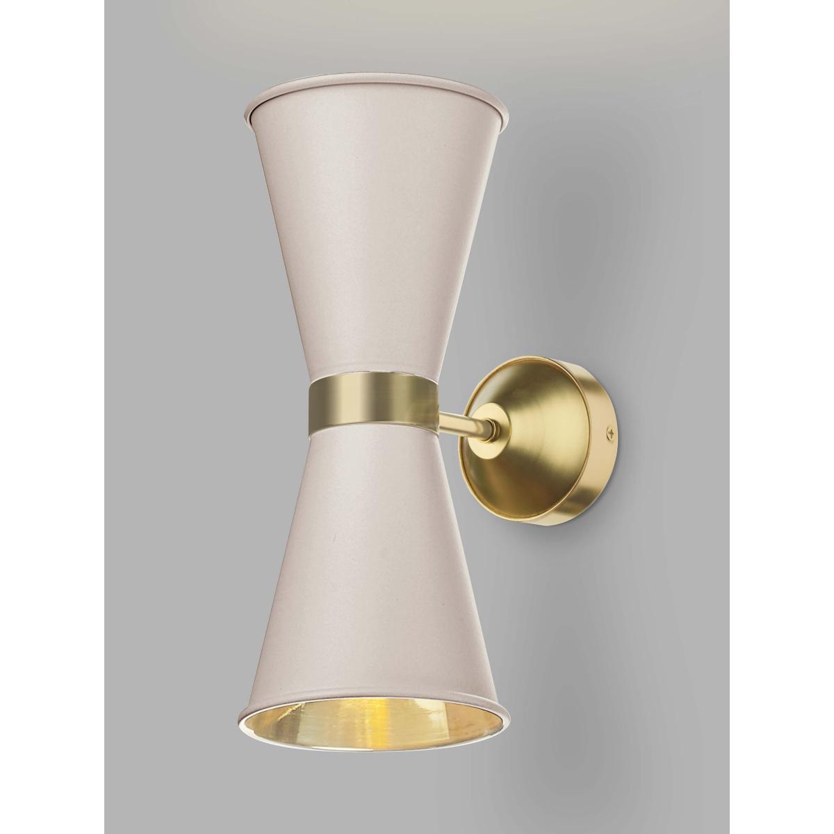 This cone-shaped wall light provides a wash of light up and down your wall and will create an inviting ambience wherever it's installed. Each shade is sprayed by hand in a matt paint finish and the durable metal framework is accented with either polished chrome or satin brass detail.