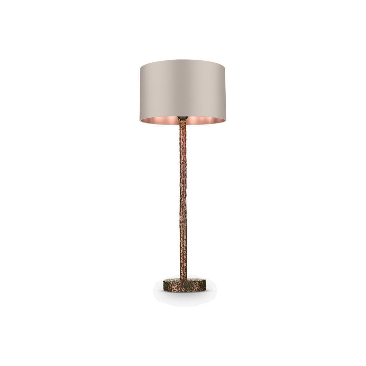 This buffet style, tall table lamp will become a focal point in your room. Made in the UK, the base is made from resin in either a rich steel or copper finish, and decorated with hammered detail that gives it a tactile edge. The lampshade is made from natural silk and lined to enhance a warm and diffused glow of light.