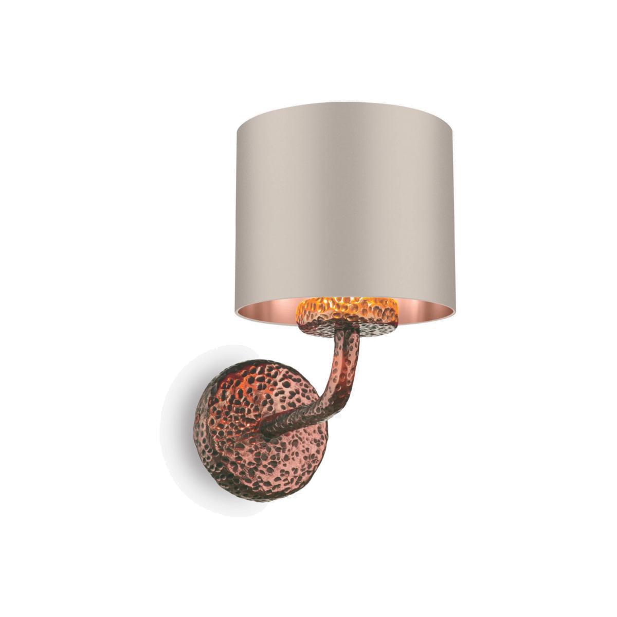 Made in the UK, this elegant, single arm wall light is made from resin and features a silk lampshade. The wall fitting is available in either a rich steel or copper finish and it's decorated with hammered detail that adds a tactile edge. Ideal for introducing a warm glow of light in your space.