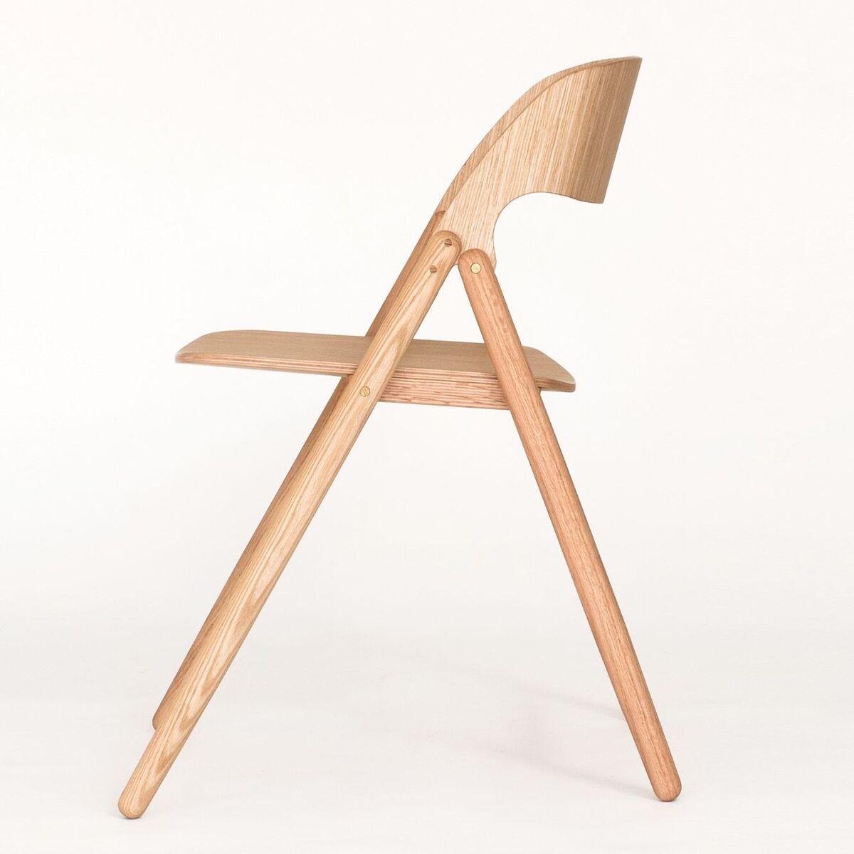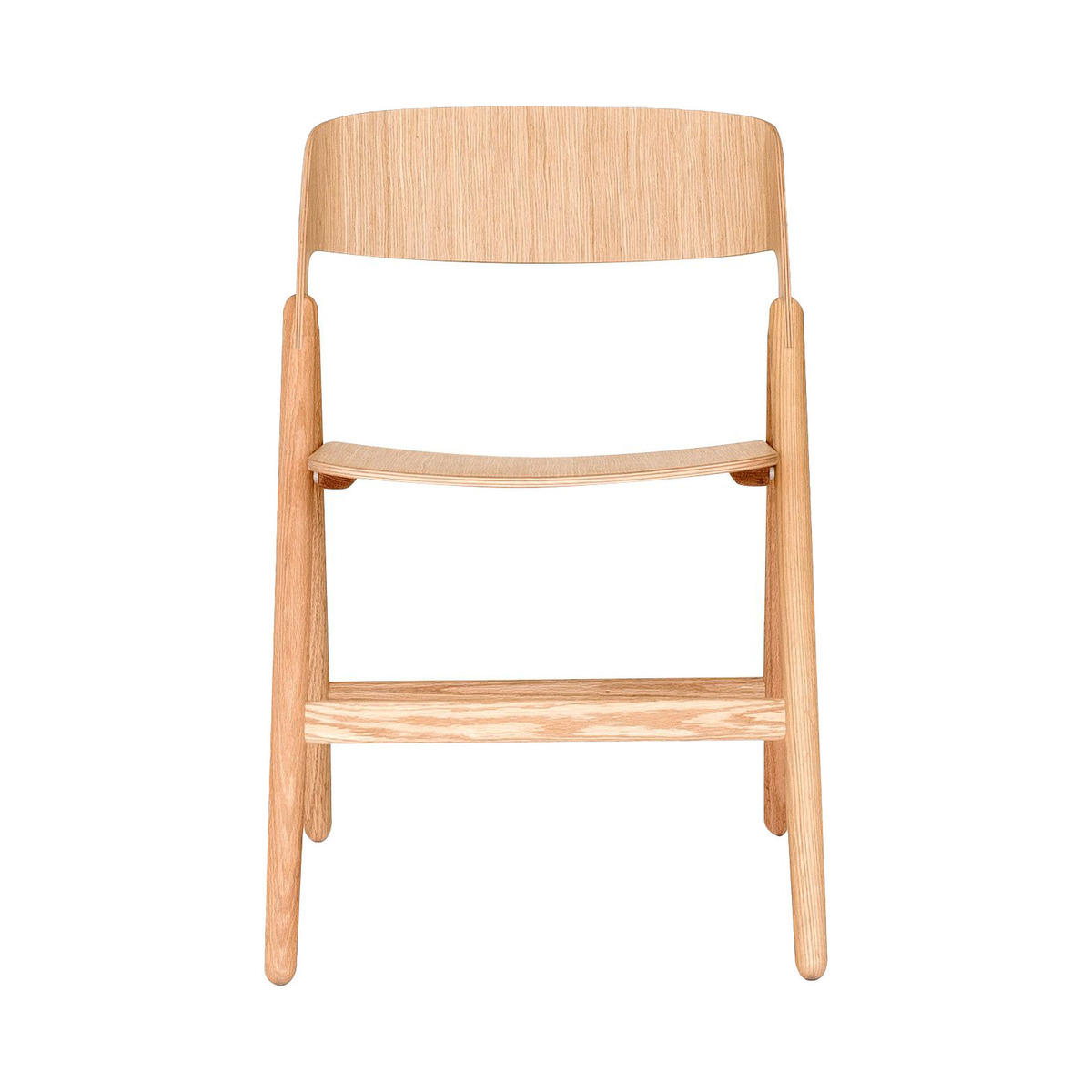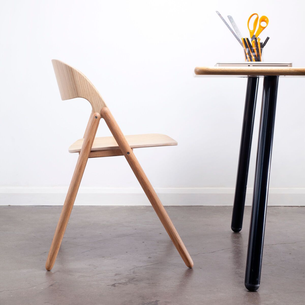 Inspired by the constantly adapting nature of modern workshops, David Irwin's lightweight Narin folding chair is easy to collapse and move around, and can be stored in condensed stacks that occupy minimal space. The elegant design features a smooth sweeping transition from the turned oak legs into the formed backrest, which also doubles as the mount for the pivot from where the back leg rotates. The seat and back are formed from layered birch ply and oak veneer, with an oiled finish and stainless steel fixings. The fixings contained on the underside of the chair slide along the grooves within the back legs to present a graceful silhouette with clean flowing lines, so the chair looks as good folded away for storage as it does when open and in use. David Irwin is a British Industrial Design Studio driven by a desire to assign purpose to both traditional and contemporary manufacturing processes. Originally from Northern Ireland, where he got his first taste of wood working in his father's amateur workshop, David went on to study at Northumbria University. In 2007 David's final year project, a steam-bent timber frame chair, was awarded the New Designers Peter Walker Award for innovation in furniture design. The chair went on to become part of Habitat's furniture collection, giving David his first taste of the manufacture and retail process. Please note: not all our ranges are on display in our shops. 0% APR Representative: this product is eligible for Interest Free Credit, available when you spend £1000 or more on selected home products. Terms and conditions apply: find out more