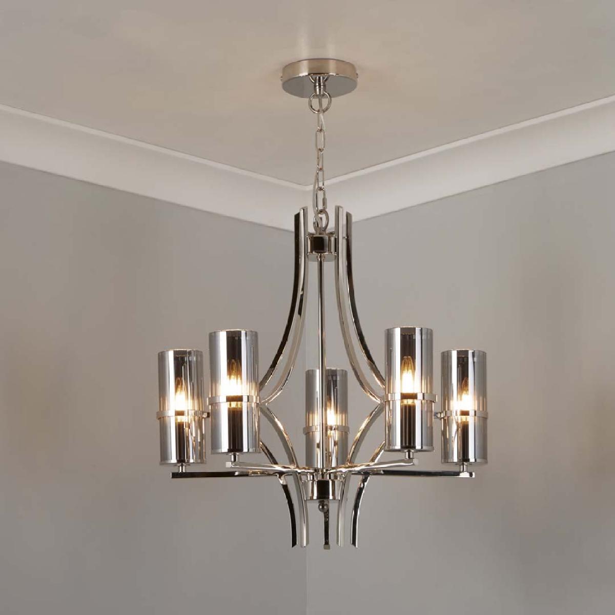 Featuring 5 shades of clear ribbed glass and stylish chrome metal framework, the Davina pendant will impress in any interior style. Suitable for both contemporary and more traditional homes, this ceiling light is designed to create an inviting atmosphere, and is dimmable compatible making it attractive and practical for any living space. Featuring 5 shades of clear ribbed glass and stylish chrome metal framework, the Davina pendant will impress in any interior style. Suitable for both contemporary and more traditional homes, this ceiling light is designed to create an inviting atmosphere, and is dimmable compatible making it attractive and practical for any living space.