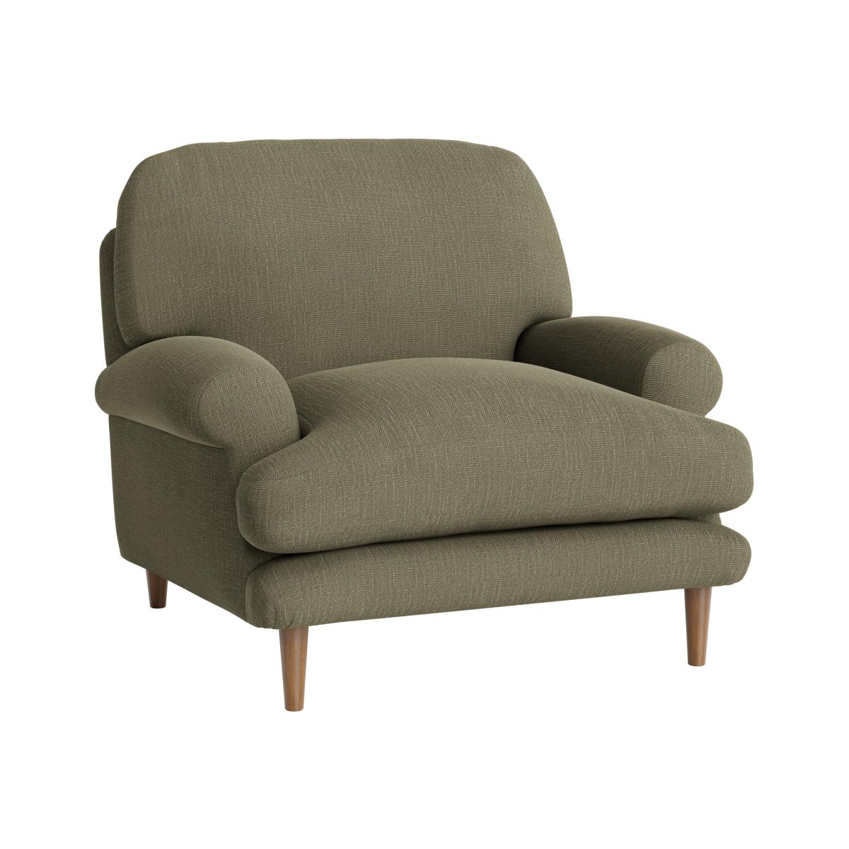I love this armchair for its relaxed, inviting shape and the versatility it offers in various interiors. Its soft, muted tone makes it an easy addition to both contemporary and traditional settings, particularly in cosy living rooms or reading nooks. When styling, consider pairing it with textured cushions or a throw for extra comfort, and place it alongside a side table for practicality. The legs add a slight lift, preventing it from feeling bulky, which helps it work well in smaller spaces or against patterned wallpaper or neutral tones. Overall, it’s a functional yet stylish piece that can anchor a seating area while adding a touch of understated charm.