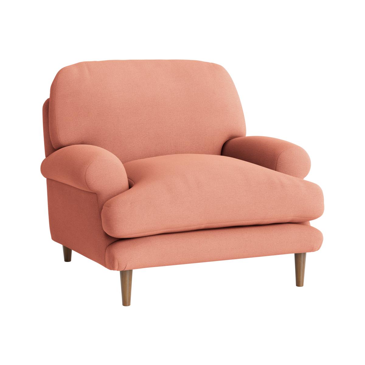 I love this chair for its relaxed yet stylish silhouette, making it a versatile choice across a variety of interiors. Its soft pink hue adds warmth and a touch of understated elegance, working particularly well in neutral or pastel colour schemes. It's perfect for cosy corners, living rooms, or even bedrooms where a comfortable and inviting seating option is needed. Practical styling tips include pairing it with textured cushions or a small side table to create a lived-in feel, and it pairs beautifully with both vintage and contemporary furnishings. Its slightly rounded, plush design makes it an ideal pick for spaces that aim to combine comfort with a bit of modern charm.