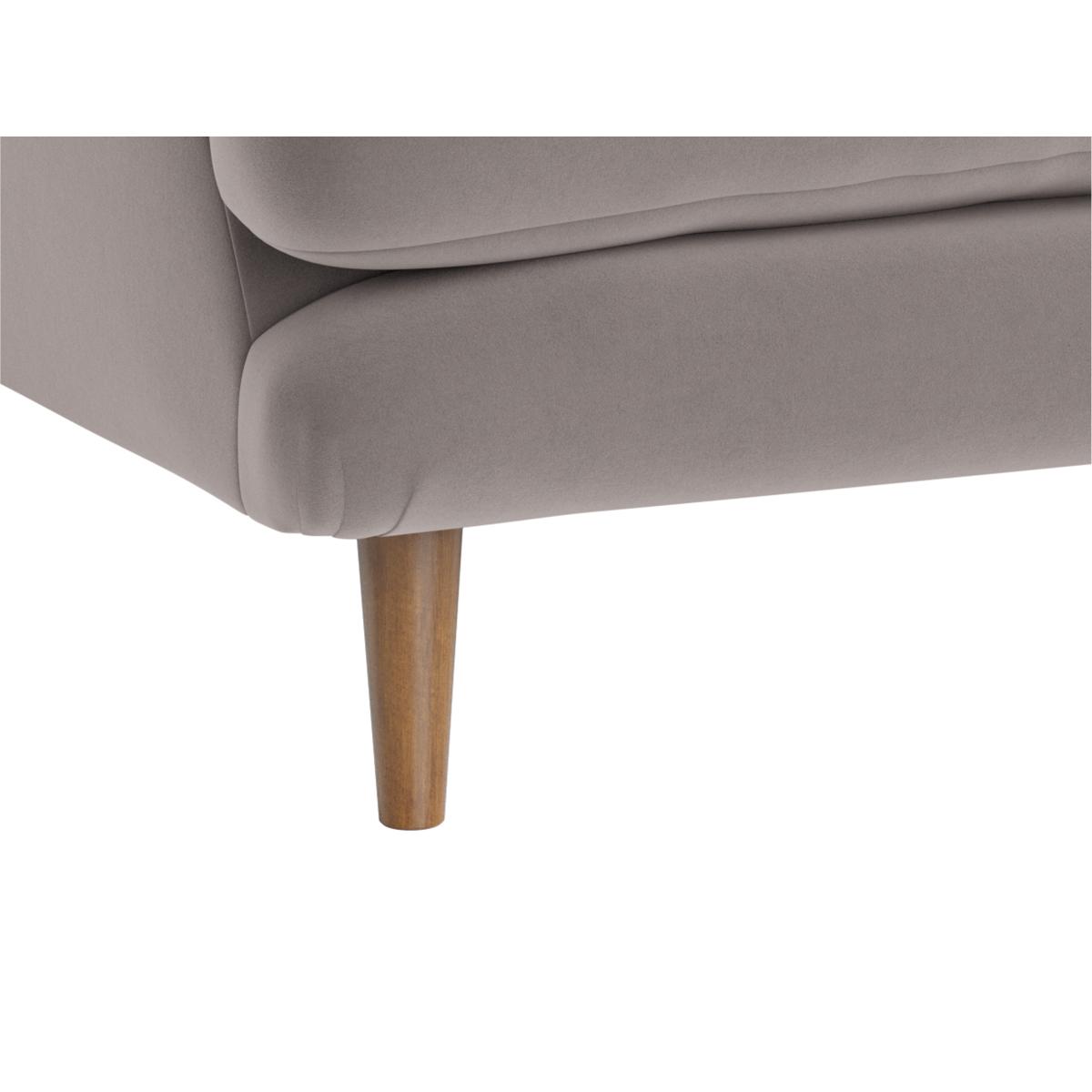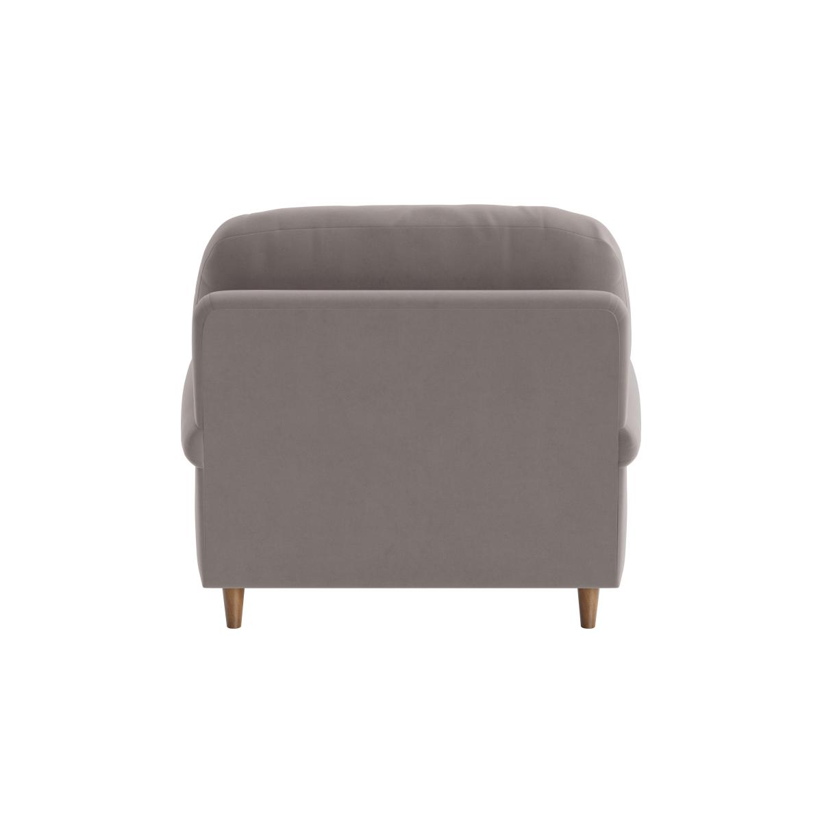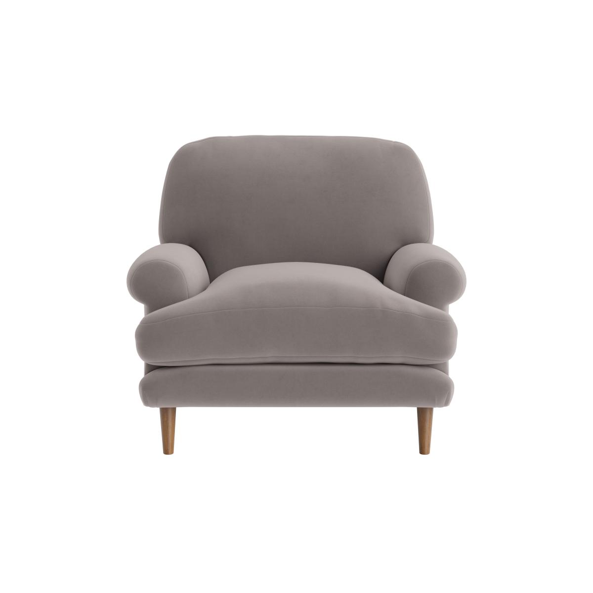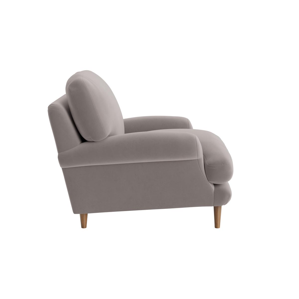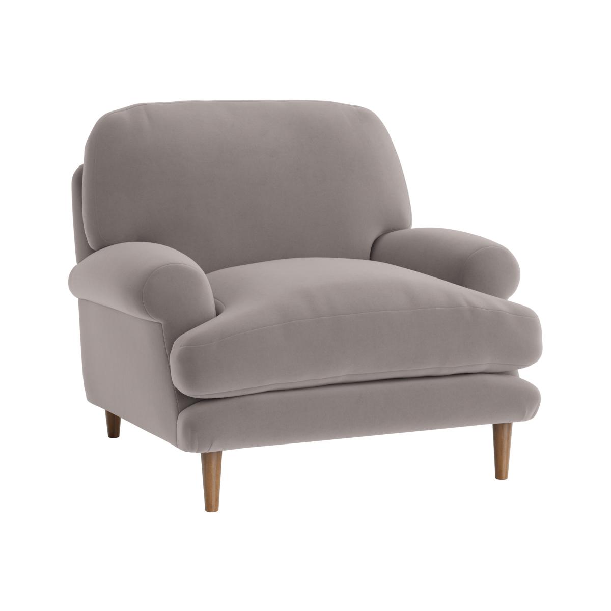I really like this armchair for its timeless, understated appeal. Its soft, neutral grey tone and plush cushions make it versatile enough to slot into both modern and traditional interiors. It works particularly well in cosy corners or as part of a lounge seating arrangement. Practical styling tips include pairing it with textured cushions or a throw in contrasting colours to add visual interest without overpowering its calm silhouette. The wooden legs give it a slightly retro vibe, making it suitable for Scandinavian or mid-century inspired spaces, but it can also blend seamlessly into eclectic or contemporary schemes. Its inviting shape invites relaxation, making it a staple piece for comfortable and stylish living rooms.