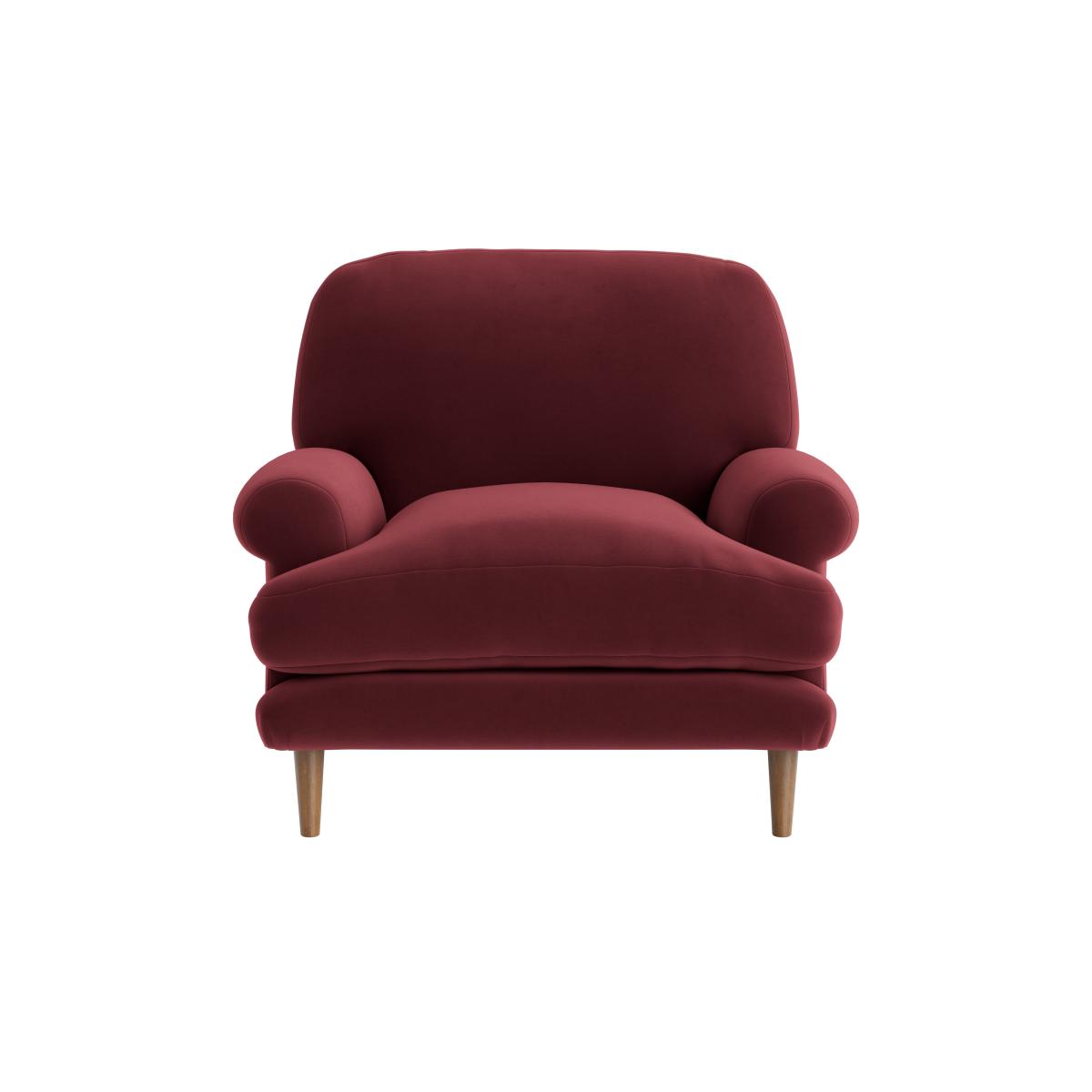 I love the Dawdler armchair for its comfy yet compact profile, making it ideal for both small and larger living spaces. Its rich, warm colour adds a touch of cosy sophistication that works well in traditional, modern, or eclectic interiors. Practical styling tips include pairing it with a textured throw or contrasting cushions for added interest. It’s also versatile enough to sit alongside a statement sofa or used as a standalone accent piece. Its tapered wooden legs give it a timeless appeal, allowing it to blend seamlessly into a variety of interior styles, from vintage-inspired schemes to contemporary schemes that embrace colour and comfort.