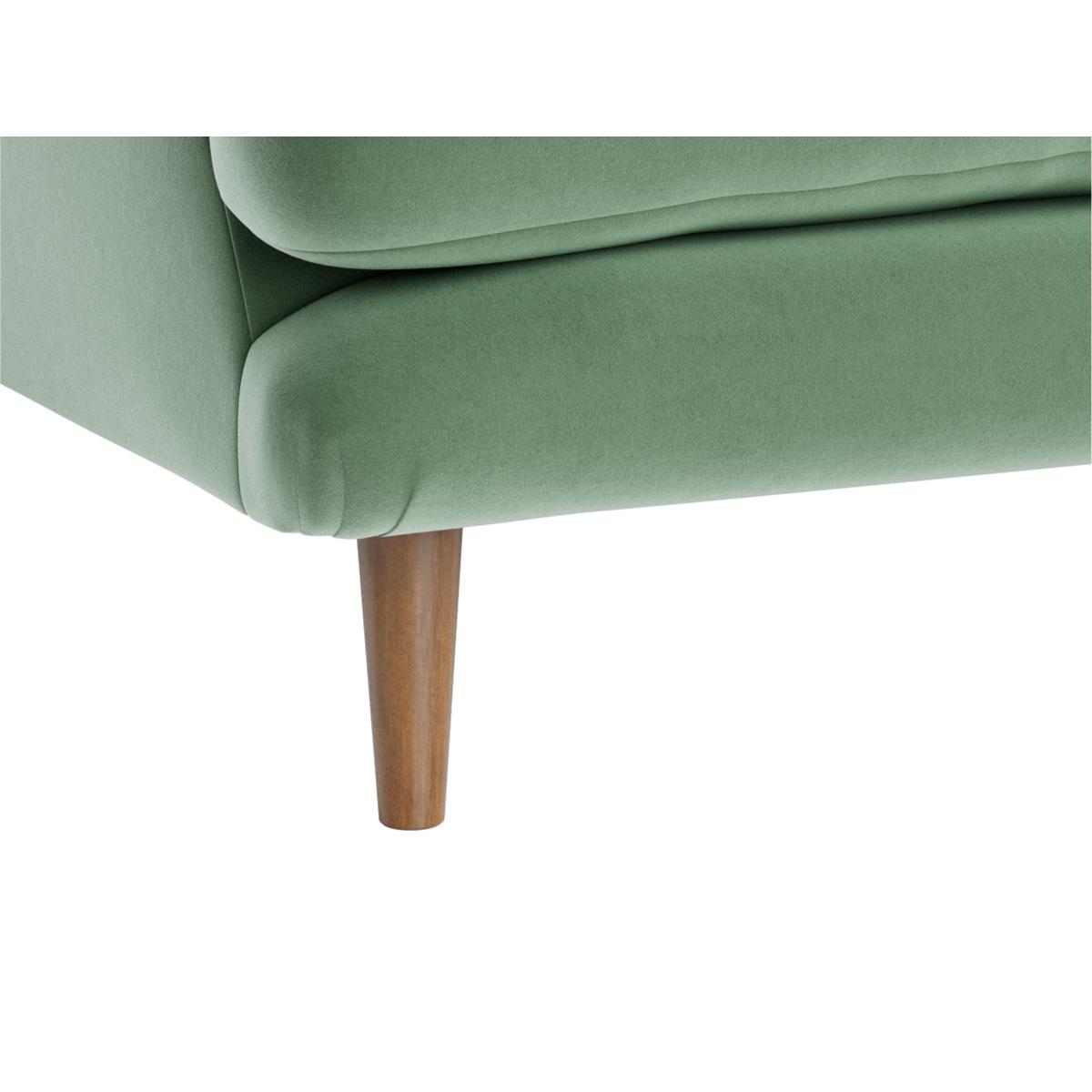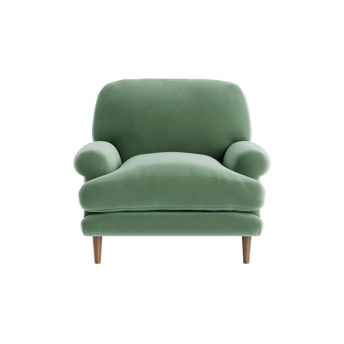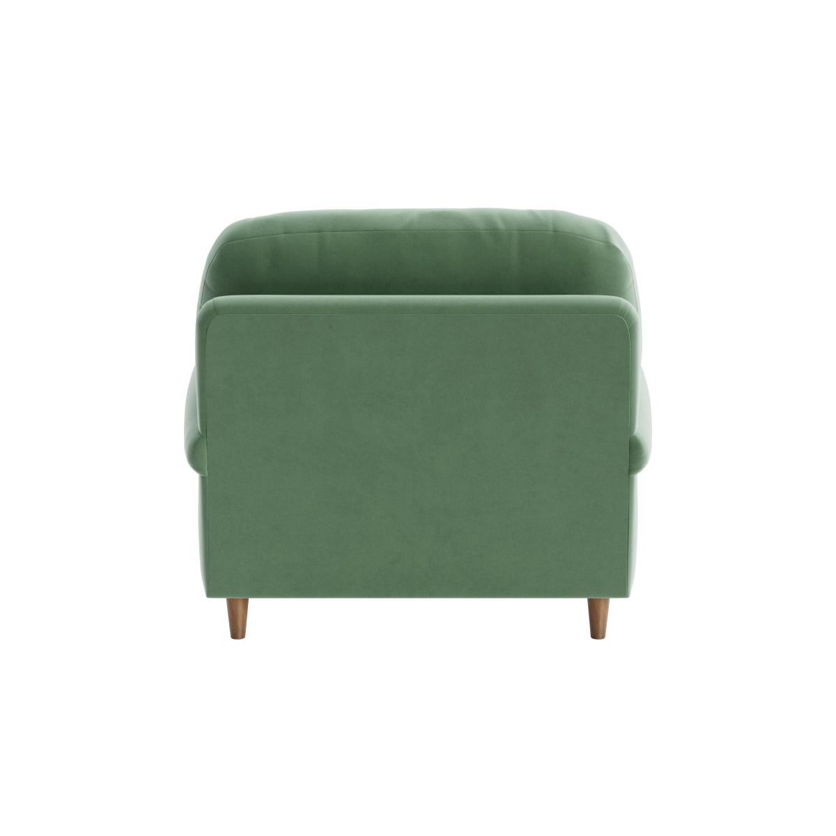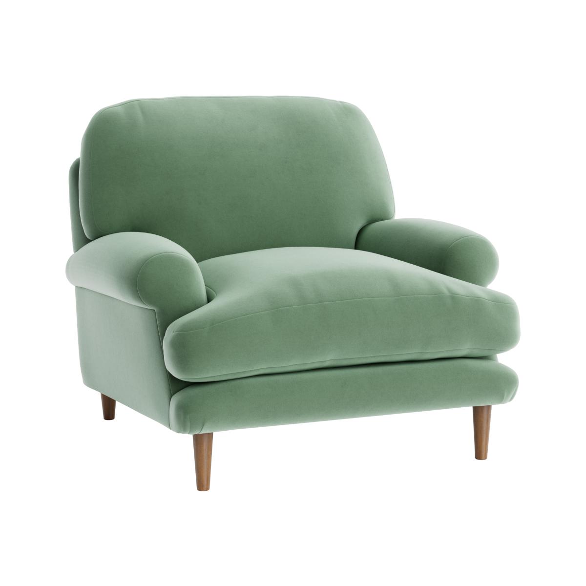 I love this armchair for its classic yet relaxed silhouette, making it a versatile addition to many interior styles. Its soft green velvet adds a touch of understated elegance, while the rounded arms and comfortable cushioning make it inviting and practical for everyday use. It works particularly well in cosy living rooms, reading nooks, or even as a statement piece in a minimalist space. To style it effectively, consider pairing it with neutral or warm-toned accessories to highlight its colour, and keep the surrounding furniture simple to let the chair stand out. As it’s petite but plush, it’s perfect for creating a welcoming corner without overpowering the room.