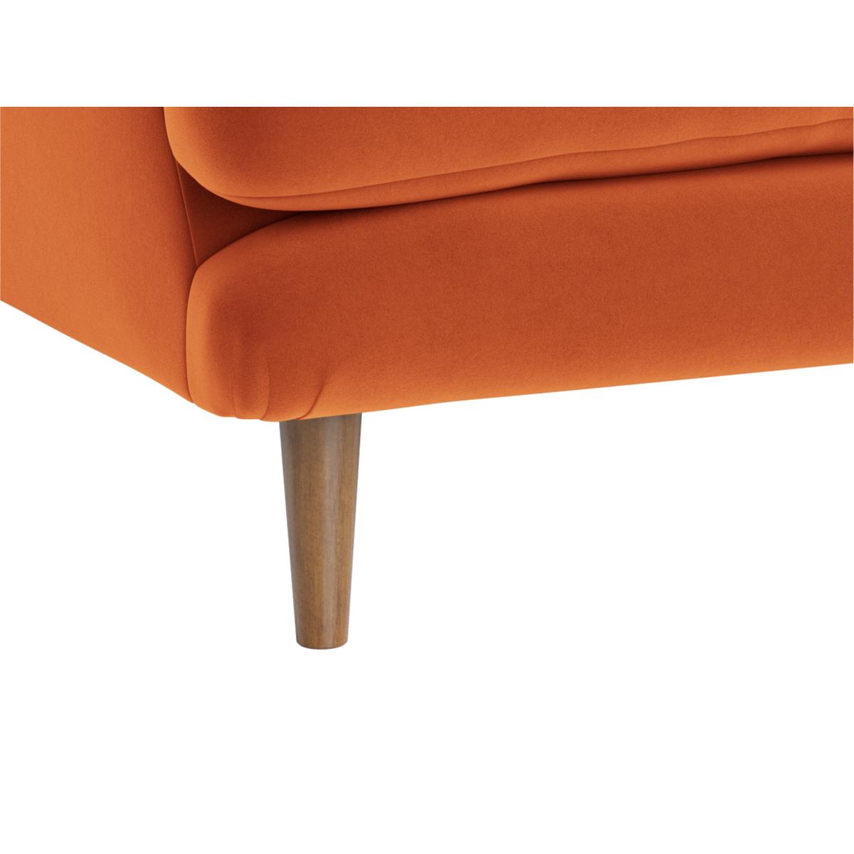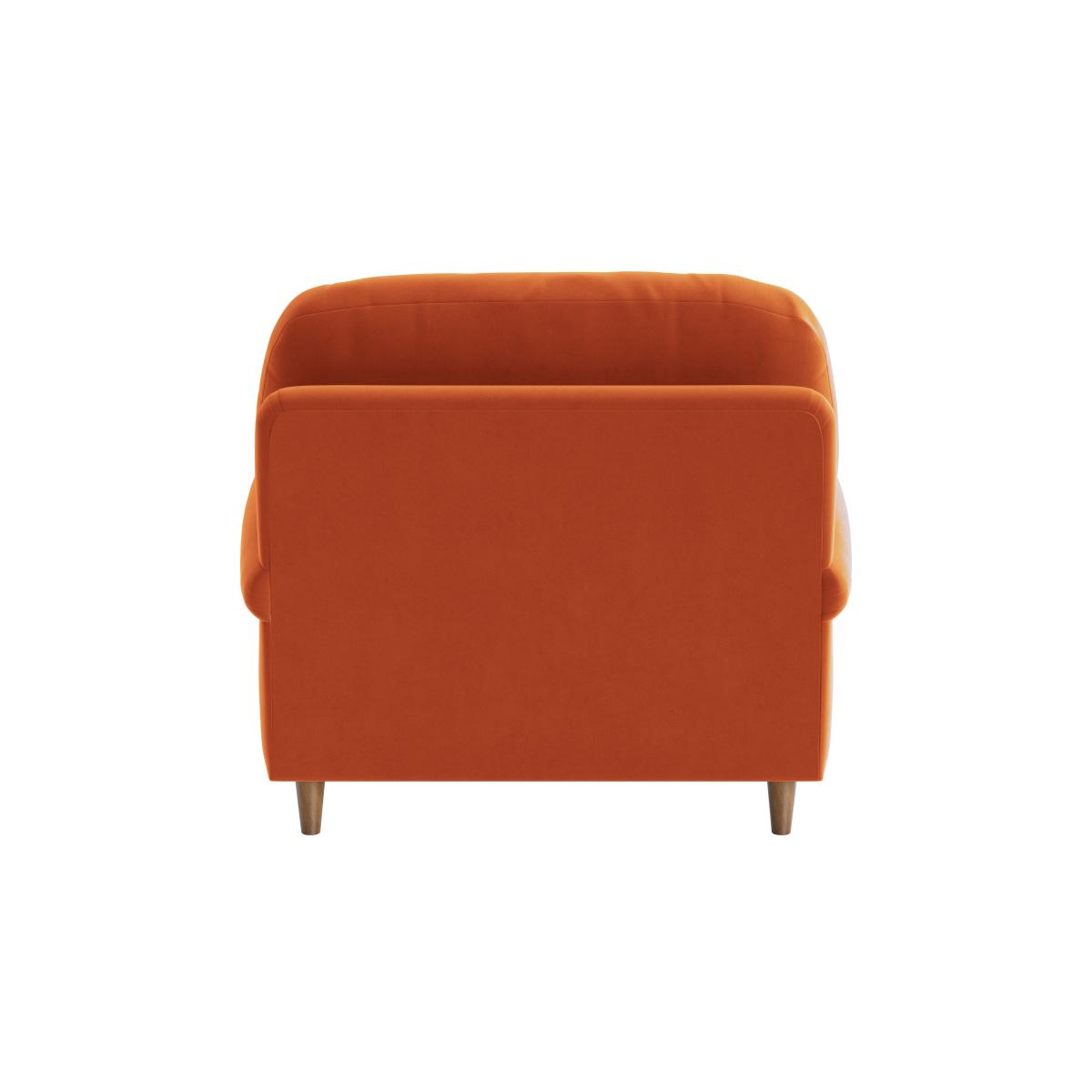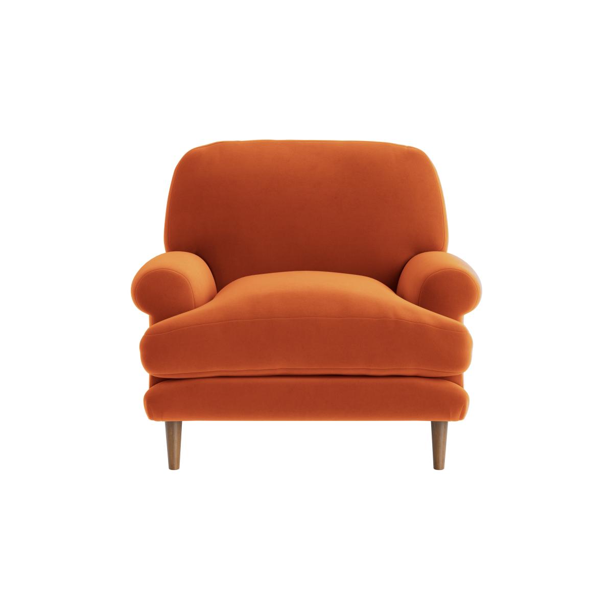 I really like the vibe of this armchair; its warm, earthy tone adds instant character to both contemporary and vintage-inspired interiors. It works beautifully in cosy living rooms, reading nooks, or even as a statement piece in open-plan spaces. To style it effectively, pair it with neutral or textured cushions to keep things inviting, and consider adding a complementary rug to ground the area. Its compact size makes it versatile for smaller spaces, while the simple, sleek legs give it a modern edge. Overall, it’s a practical yet stylish piece that can blend easily into a variety of schemes while offering comfort and a pop of colour.