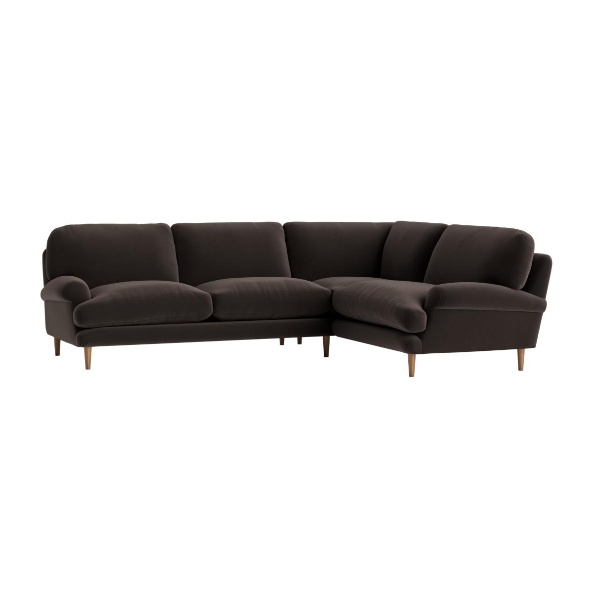 This sofa is a versatile choice for a variety of interiors, from contemporary to mid-century styles. I love its plush, inviting silhouette paired with slim, wooden legs, which adds a touch of warmth and sophistication. It works particularly well in open-plan living spaces or larger rooms where it can anchor a seating arrangement. To style it effectively, consider adding a mix of textured cushions in bold or muted tones to create visual interest, and complement it with a sleek coffee table and understated accessories to keep the look clean and modern. Its generous corner shape makes it perfect for entertaining or family lounging, making it both practical and stylish.